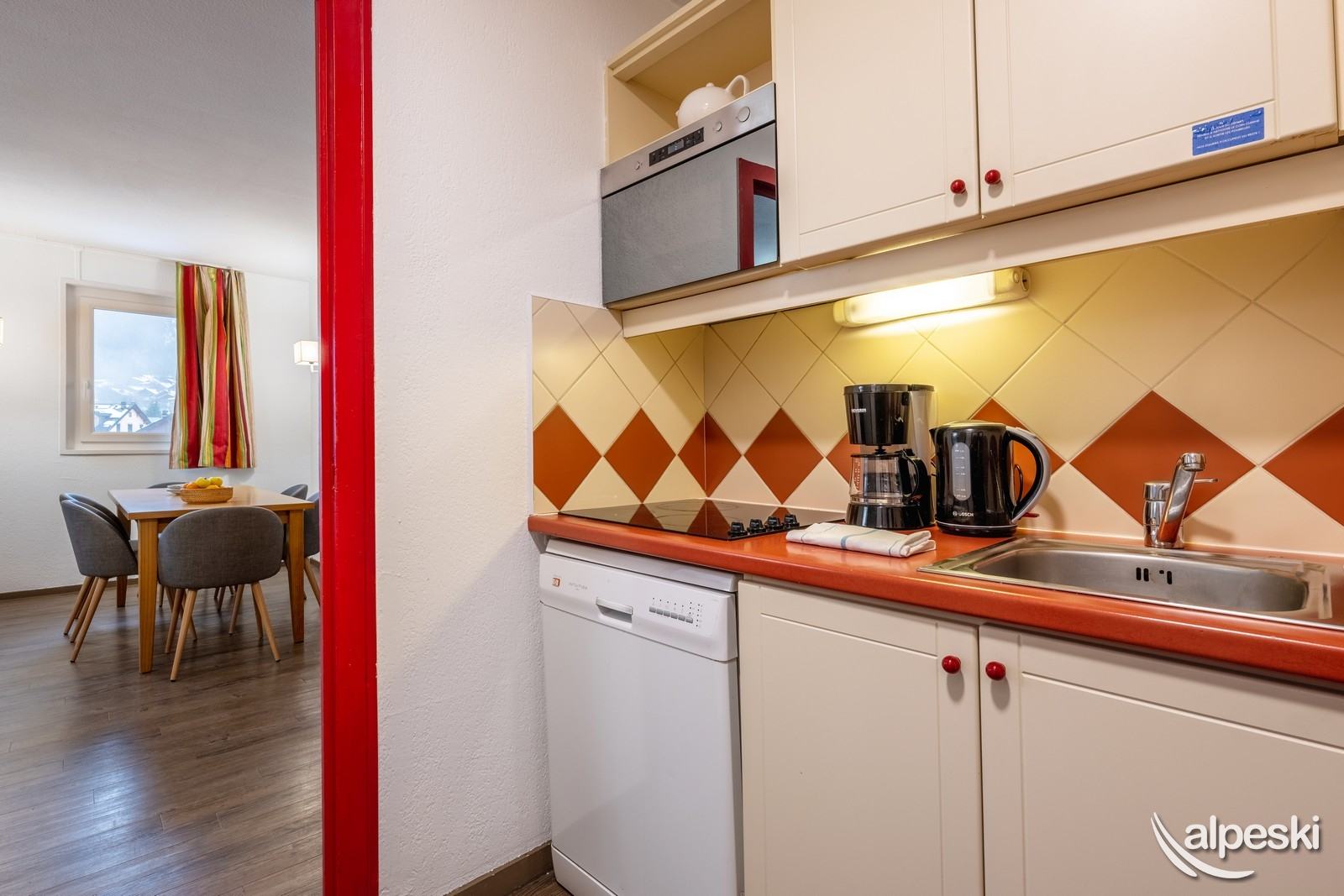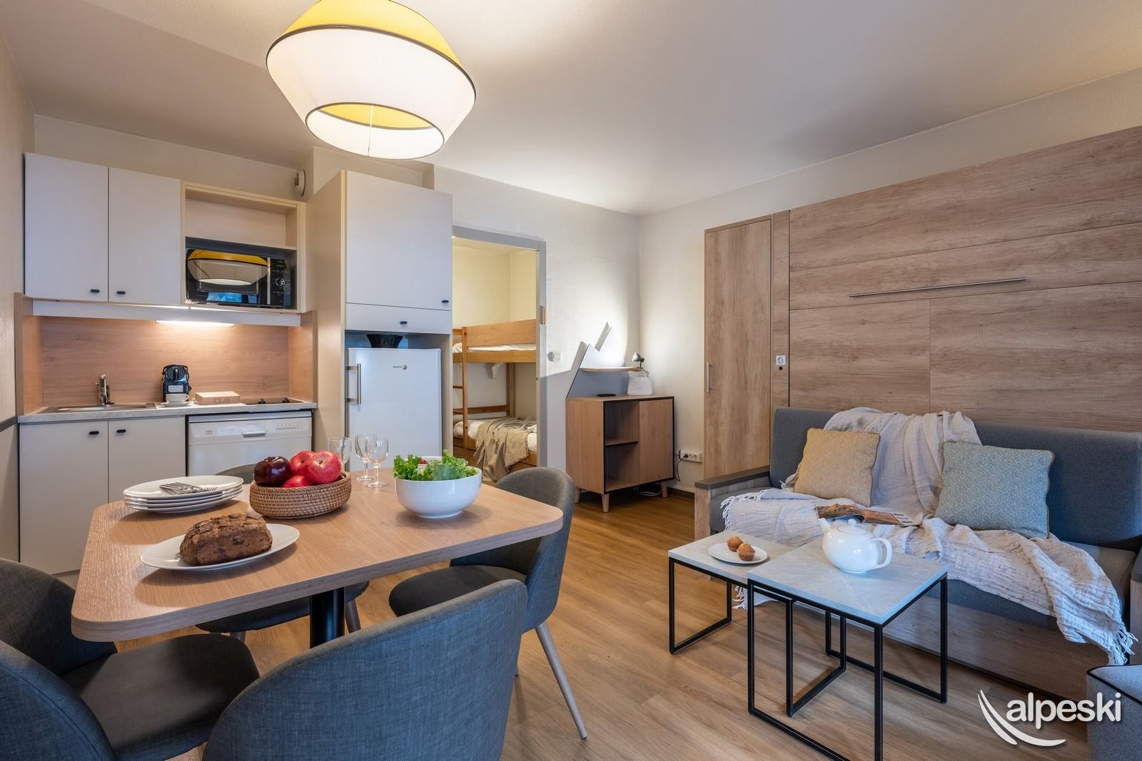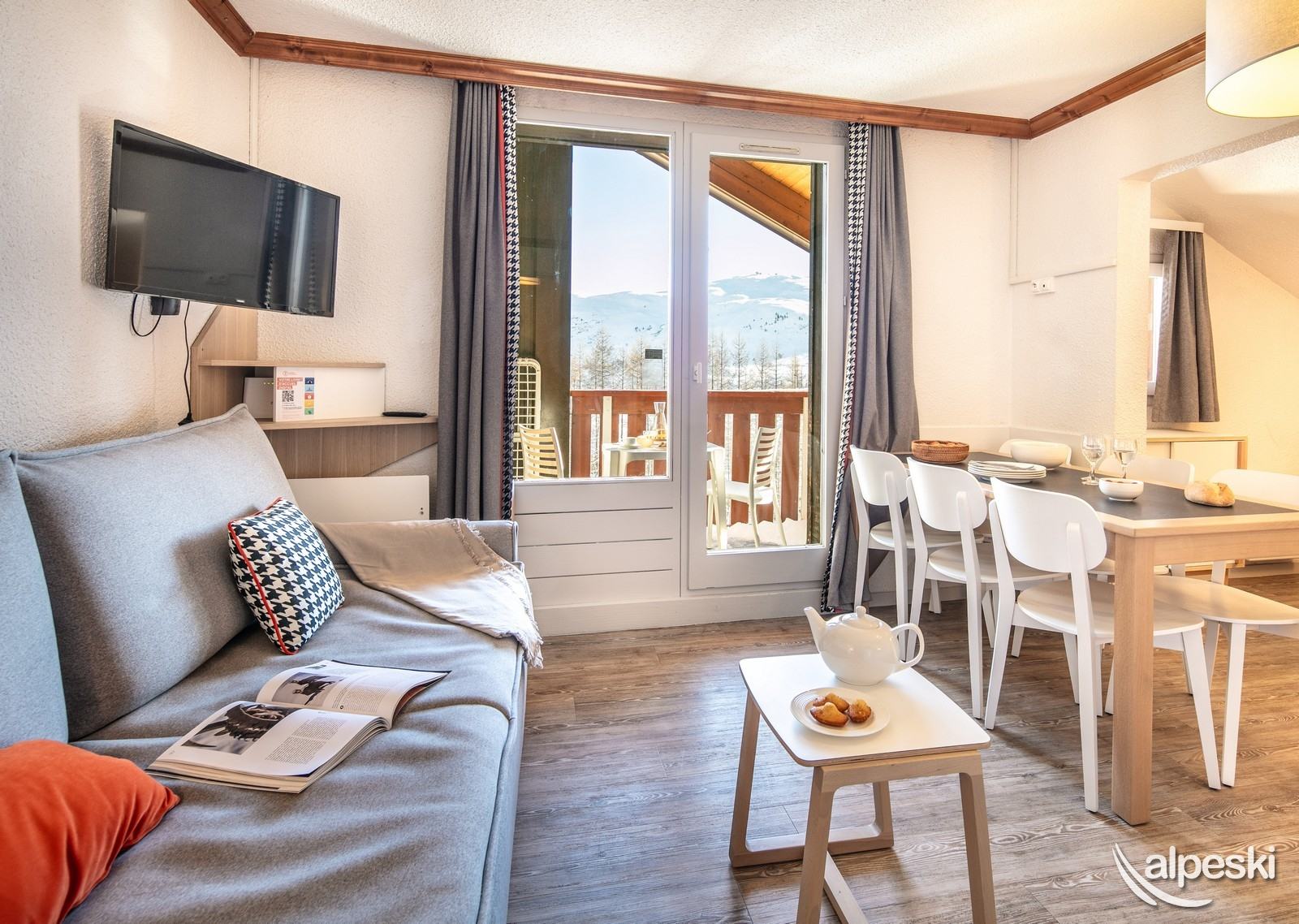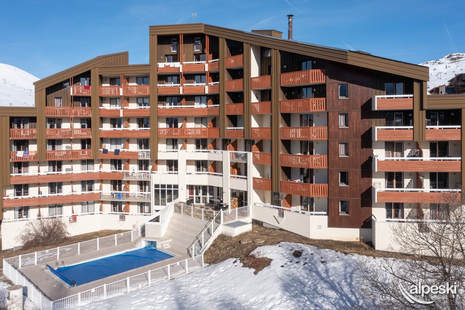 Se trata de una residencia de gran confort, con vistas a las pistas y la estación o al valle y al Macizo de “Ecrins” (sur), que alberga 133 apartamentos de diferentes capacidades a los que se accede mediante 3 ascensores.