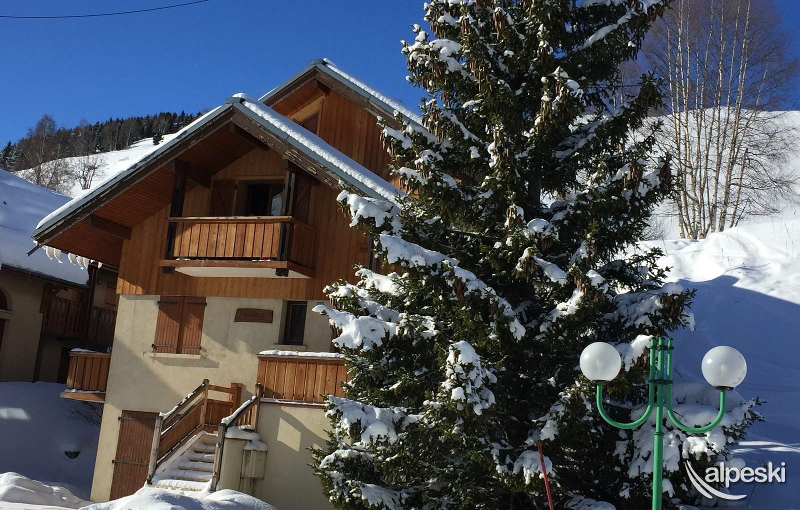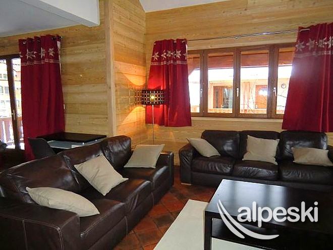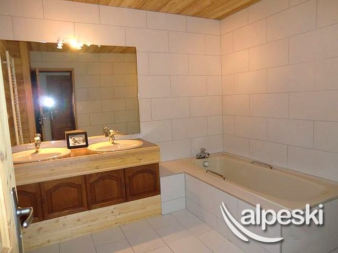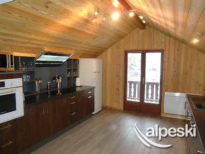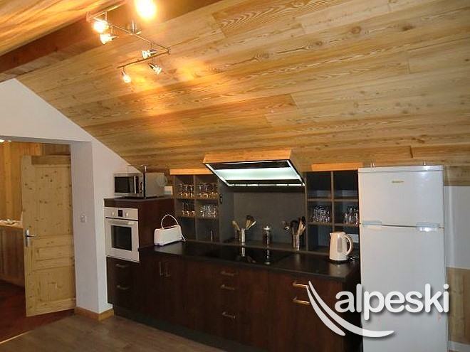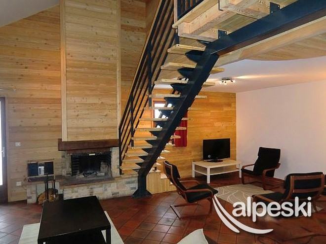 y 5 baños. En la planta baja se encuentra el garaje, la sala de guardaesquís y bicicletas. En el 1er piso se encuentran las 4 habitaciones triples y La habitación cuádruple. Finalmente en el segundo piso, la cocina equipada (horno, microondas, lavavajillas, vitrocerámica)