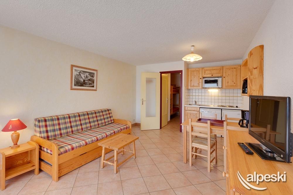 BELLE ETOILE AREA : Quick and easy access to the ski area. At the entrance to the resort, this area has plenty of shops and facilities within easy reach. THE RESIDENCE : - At the entrance to the resort, a few metres from the snow front - Close to the Champamé meeting point - Lift - Outdoor parking - Ski room THE ACCOMMODATION : - Studio 4 person - 28m² - 1st floor - Balcony - South facing - Carpeted floor - Fully equipped open-plan kitchenette (dishwasher) - Living room : 1 sofa with 1 pull out bed (2x1 pers) - Hall alcove : bunk beds (2x1 pers) - Bathroom with bathtub - Separate WC USEFUL INFORMATION : - One welcome kit provided : 1 toilet roll, 50ml of washing up liquid, 1 sponge and 1 cloth - One blanket and one pillow provided per bed - One disposable mattress protector provided per bed - Bed linen not included - Mattress size : 80cm x 190cm - Top bunk not suitable for children under 6 years old - TV with french channels only - No internet connection, free wifi available at the Tourist Office - Non smoking accommodation - Keys available from 4pm at the agency SC2A - Fixed check out time between 8am-10am, appointment time indicated on arrival.