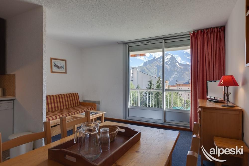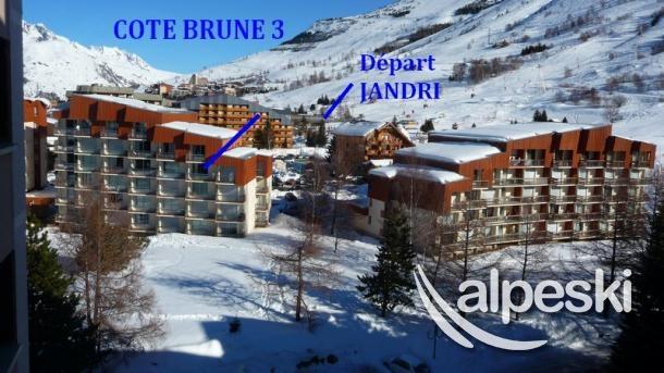 MI-ALPES AREA :Se encuentra en una zona muy centrica y su posición privilegiada en el front de neige. Este bloque de apartamentos con ascensor, delante de pistas y al lado del Jandry Express, tiene un aparcamiento exterior local guarda esquíes. Su posición especial, en el centro de la localidad, cerca de las tiendas y del punto de reunión de la ESF "Côte Brune". Residencia con código de entrada
