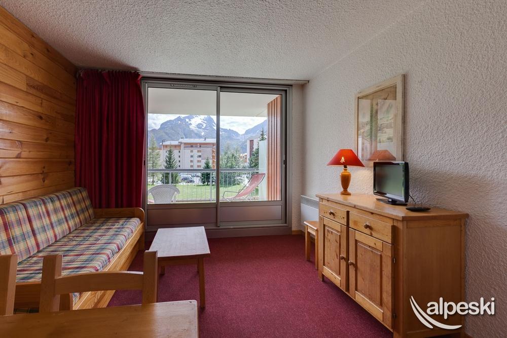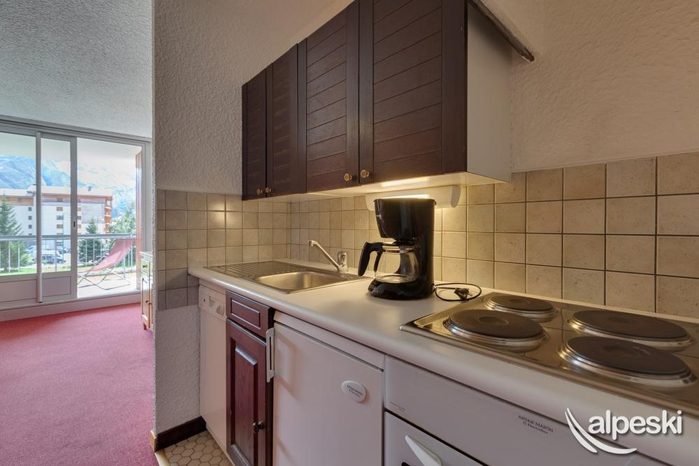 MI-ALPES AREA : An ideal compromise for ski lovers and shopaholics! This area is also popular in the daytime, throughout the season, for its lively snow front APPARTMENT "COMFORT RANGE" 2 rooms 6 pers - 43m² - 3rd floor - South facing balcony Hall alcove: 1 bunk bed (2 pers) Living room : 1 sofa bed (2 pers) + TV Bedroom: 1 double bed (2 pers) Blankets and pillows Kitchen : oven, fridge, electric stove top, coffee machine, kitchen ware Bathroom: bathtub WC