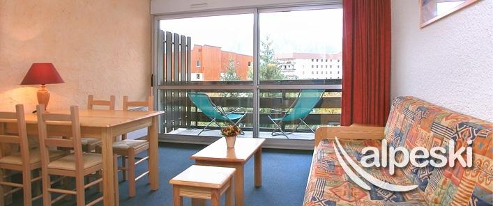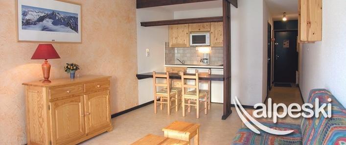 MI-ALPES AREA : An ideal compromise for ski lovers and shopaholics! This area is also popular in the daytime, throughout the season, for its lively snow front "COMFORT RANGE" APARTMENT Studio 4 pers - 33m² - 2nd floor - South facing balcony Hall alcove : 1 bunk bed (2 pers) Living room : 1 sofa bed (2 pers) + TV Kitchen equipped with : oven, dishwasher, fridge, electric stove top, coffee machine, kitchen ware Bathroom: bathtub 1 separate WC