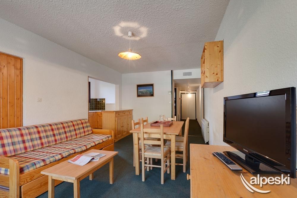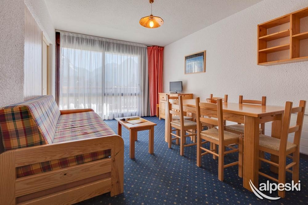 MI-ALPES AREA : An ideal compromise for ski lovers and shopaholics. This area is popular in the daytime, throughout the season, for its lively snow front. THE RESIDENCE : - At the centre of the resort, a few metres from the snow front - Close to the ski school meeting points - Digital entrance code - Lift - No private car park, free parking nearby - Ski room THE ACCOMMODATION : - Studio 4 person - 33m² - 4th floor - Balcony - South facing - Carpeted floor - Fully equipped open-plan kitchenette (dishwasher) - Living room : 1 sofa with 1 pull out bed (2x1 pers) - Hall alcove : bunk beds (2x1 pers) - Bathroom with bathtub - Separate WC USEFUL INFORMATION : - One welcome kit provided : 1 toilet roll, 50ml of washing up liquid, 1 sponge and 1 cloth. - One blanket and one pillow provided per bed - One disposable mattress protector provided per bed - Bed linen not included - Mattress size : 80cmx190cm - Top bunk not suitable for children under 6 years old - TV with french channels only - No internet connection, free wifi available at the Tourist office - Non smoking accommodation - Keys available from 4pm at the agency SC2A - Fixed check out time between 8am-10am, appointment time indicated on arrival