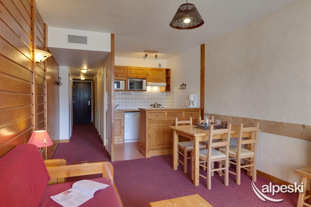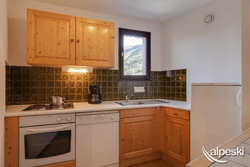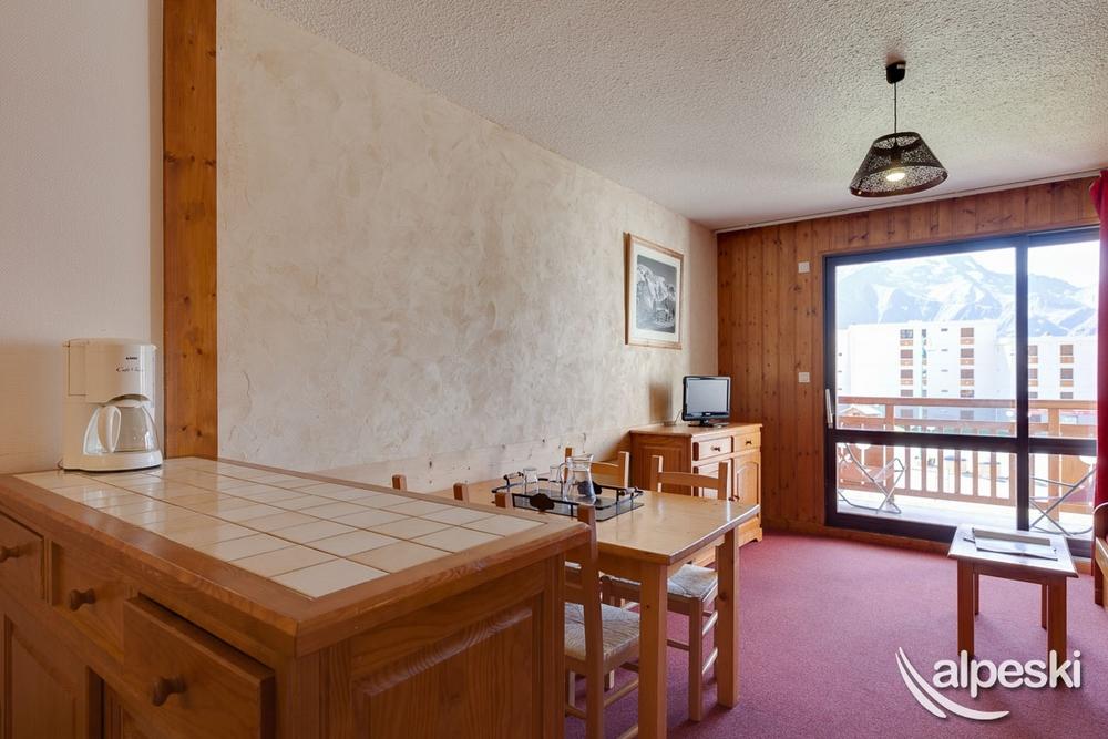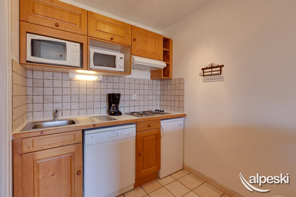 MI-ALPES AREA : An ideal compromise for ski lovers and shopaholics. This area is popular in the daytime, throughout the season, for its lively snow front. THE RESIDENCE : - At the centre of the resort, a few metres from the snow front - Close to the ski school meeting points - Digital entrance code - Lift - No private car park, free parking nearby - Ski room THE ACCOMMODATION : - Studio 4 person - 34m² - 4th floor - Balcony - West facing - Carpeted floor - Fully equipped open-plan kitchenette (dishwasher) - Living room : 1 sofa with 1 pull out bed (2x1 pers) - Hall alcove : bunk beds (2x1 pers) - Bathroom with bathtub - Separate WC USEFUL INFORMATION : - One welcome kit provided : 1 toilet roll, 50ml of washing up liquid, 1 sponge and 1 cloth. - One blanket and one pillow provided per bed - One disposable mattress protector provided per bed - Bed linen not included - Mattress size : 80cmx190cm - Top bunk not suitable for children under 6 years old - TV with french channels only - No internet connection, free wifi available at the Tourist office - Non smoking accommodation - Keys available from 4pm at the agency SC2A - Fixed check out time between 8am-10am, appointment time indicated on arrival