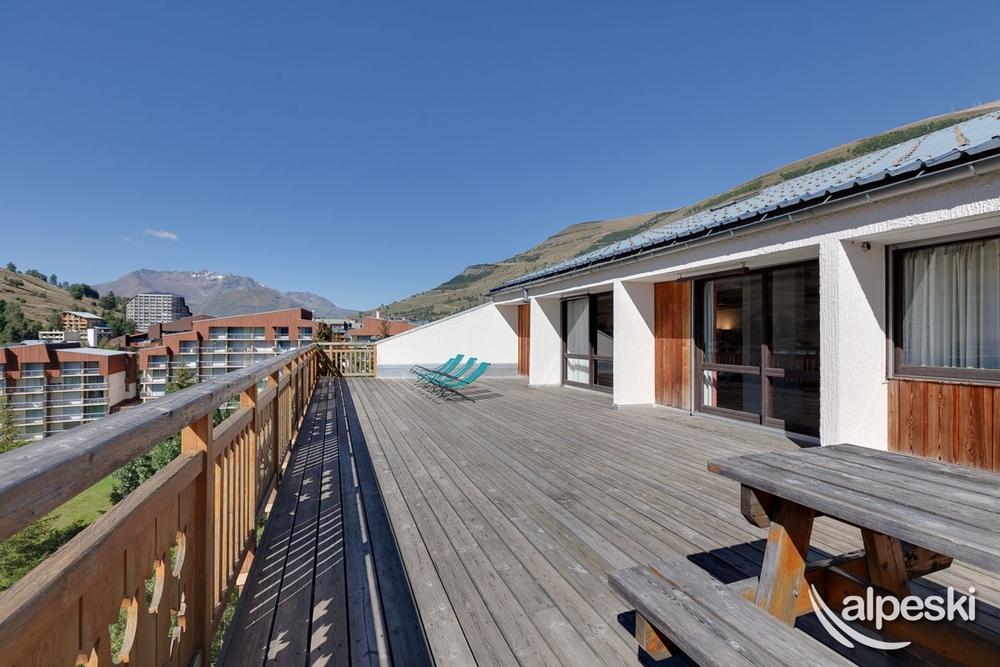 MI-ALPES AREA : An ideal compromise for ski lovers and shopaholics. This area is popular in the daytime, throughout the season, for its lively snow front. THE RESIDENCE : - At the centre of the resort, a few metres from the snow front - Close to the ski school meeting points - Digital entrance code - Lift - No private car park, free parking nearby - Ski room THE ACCOMMODATION : - 12 person apartment - 130m²- Duplex - 6th floor - South/west facing - PVC flooring at the ground floor and carpeted at the 1st floor - Large terrace (50m²) - Fully equipped open-plan kitchenette (dishwasher) - Living room : sofas, one of which with 1 pull out bed (2x1 pers) - Bedroom : single beds (2x1pers) - Bathroom with shower - Separate WC UPPER FLOOR : - Hall alcove : 1 sofa with 1 pull out bed (2x1 pers) - Bedroom 1 : double bed (1x2 pers) and bathroom with bathtub - Bedroom 2 : single beds (2x1 pers) - Mezzanine : single beds (2x1pers) USEFUL INFORMATION : - One welcome kit provided : 1 toilet roll, 50ml of washing up liquid, 1 sponge and 1 cloth. - One blanket and one pillow provided per bed - One disposable mattress protector provided per bed - Bed linen not included - Mattress size : 80cmx190cm, except double bed : 140cmx190cm - Top bunk not suitable for children under 6 years old - TV with french channels only - No internet connection, free wifi available at the Tourist office - Non smoking accommodation - Keys available from 4pm at the agency SC2A - Fixed check out time between 8am-10am, appointment time indicated on arrival