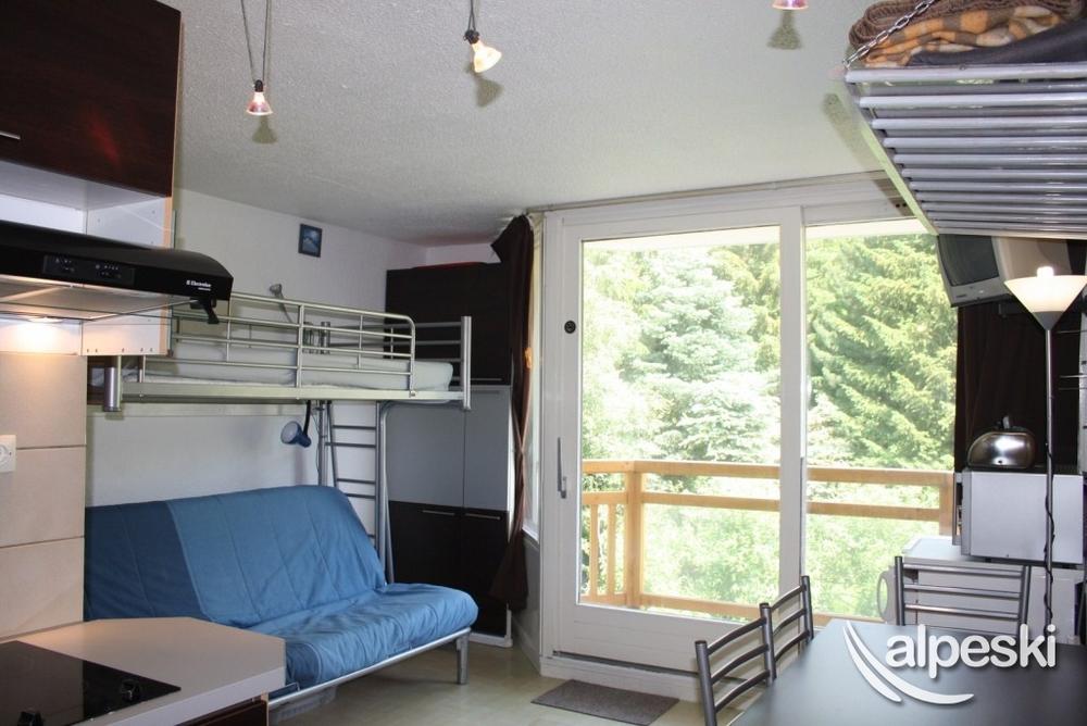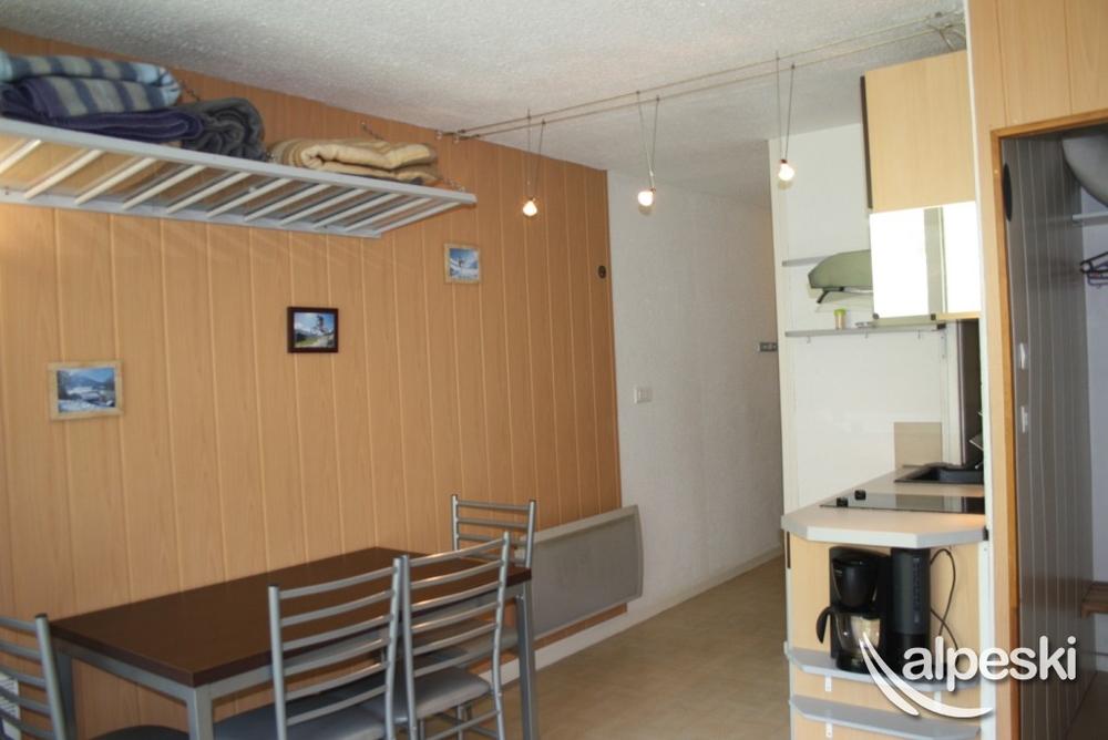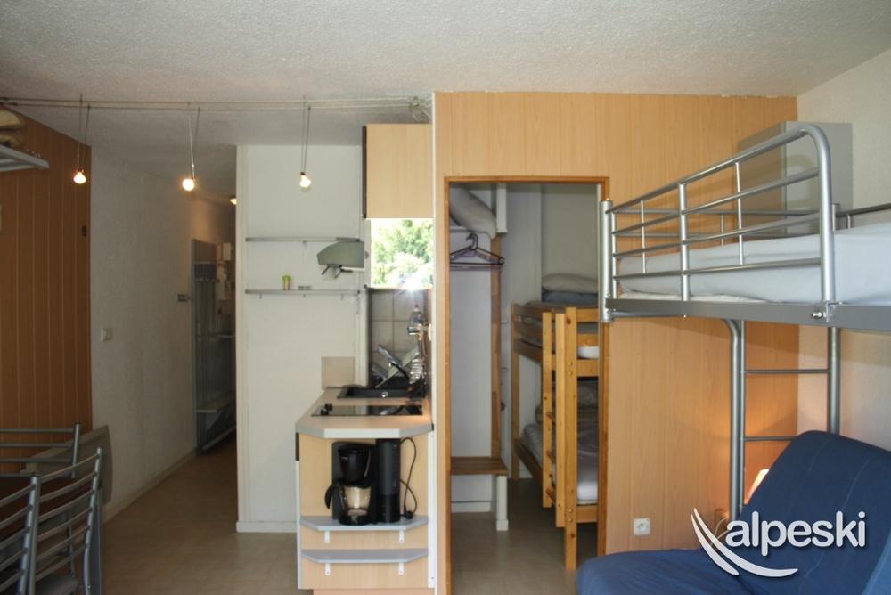 LE DIABLE AREA: The beating heart of 2 Alpes après ski! Head here once the pistes have closed, for a friendly, village atmoshere. STUDIO "COMFORT RANGE" Studio 4 pers - 25m2 - 2° floor Balcony east Living-room: 1 sofa bed (2 pers) Cabin : 2 single beds (2 pers) Blankets and pillows Compacted kitchen equipped with: oven, fridge, electric stove top, coffee maker machine, toaster and kitchen ware.