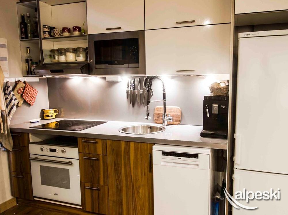 Cocina totalmente equipada. 3 anillos de cerámica, horno, frigorífico, lavavajillas, cafetera, hervidor, raclette.