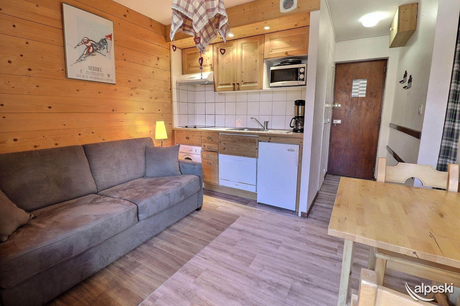 RESIDENCIA GRANDE ROSIERE n°35 - TIPO A1 Clasificación 2* para 3 personas - Etiqueta Méribel - Apartamento con encanto Estudio dividido, 2/3 Personas, 21m², Norte, 3er piso por escalera Dormitorio separado por una puerta corredera: 1 sofá cama para 2 personas (140x190) Comedor: 1 banco cama individual (80x190) Cocina abierta: horno con microondas, refrigerador, 2 placas de vitrocerámica, lavavajillas, cafetera de filtro, tostadora, hervidor eléctrico, campana extractora Baño - WC separado TV de pantalla plana incluida SE ADMITEN MASCOTAS - NO FUMAR Conexión Wi-Fi gratuita según la empresa administradora del edificio - conexión no garantizada