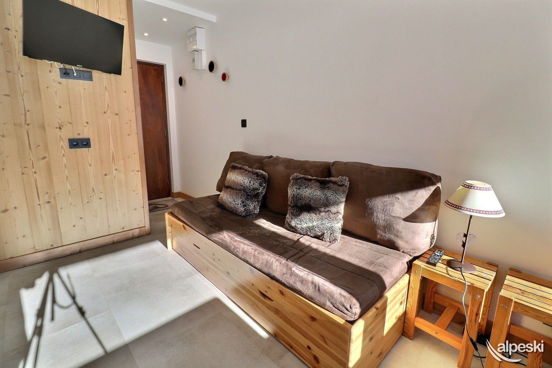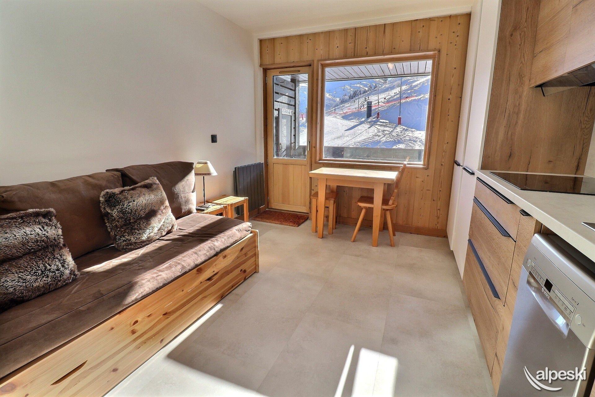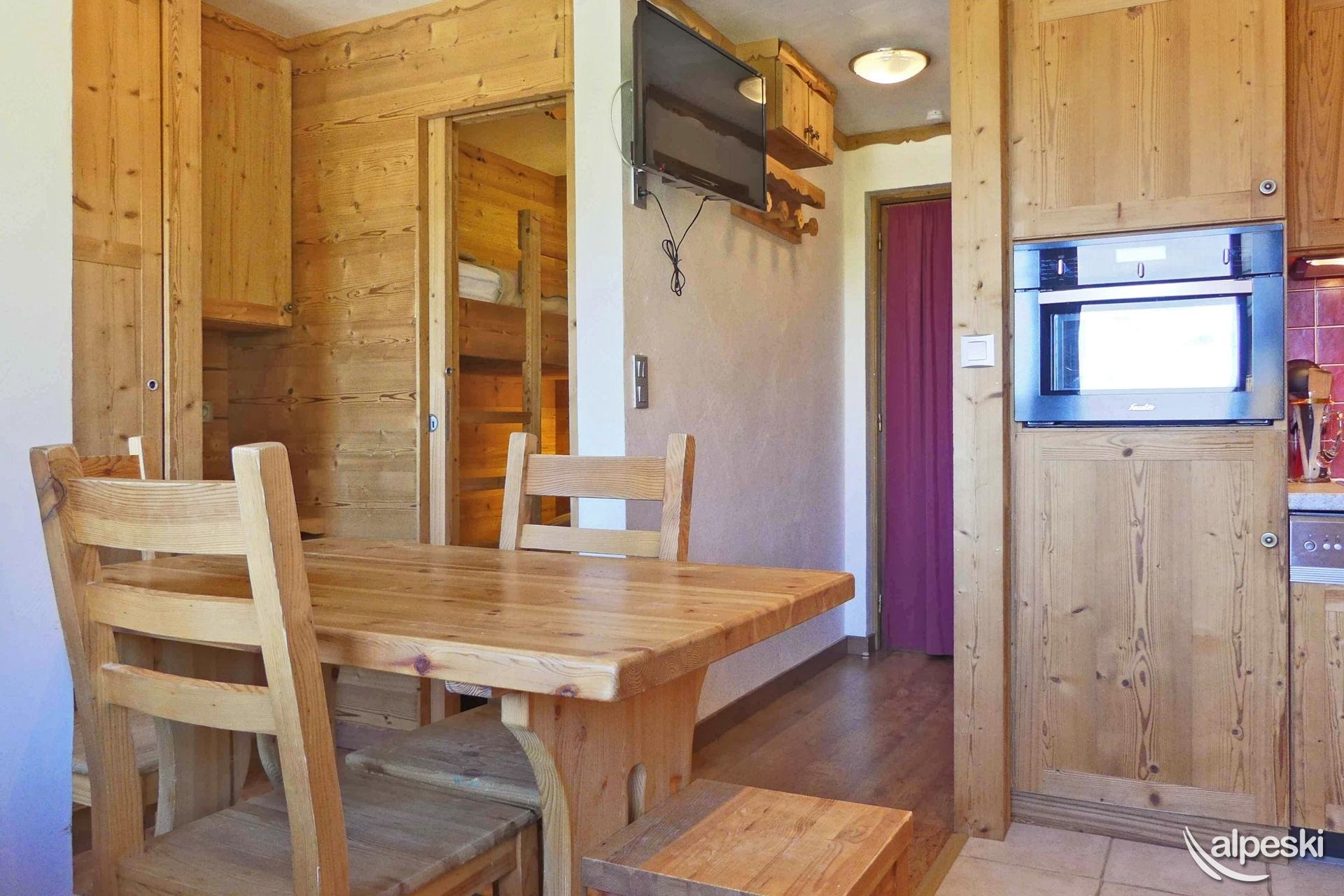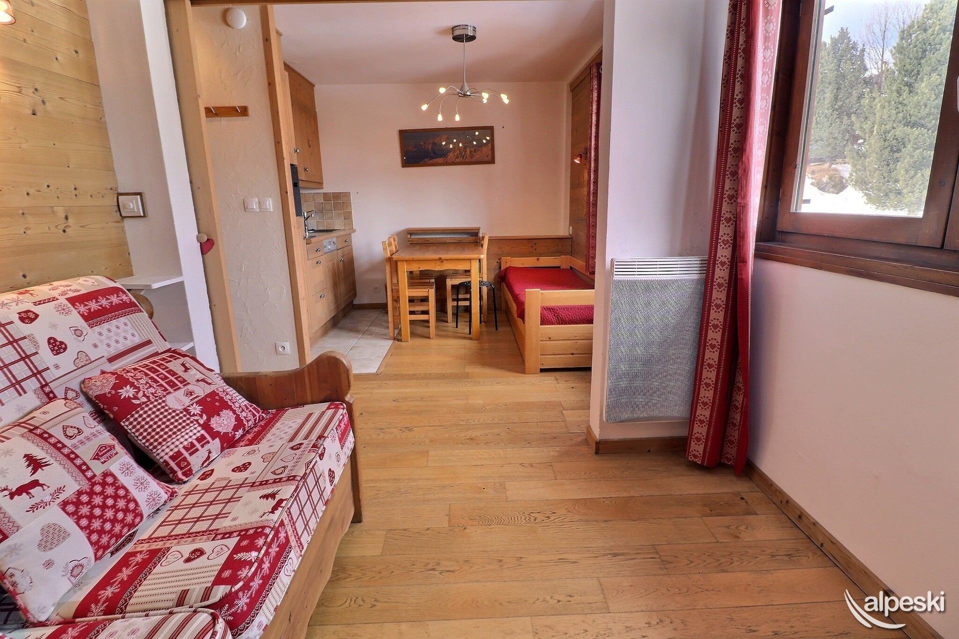 RESIDENCIA ROC DE TOUGNE n°35 - TIPO A1 Clasificación 2* para 3 personas - Etiqueta Méribel - Apartamento con encanto Estudio dividido, 2/3 Personas, 21m², Norte, 3er piso por escalera Habitación separada por una puerta corredera: 1 sofá cama para 2 personas (140x190) Comedor: 1 banco cama individual (80x190) Cocina abierta: horno con microondas, nevera, 2 placas de vitrocerámica, lavavajillas, cafetera de filtro, tostadora, hervidor eléctrico, campana extractora Baño - WC independiente Pequeño televisor de pantalla plana incluido SE ADMITEN MASCOTAS - NO FUMAR Conexión Wi-Fi gratuita según la empresa administradora del edificio - conexión no garantizada