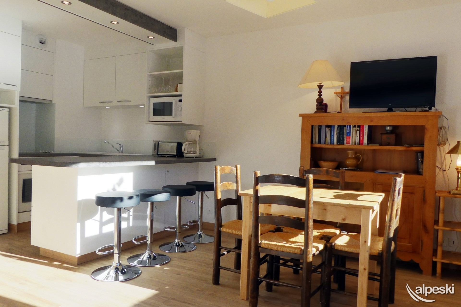 RESIDENCIA ROC DE TOUGNE N° 25 - TIPO B1 Clasificación 2* para 2 personas Estudio, 2 personas, 16 m², balcón orientado al sur, 2º piso sin ascensor Salón: 1 sofá cama (80x190) y una cama nido (80x190) Cocina americana: 3 placas vitrocerámicas, frigorífico, lavavajillas, horno pequeño, cafetera de filtro, tostadora, hervidor eléctrico Cuarto de ducha con WC TV de pantalla plana incluida Conexión wifi gratuita según la empresa administradora del edificio - conexión no garantizada NO FUMAR - NO SE ADMITEN MASCOTAS
