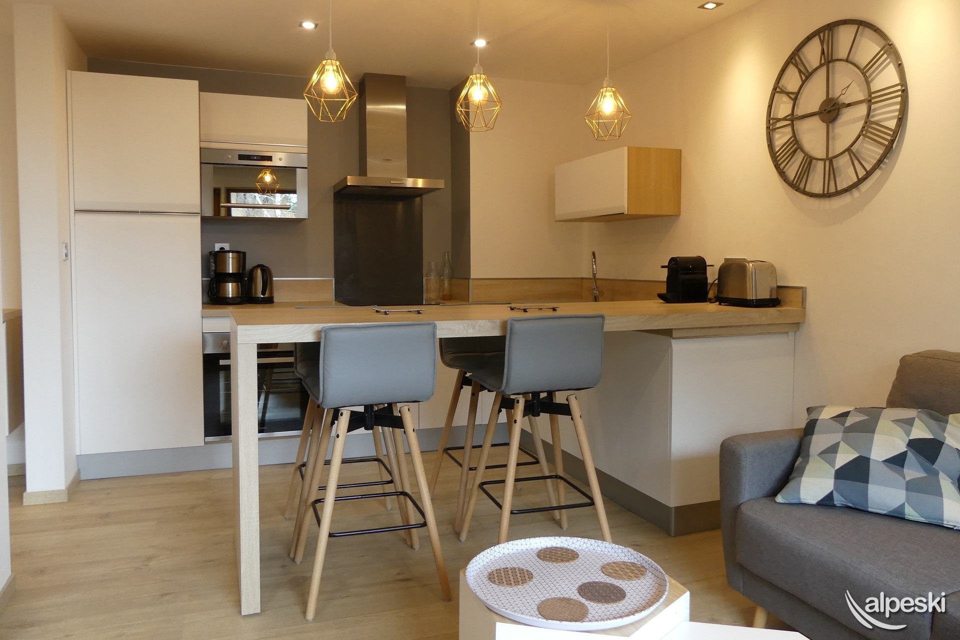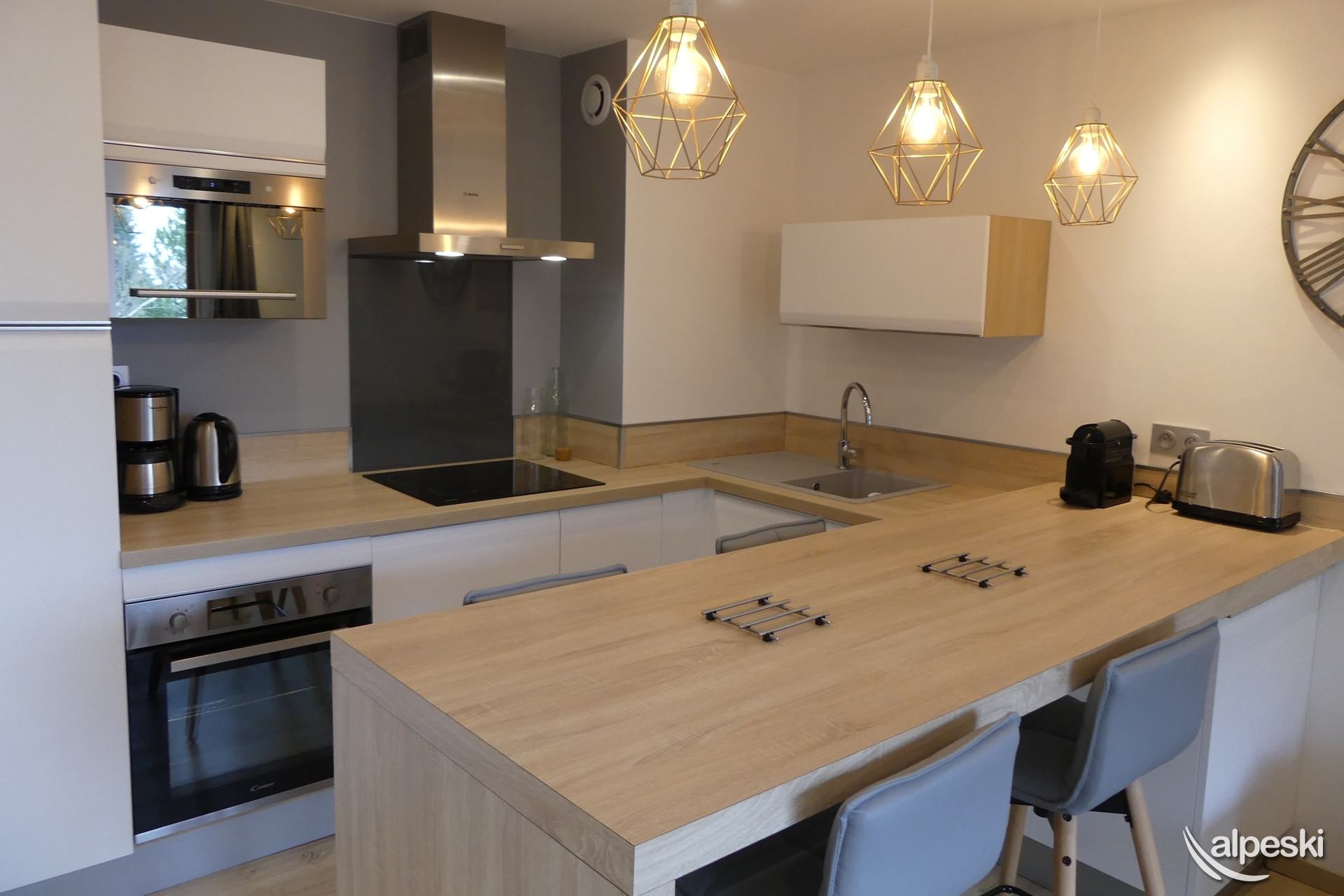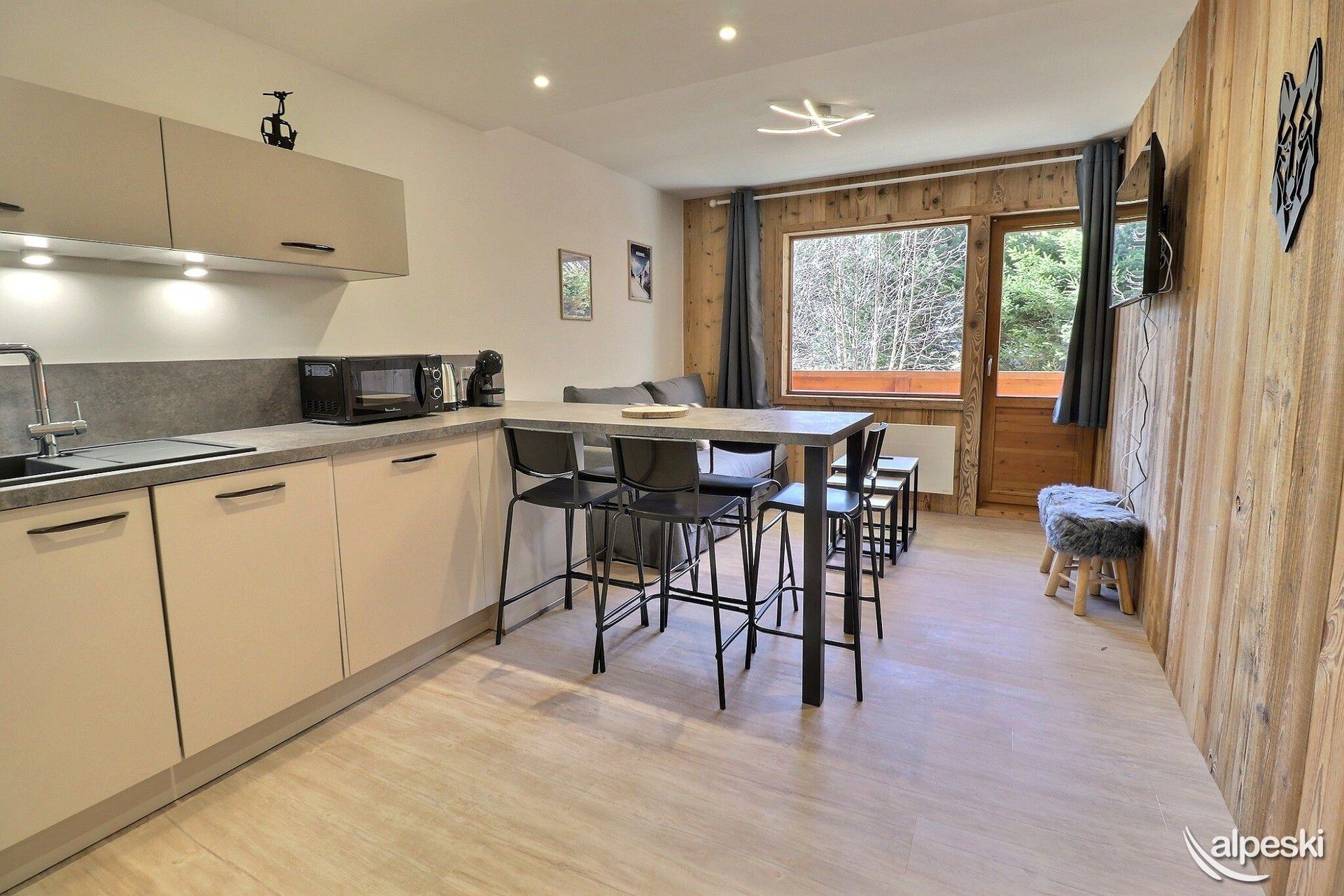 RESIDENCIA LE MONT VALLON N° 19 - Tipo D Clasificación en curso 2 habitaciones, 4 personas, 28m², Gran balcón sur, 1er piso (lado pistas) 2do piso sin ascensor (lado entrada) Sala de estar: 1 sofá cama para 2 personas (140x190) Dormitorio: 1 cama doble con acceso al balcón (160x190) Cocina abierta: microondas, horno, frigorífico, lavavajillas, 2 placas de inducción, cafetera Nespresso, tostadora, hervidor eléctrico, campana extractora Cuarto de ducha con WC TV de pantalla plana incluido MASCOTAS PROHIBIDAS - NO FUMADORES