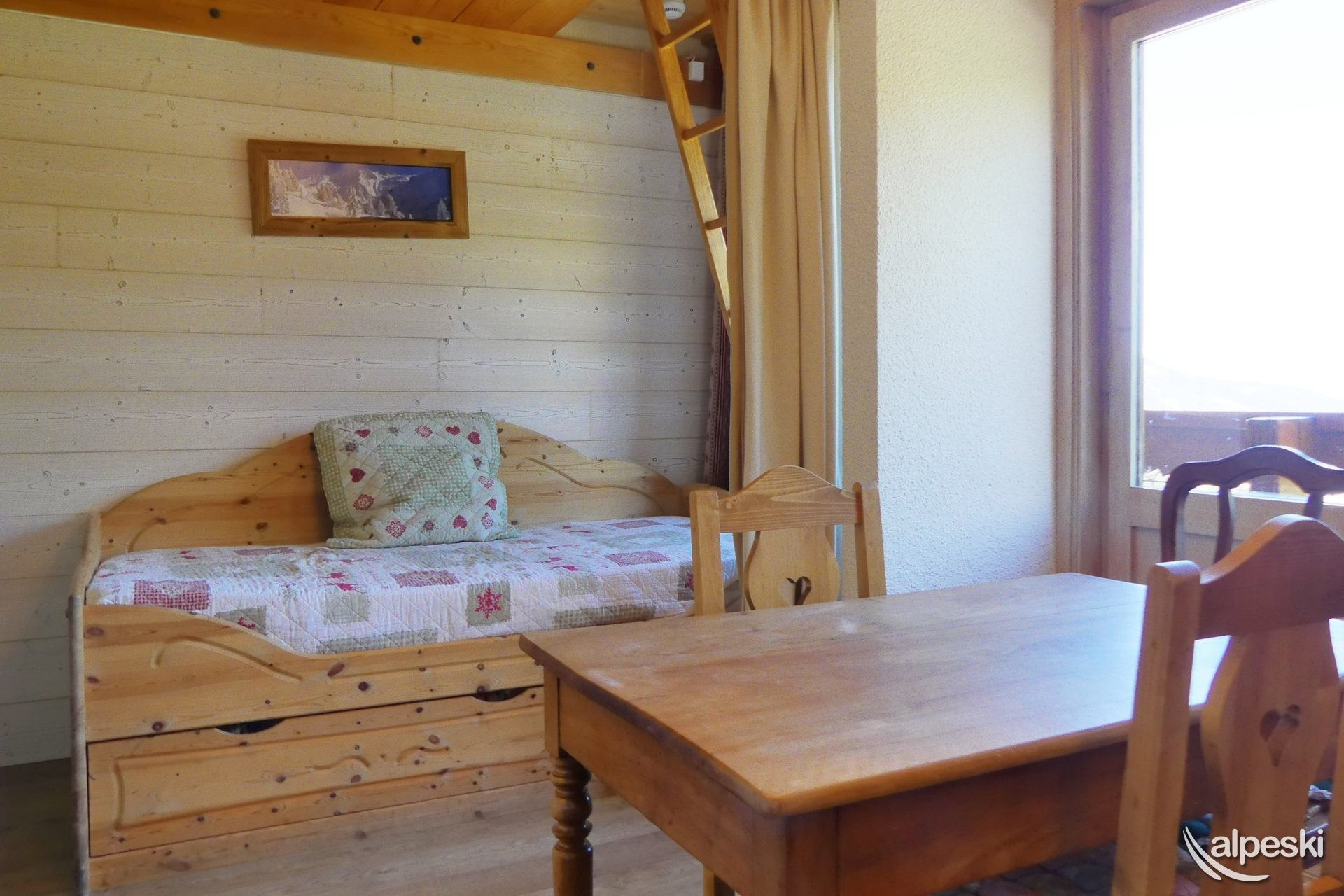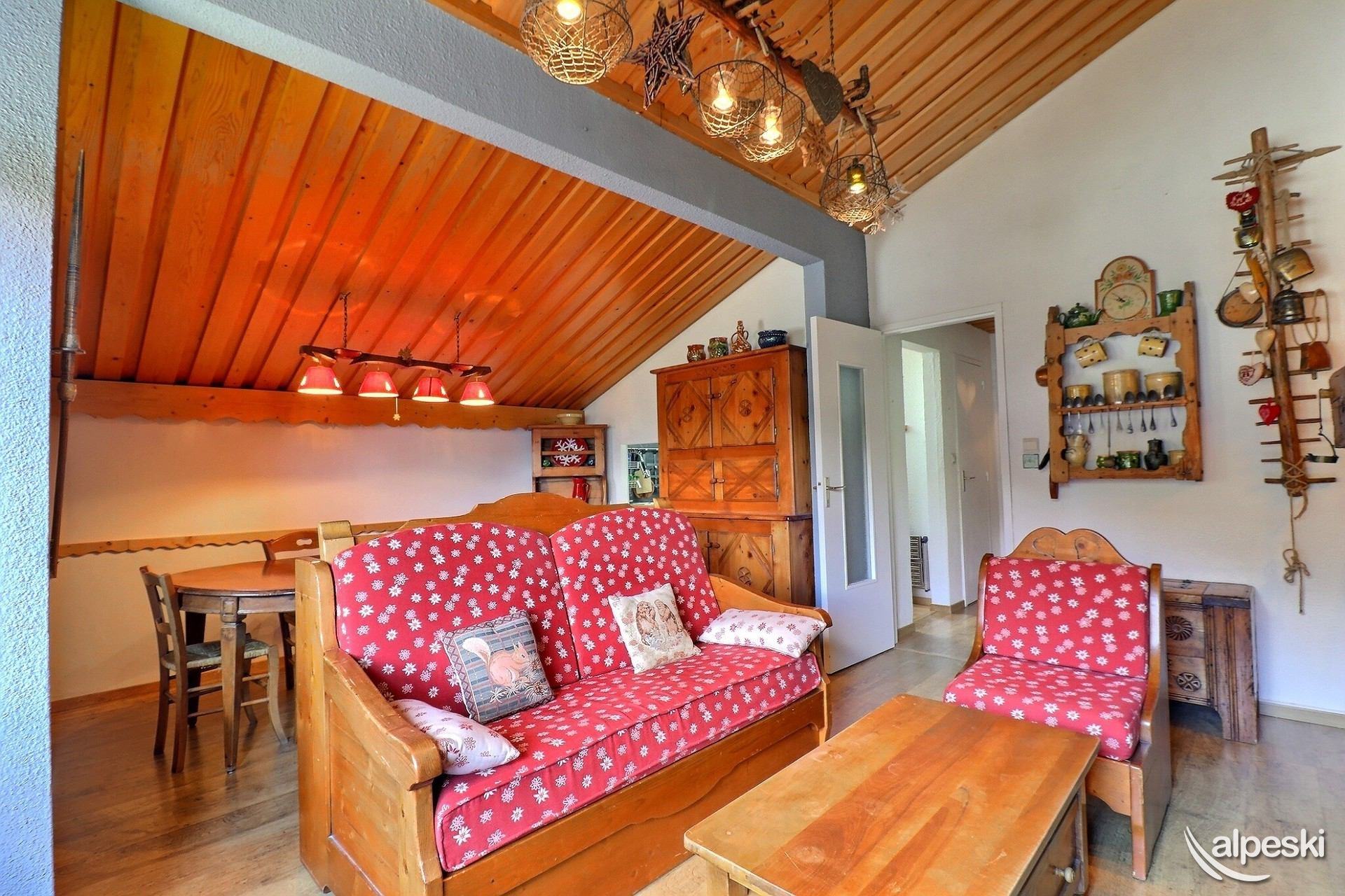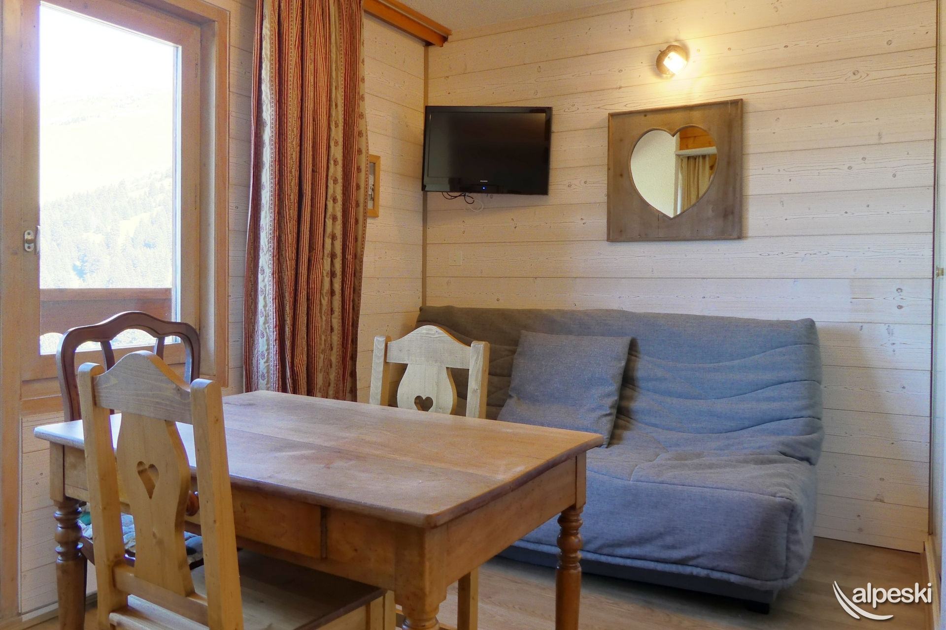 RESIDENCIA LE MONT VALLON N° 15 - Tipo C1 Clasificación 1* para 4 personas Estudio con cabina, 4 Personas, 32m², Balcón Sur, 1er Piso (lado pistas) 2do piso sin ascensor (lado entrada) Sala de estar: 1 sofá cama para 2 personas (140x190) y banco (sin ropa de cama) Cabina: 1 juego de literas (90x190) Cocina abierta: microondas, horno, refrigerador, lavavajillas, 2 placas de inducción, 1 cafetera de filtro, 1 tostadora, 1 hervidor eléctrico Baño - WC separado TV de pantalla plana incluida MASCOTAS ADMITIDAS - NO FUMADORES Excelente vista, acceso a un balcón amueblado con mesa y sillas