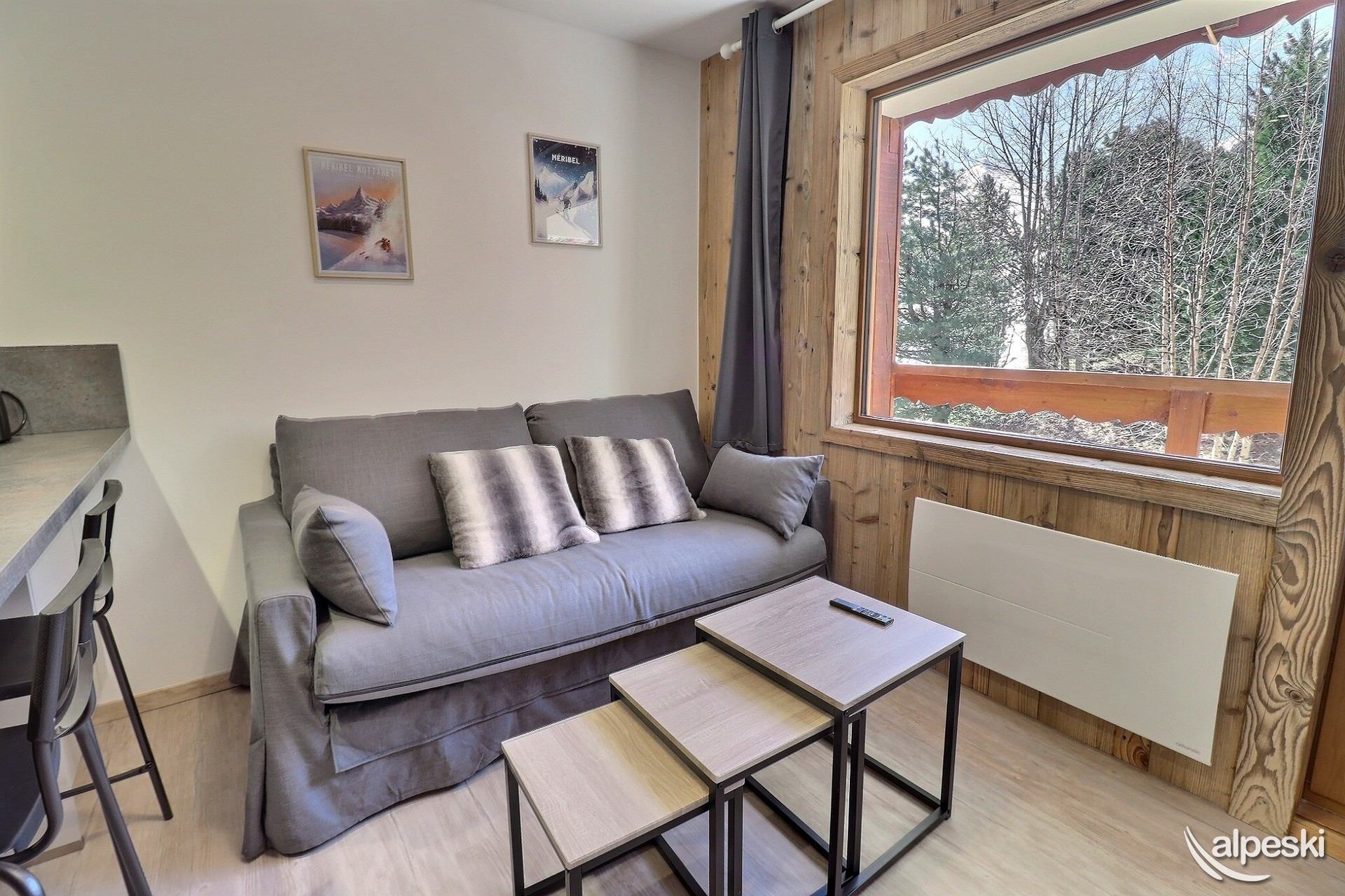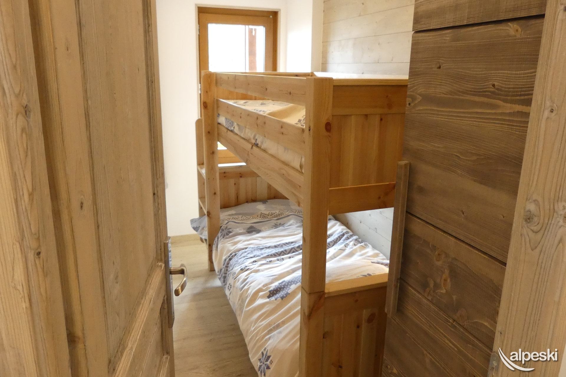 RESIDENCIA LE MONT VALLON N° 17 - Tipo G2 Clasificación 3* para 4 personas Etiqueta Meribel - Apartamento con encanto 3 habitaciones, 4 personas, 45m², Gran balcón sur, 1er piso (lado pistas) 2do piso sin ascensor (lado entrada) Sala de estar: 1 sofá de esquina (sin camas) Dormitorio: 1 cama doble con acceso al balcón (140x190) Dormitorio pequeño: 1 juego de literas (80x190) Cocina abierta: microondas, horno, nevera, lavavajillas, 4 placas vitrocerámicas, cafetera Nespresso, cafetera de filtro, tostadora, hervidor eléctrico, campana extractora Cuarto de ducha - WC separado TV de pantalla plana incluida MASCOTAS PROHIBIDAS - NO FUMADORES