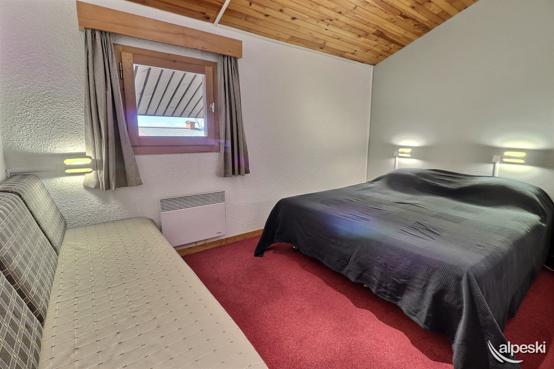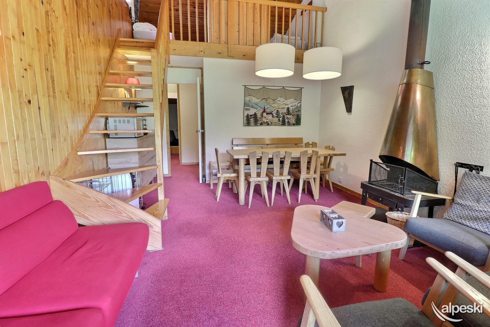 RESIDENCIA LA SAULIRE N° B29 - Tipo G1 Clasificación 2* para 7 personas Entrepiso de 3 habitaciones, 55 m², 7/8 personas, Balcón sur, 3er piso sin ascensor Salón: 1 banco-cama y 3 sillones con chimenea (leña no incluida) Cocina independiente: 4 placas vitrocerámicas, frigorífico, lavavajillas, campana extractora, horno, microondas (en el salón), cafetera de filtro, tostadora, hervidor eléctrico Habitación 1: 1 cama doble (160x190) o 2 camas individuales (80x190) y 1 cama individual (80x190) Habitación 2 (buhardilla): 2 camas individuales (80x190) Entrepiso (buhardilla - abierto al salón): 2 camas individuales (80x190) y 1 cama plegable (80x190) Cuarto de baño con lavadora Cuarto de ducha con WC - WC separado TV de pantalla plana incluida ACCESO A INTERNET GRATUITO, la conexión a Internet no se puede Garantizado, depende del proveedor NO FUMAR - Se prohíbe expresamente el ingreso de mascotas