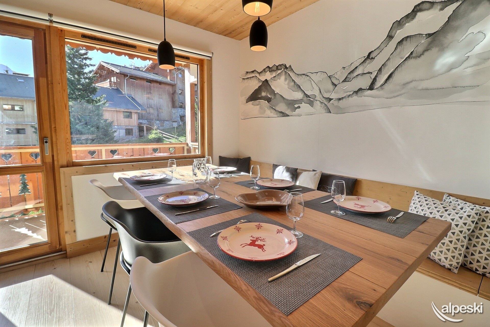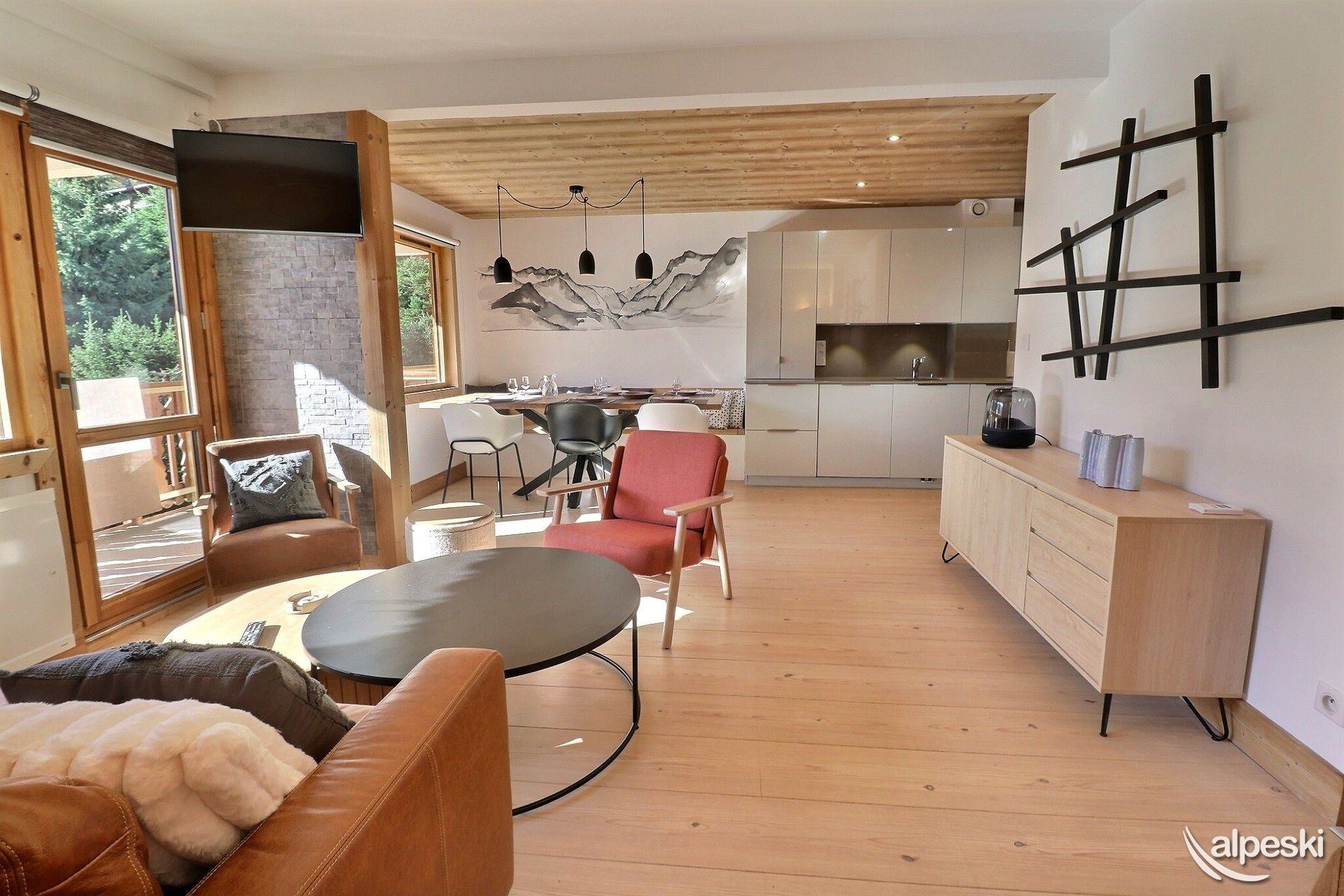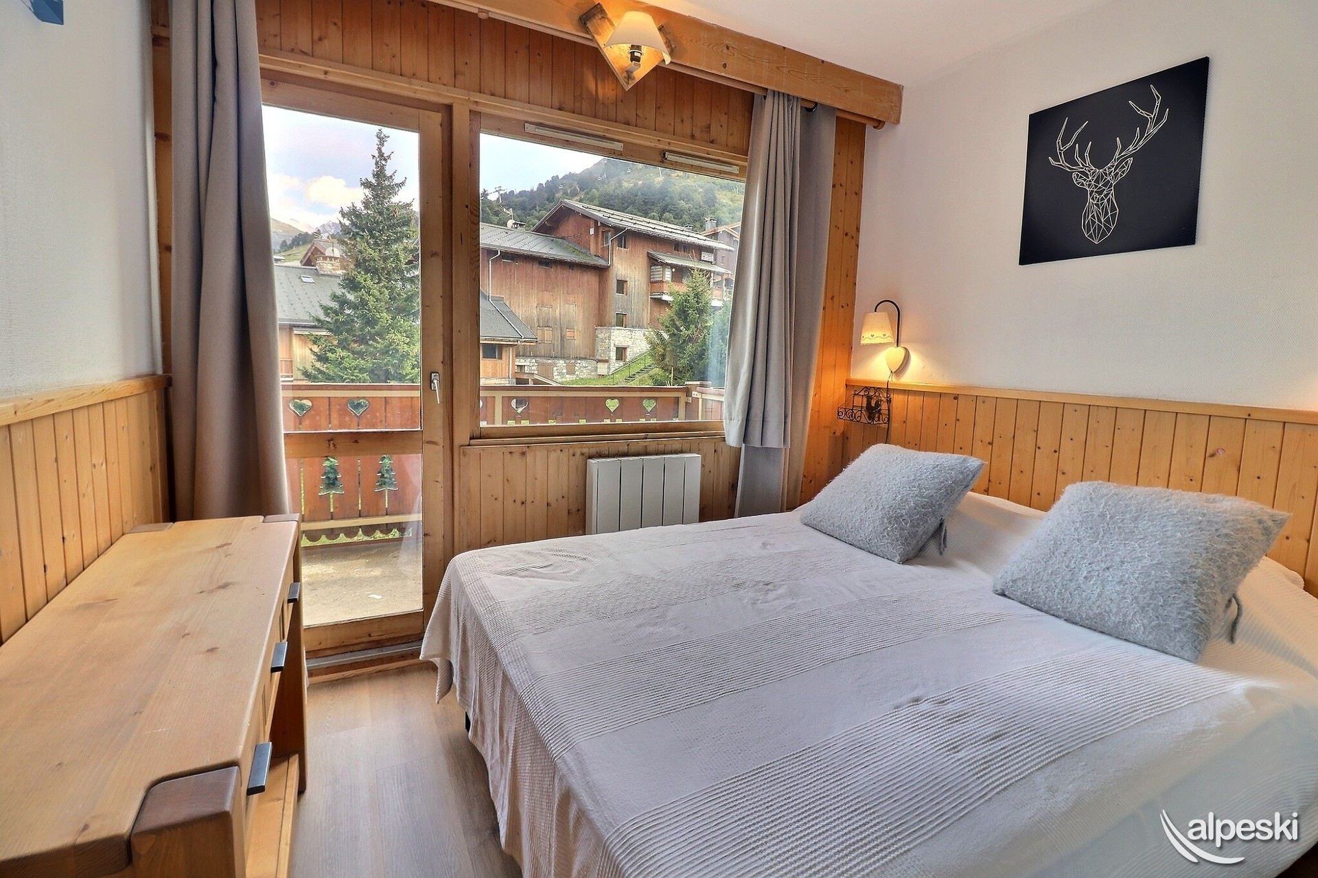 RESIDENCIA LA VANOISE N° 23 - TIPO G2 Clasificación 3* para 6 personas Etiqueta Méribel - Apartamento con encanto 3 habitaciones, 5/6 personas, 57m², Amplio balcón en ángulo sur y este, 4º piso Salón: 3 sillones y 1 sofá Cocina abierta: horno, microondas, frigorífico americano, lavavajillas, 3 placas de inducción, campana extractora Habitación sur y este: 1 cama doble (140x190cm) Habitación este: 1 cama doble (140x190cm) y 1 juego de literas (80x190cm) Cuarto de ducha con lavadora-secadora - WC separado Televisión de pantalla plana incluida ACCESO GRATUITO A INTERNET (la conexión depende del servicio del proveedor y no puede ser garantizada por la agencia) NO SE ADMITEN MASCOTAS - NO FUMAR