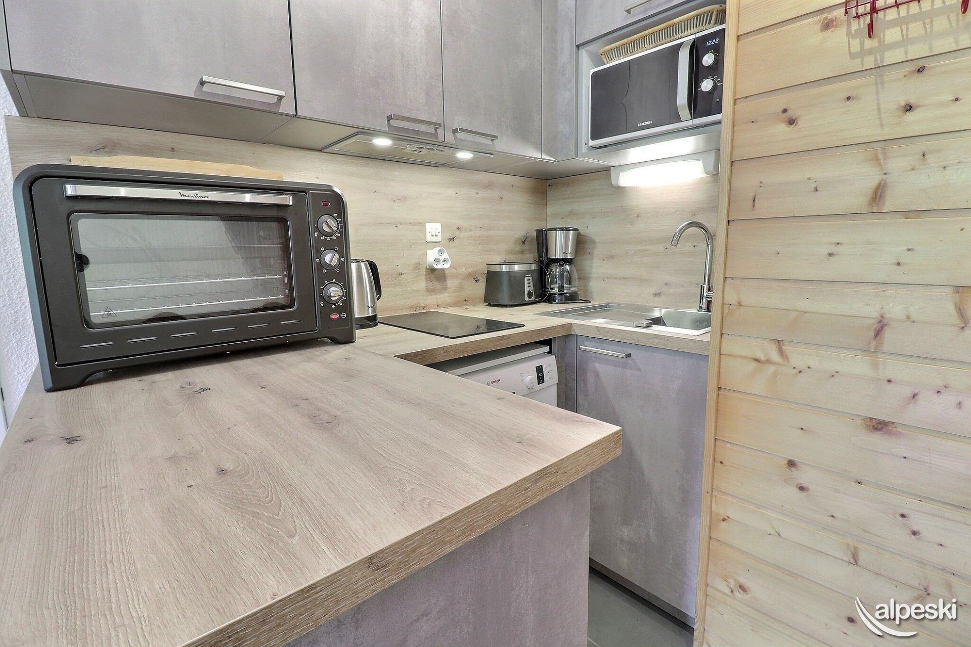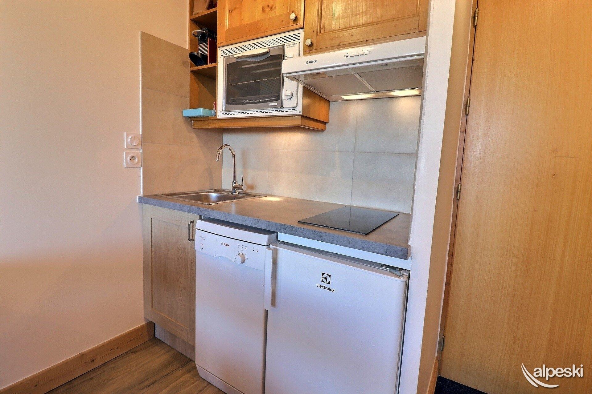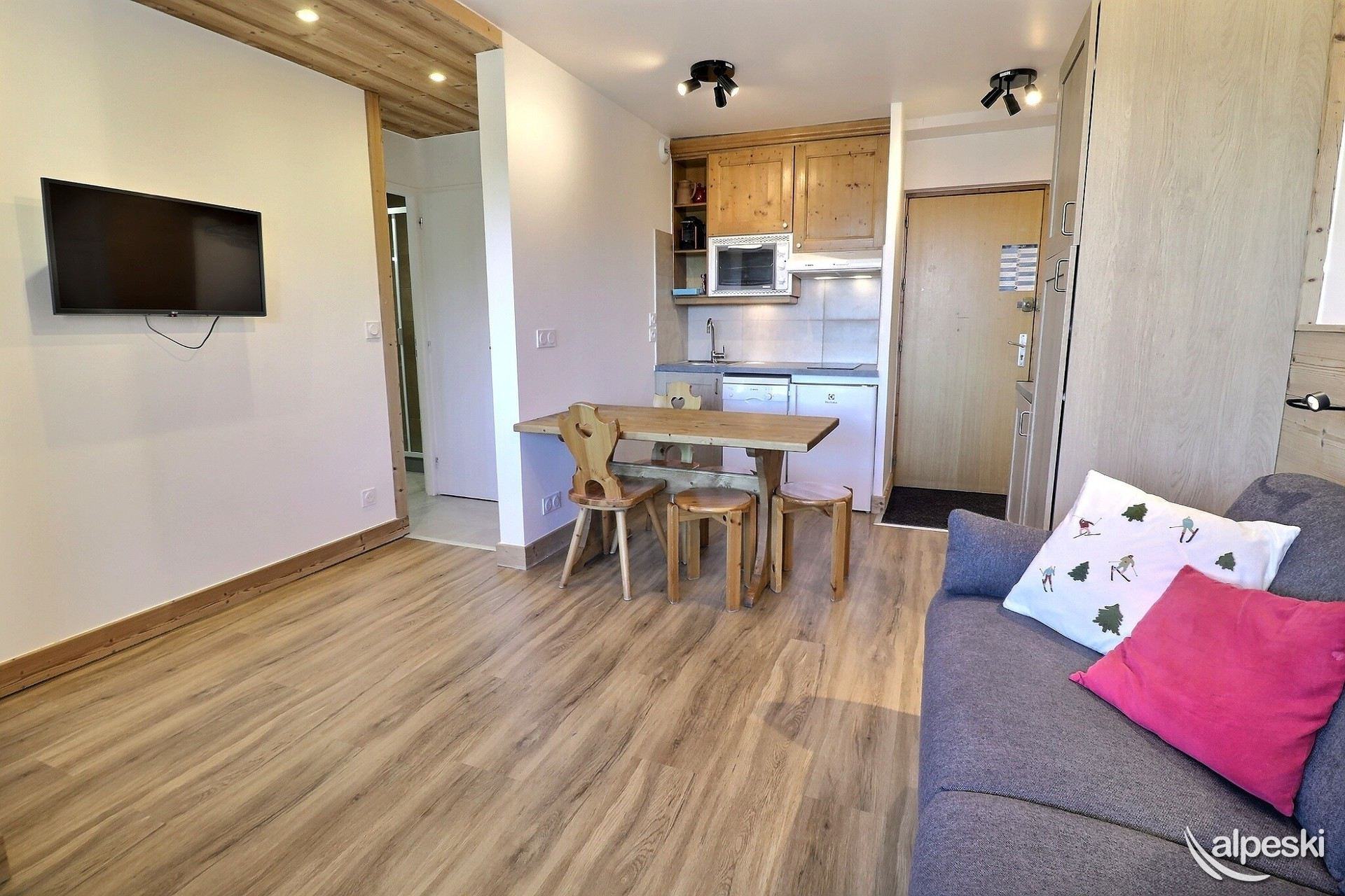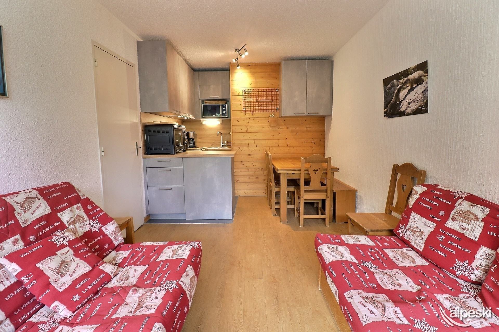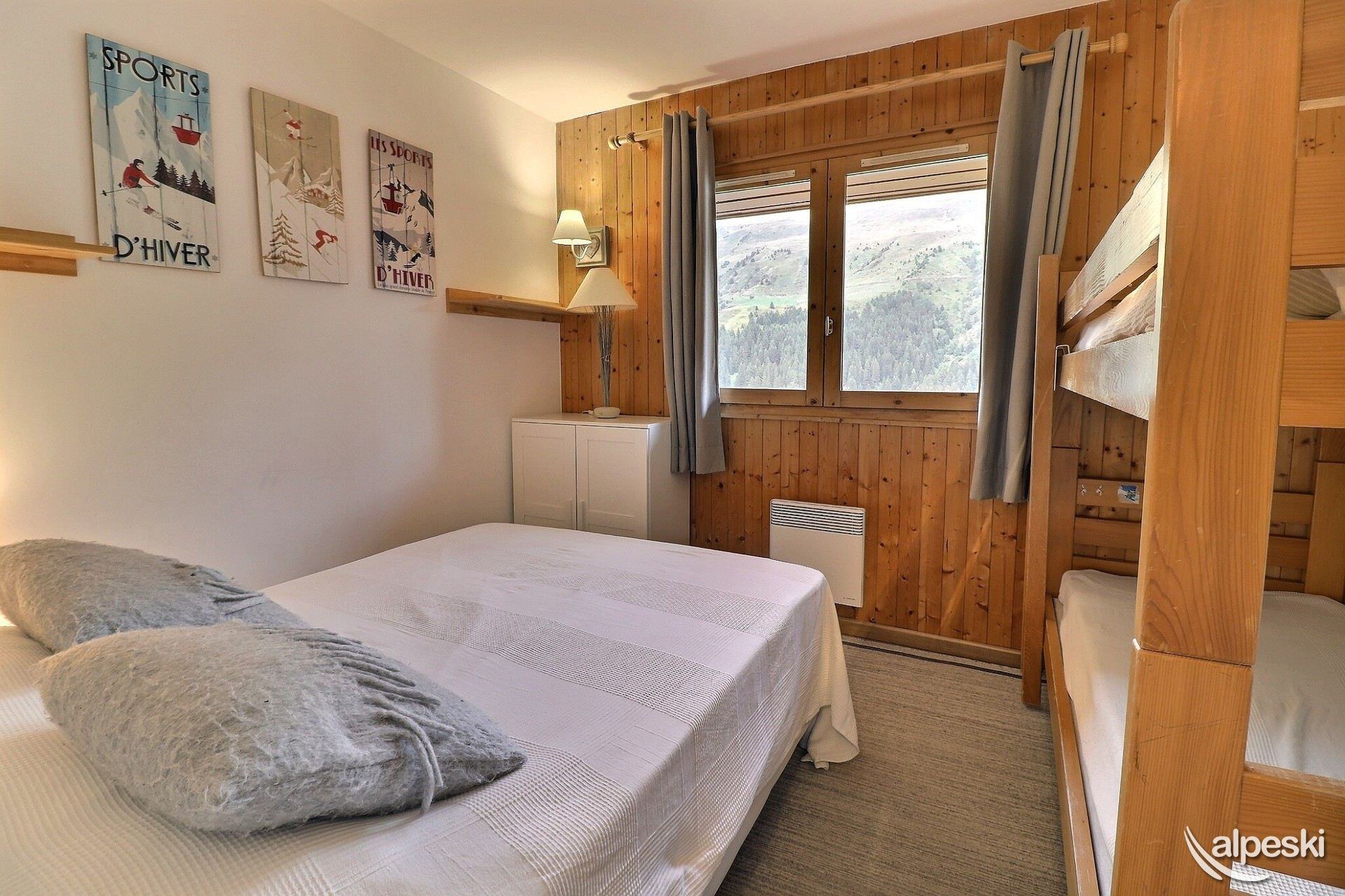 RESIDENCIA LA VANOISE N° 12 - Tipo C1 - Ascensor nivel 1 - Clasificación 1* para 4 personas 2 habitaciones, 4 personas, 29m², Balcón Norte, 3er piso Salón: 1 sofá (140x190) Dormitorio: literas (80x190 escalera sin fijar) y 1 cama plegable (80x190) Rincón de cocina: microondas/grill, frigorífico, 2 placas vitrocerámicas, lavavajillas, cafetera de filtro, tostadora, hervidor eléctrico Cuarto de ducha - WC separado TV de pantalla plana incluida APARTAMENTO PARA NO FUMADORES - ANIMALES PROHIBIDOS