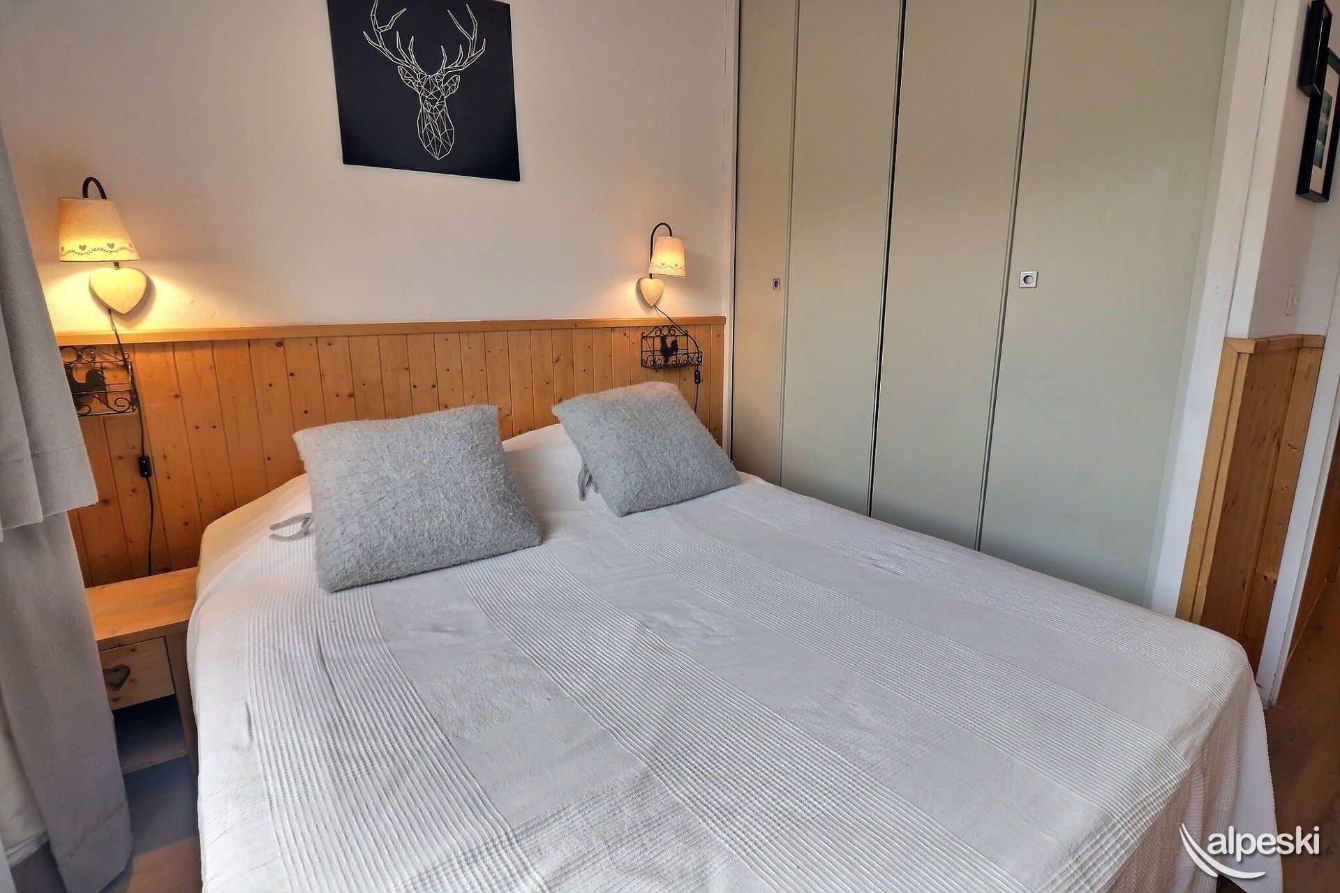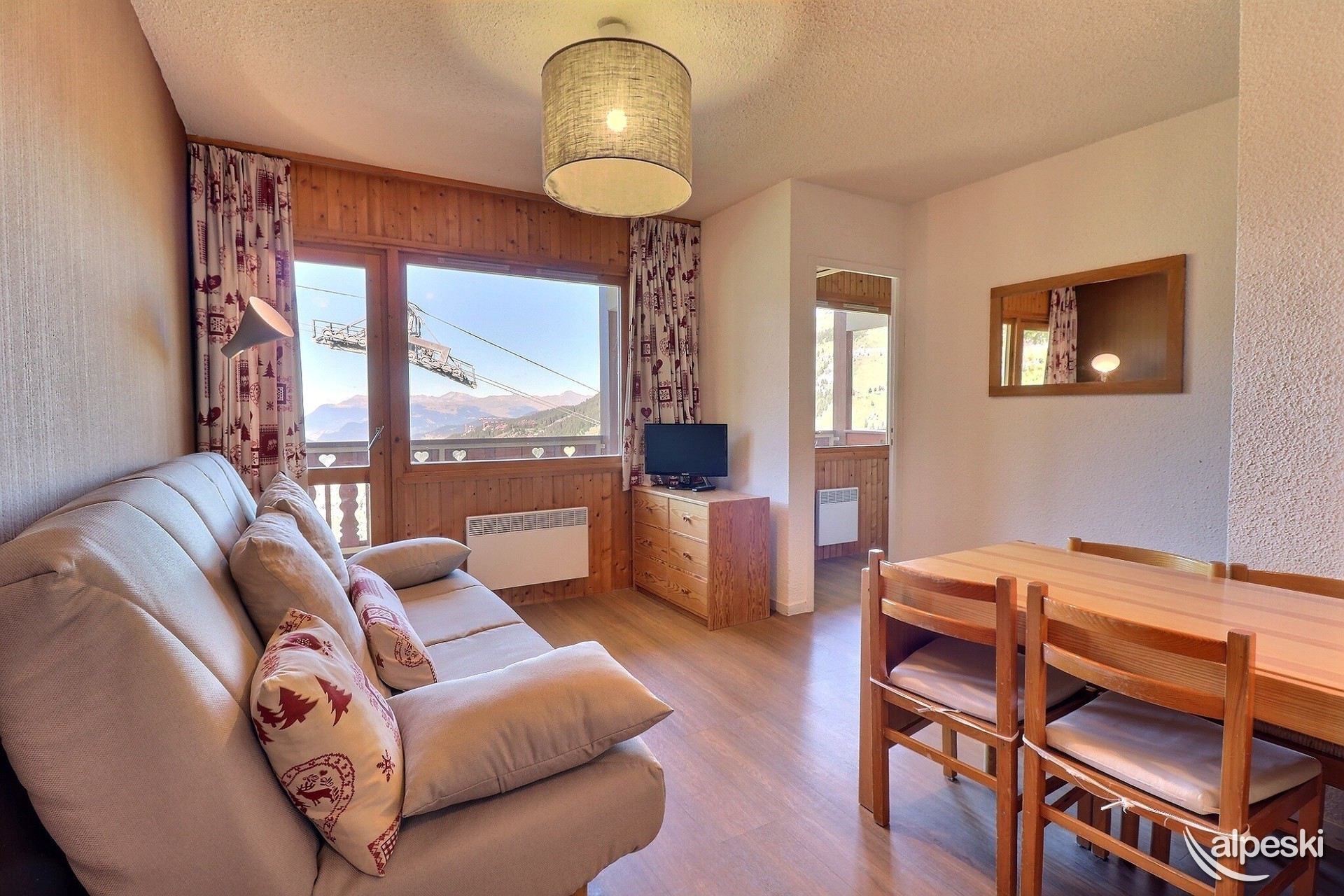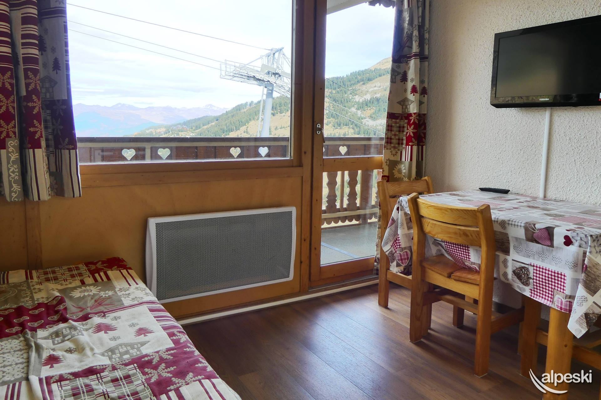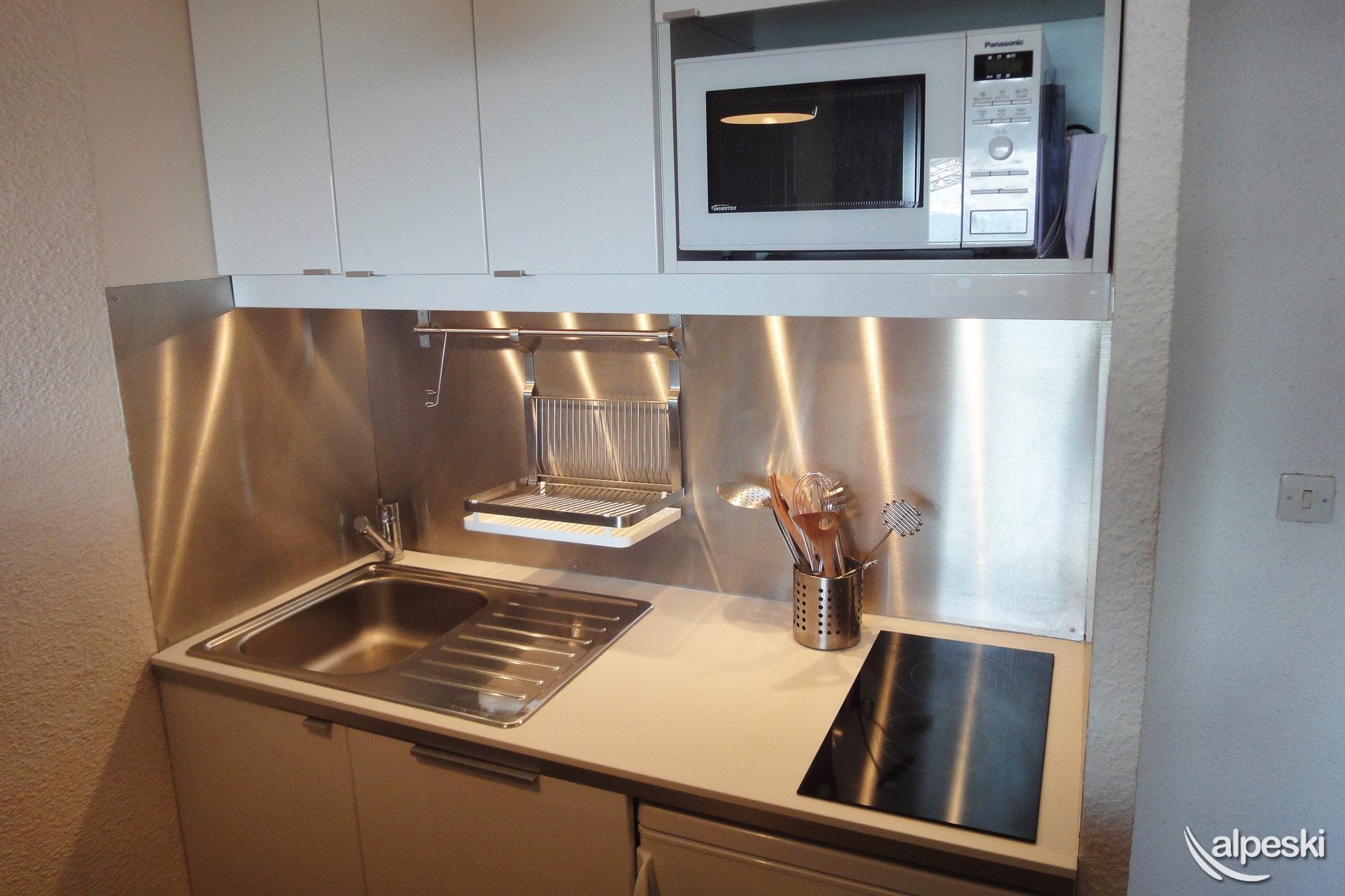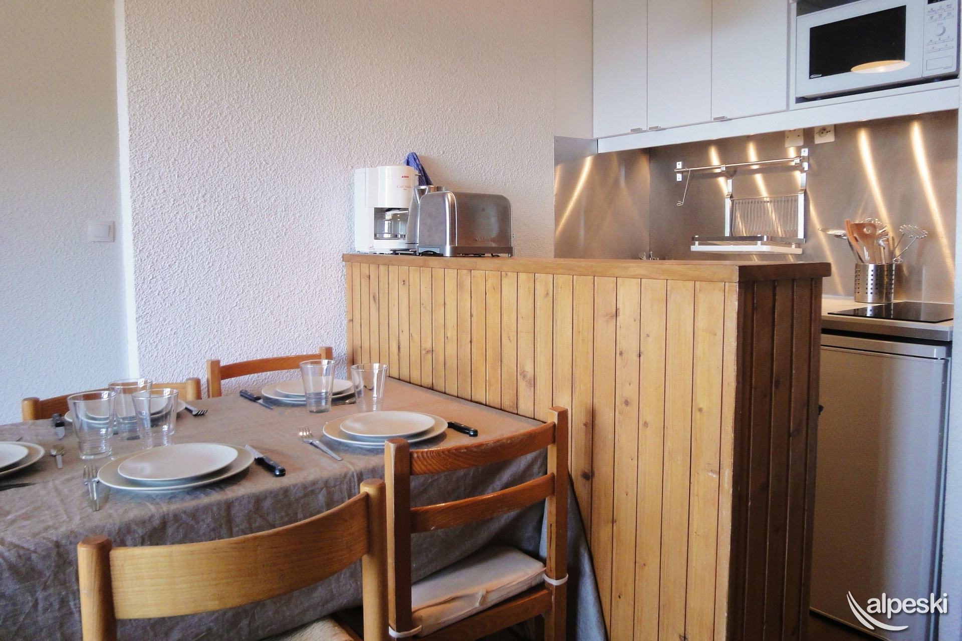 RESIDENCIA LA VANOISE N° 12 - Tipo C1 - Ascensor nivel 1 - Clasificación 1* para 4 personas 2 habitaciones, 4 personas, 29m², Balcón Norte, 3er piso Salón: 1 sofá (140x190) Dormitorio: literas (80x190 escalera sin fijar) y 1 cama plegable (80x190) Rincón de cocina: microondas/grill, frigorífico, 2 placas vitrocerámicas, lavavajillas, cafetera de filtro, tostadora, hervidor eléctrico Cuarto de ducha - WC separado TV de pantalla plana incluida APARTAMENTO PARA NO FUMADORES - ANIMALES PROHIBIDOS