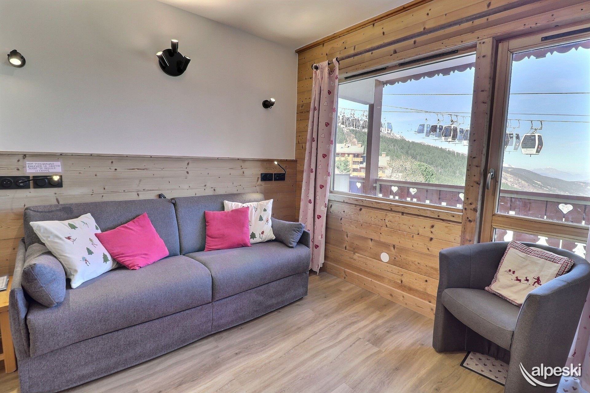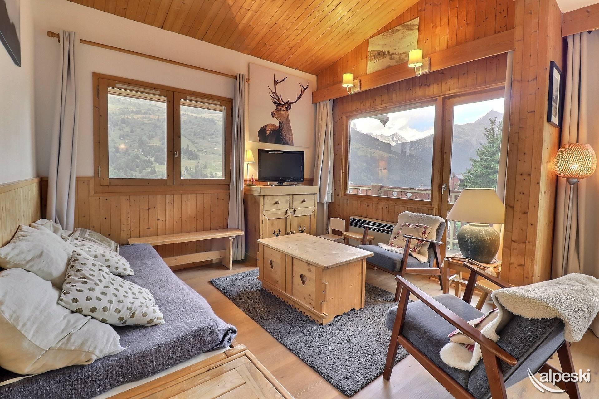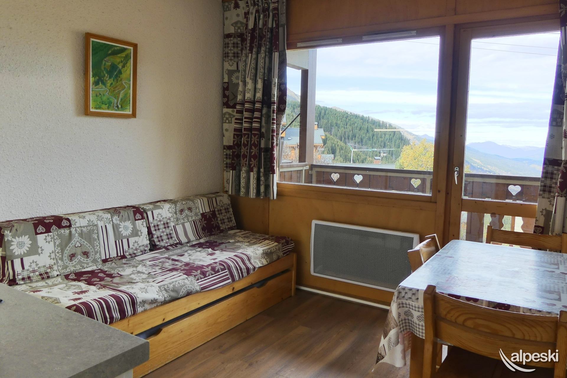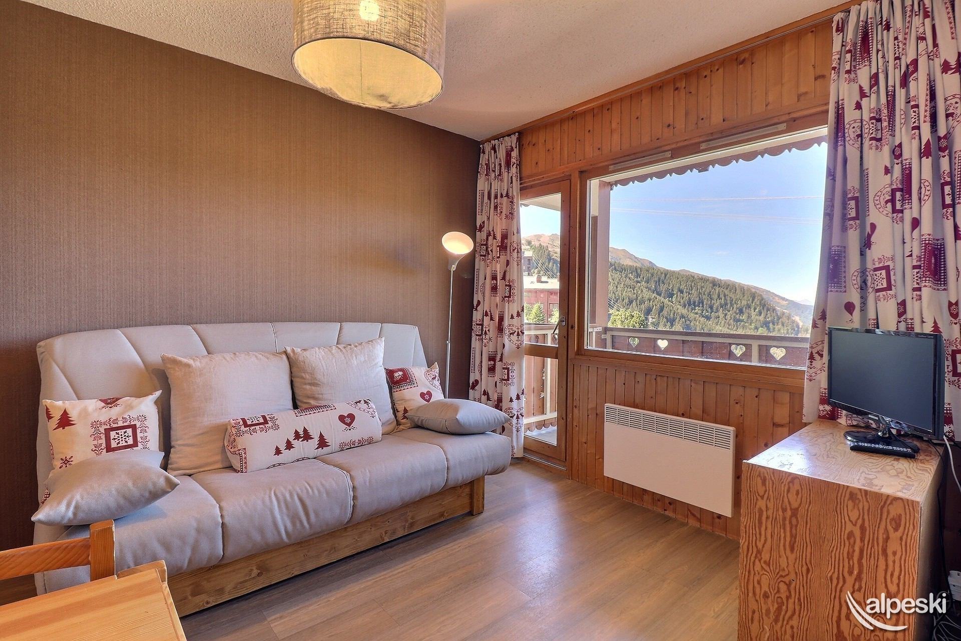 RESIDENCIA LA VANOISE N° 11 - Tipo C1 - Ascensor 1 - Clasificación 2* para 4 personas - 2 habitaciones, 4 personas, 29 m², balcón norte, 3.ª planta. Salón: 1 sofá cama para 2 personas (160x190). Dormitorio: 2 camas individuales (80x190). Luces de lectura con tomas USB. Cocina americana: horno, nevera, 2 placas eléctricas, lavavajillas, campana extractora, cafetera de filtro, cafetera Nespresso, tostadora, hervidor eléctrico. Baño con ducha. TV de pantalla plana incluida. NO SE ADMITEN MASCOTAS. NO FUMAR.
