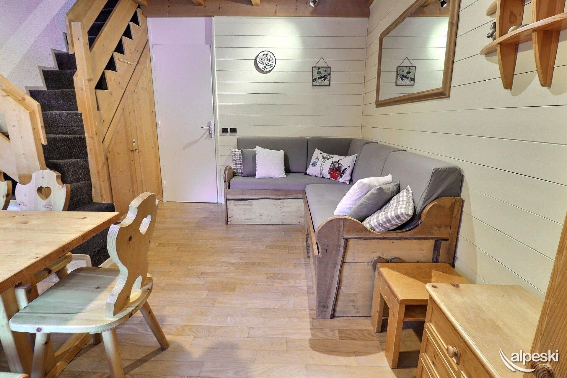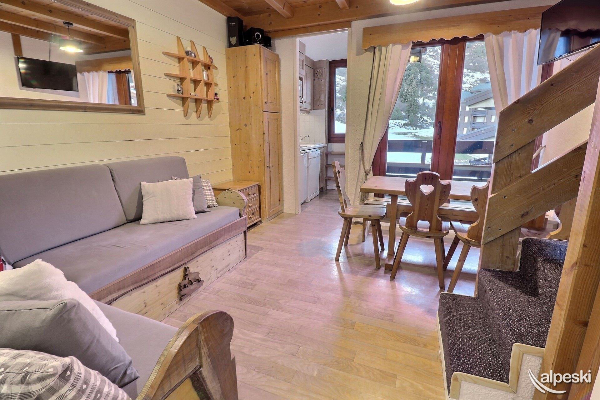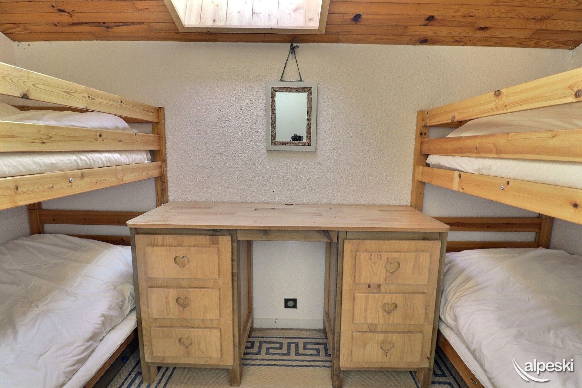 RESIDENCE LE CREUX DE L'OURS B22 - Tipo G2 Clasificación 2* para 6 personas 3 habitaciones Dúplex, 5/6 personas, 43m², Balcón Suroeste, 4ª Planta Salón: sofá y comedor Cocina abierta: horno/microondas/grill combinado, frigorífico, lavavajillas, 3 placas vitrocerámicas, cafetera de filtro, tostadora, hervidor Dormitorio: 2 camas individuales (80x190) Baño - WC independiente Planta Dormitorio (con claraboya): 2 juegos de literas (80x200 - 1 de 80x190) Entrepiso con claraboya fija: 1 cama doble (160x200), televisión 1 cuarto de ducha con WC TV de pantalla plana incluida en el salón y el entrepiso NO FUMAR - NO SE ADMITEN MASCOTAS Conexión Wi-Fi gratuita según la residencia - conexión no garantizada - velocidad limitada