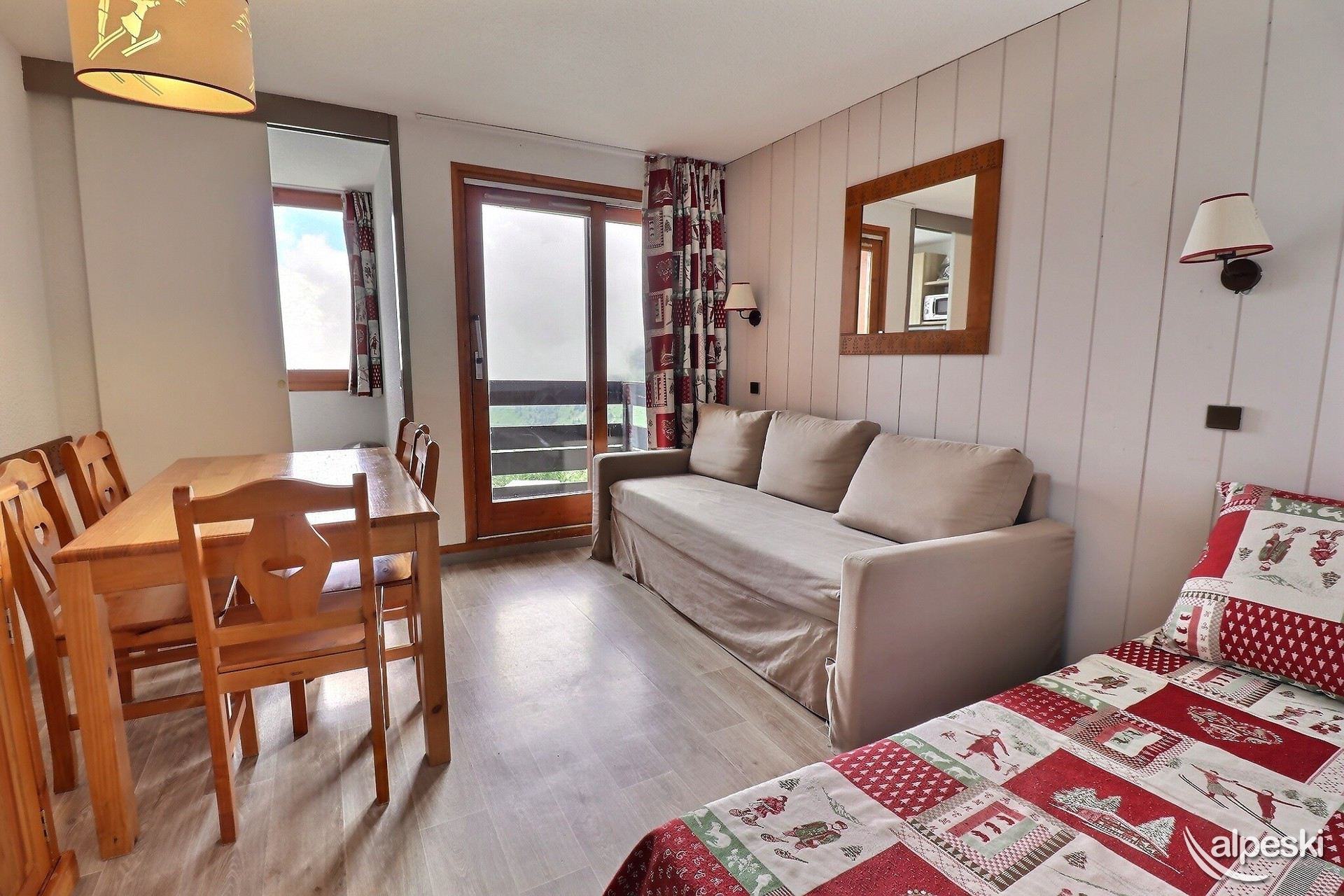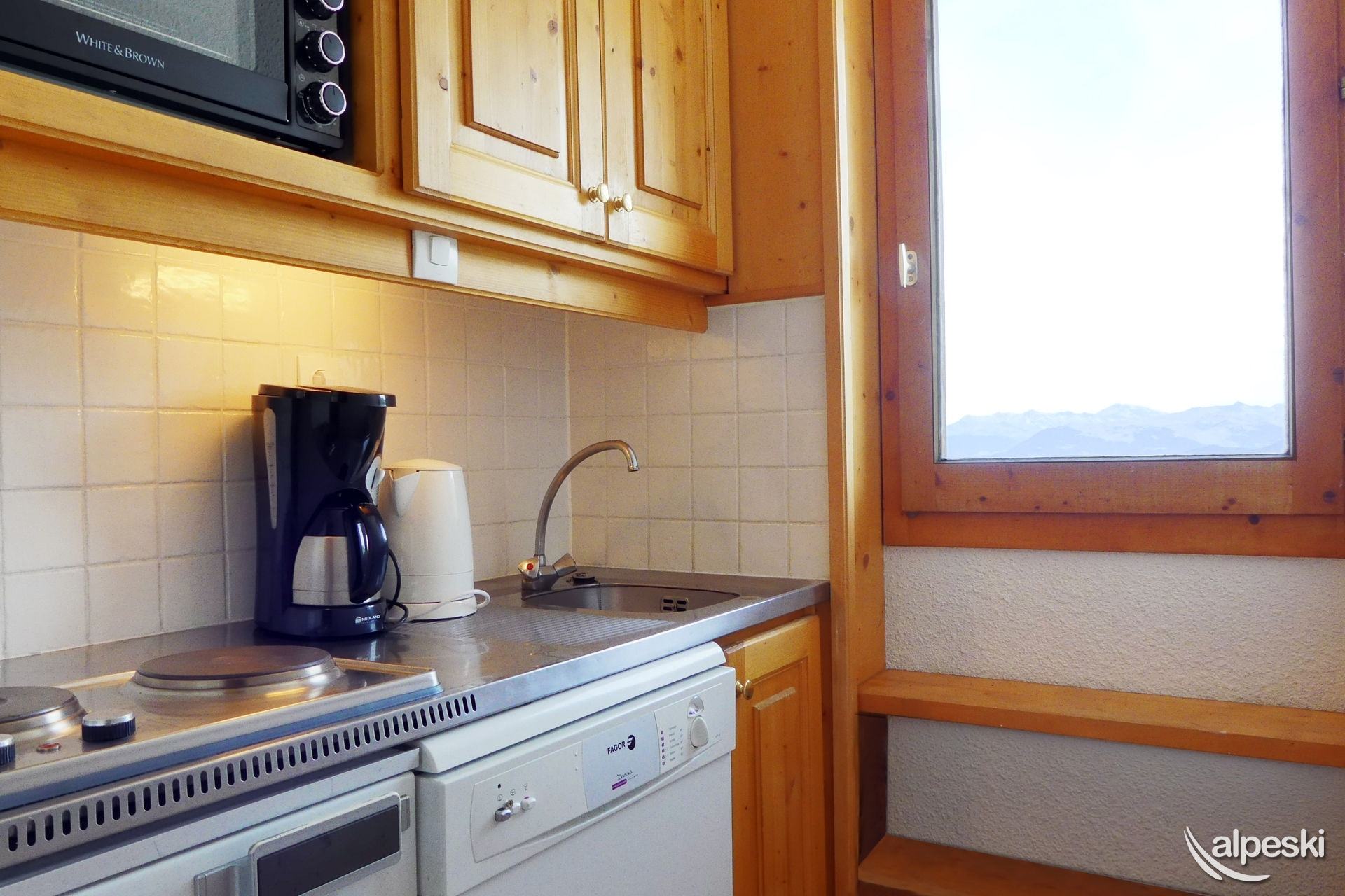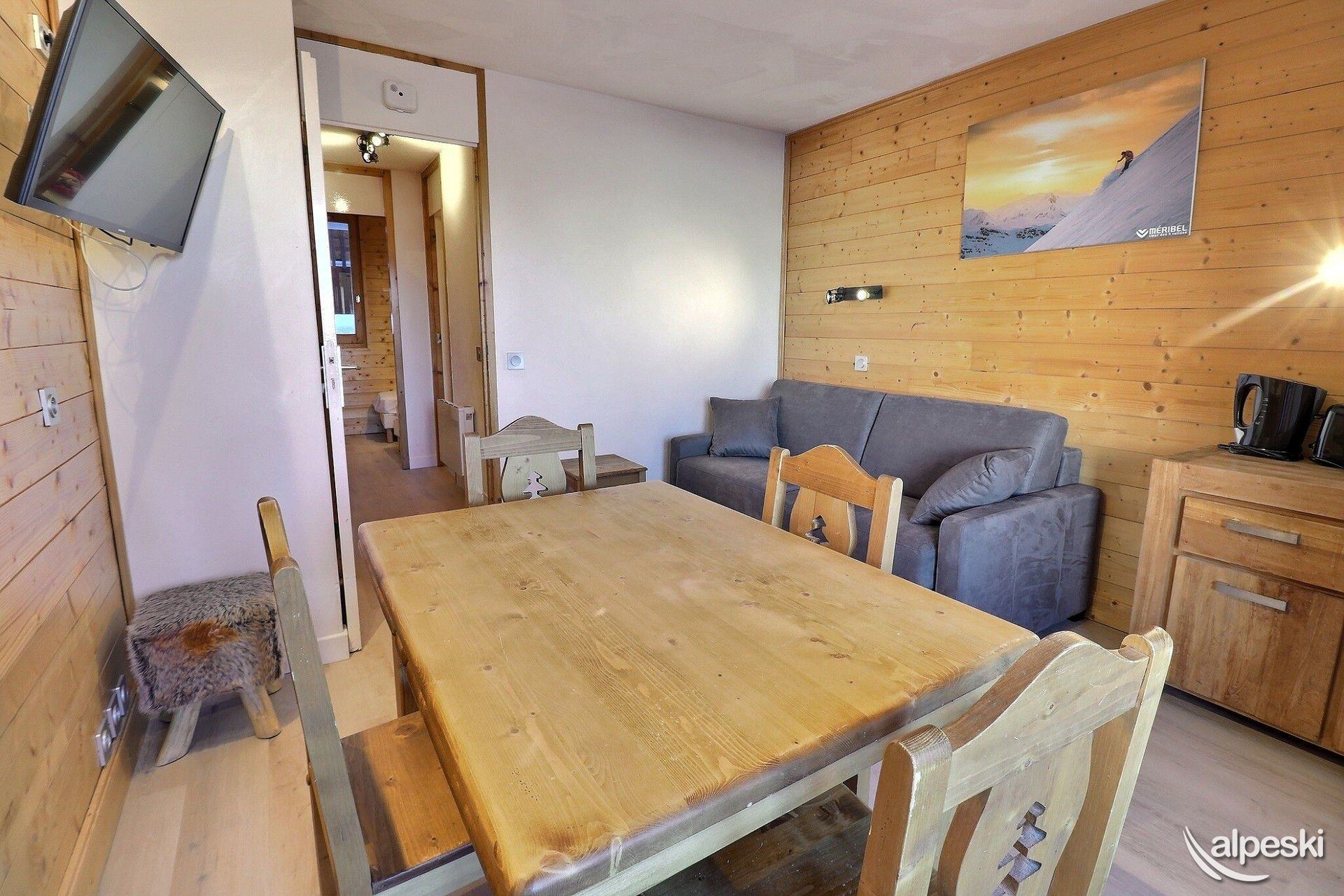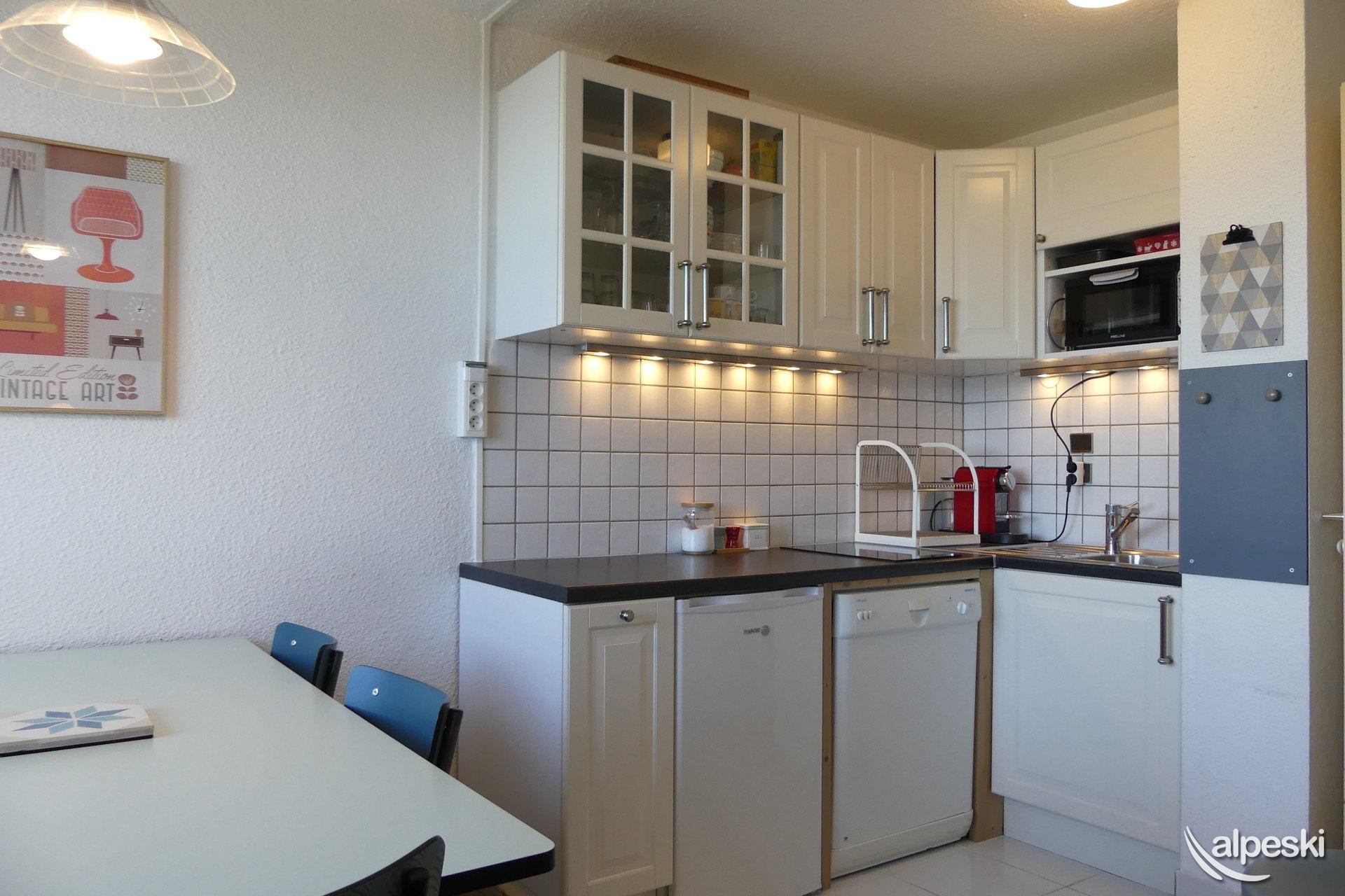 RESIDENCE CREUX DE L'OURS A30- TIPO D1 Clasificación 2* para 5 personas 2 habitaciones, 5 personas, 38m², Norte, Primer piso Útil: pasillo privado en la entrada del apartamento donde puede guardar sus esquís y zapatos Dormitorio: 1 cama individual en el entrepiso (90x190) y 1 cama doble (140x190) Sala de estar: 2 camas individuales (90x190) Cocina abierta: horno pequeño, microondas, refrigerador, lavavajillas, 2 placas de vitrocerámica, 1 cafetera Nespresso, cafetera de filtro, tostadora Moulinex, hervidor eléctrico Moulinex Baño - WC separado TV de pantalla plana incluida 1 silla de bebé y 1 cuna - juegos para niños Conexión Wi-Fi gratuita según la empresa administradora del edificio - conexión no garantizada NO FUMAR - MASCOTAS PROHIBIDAS