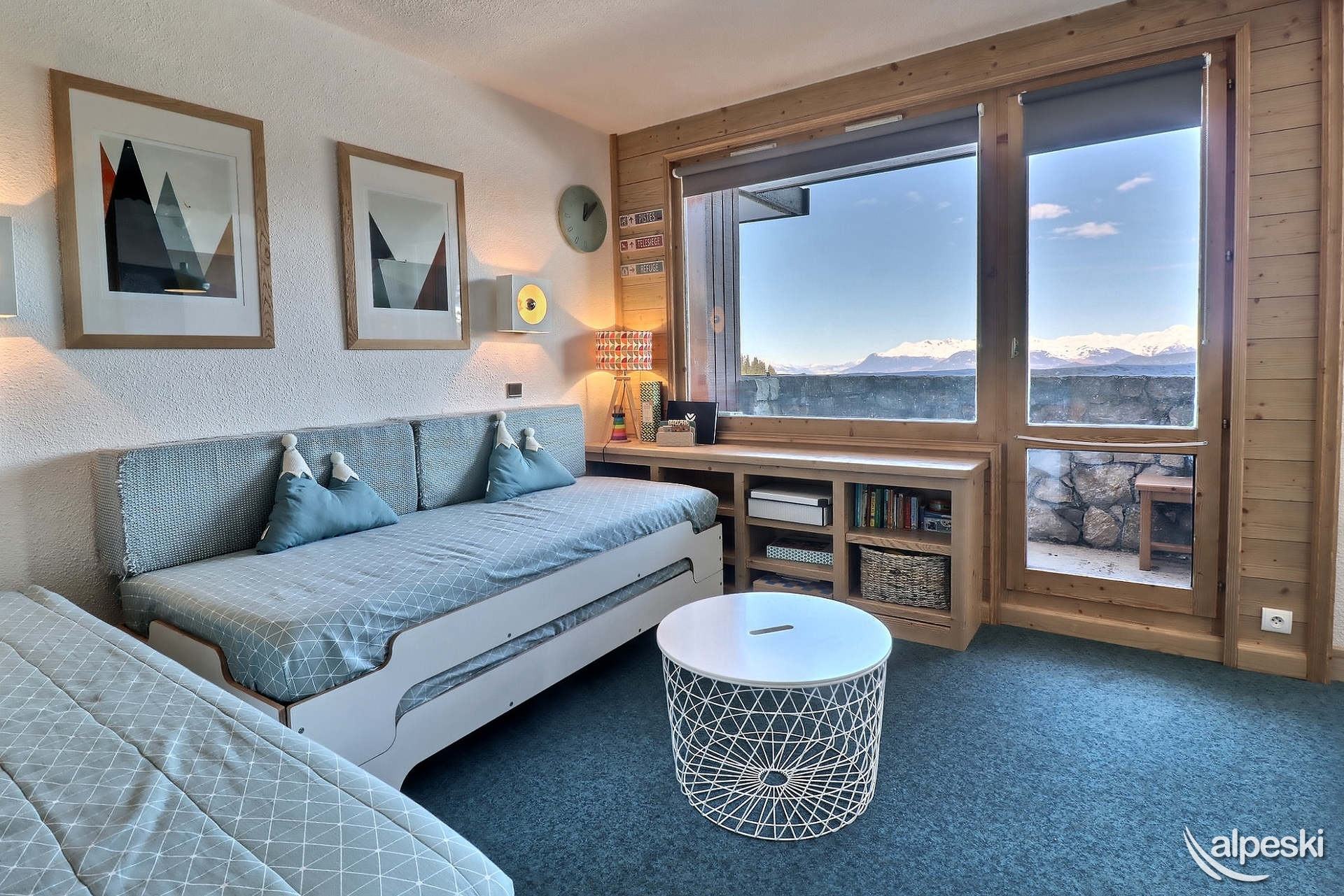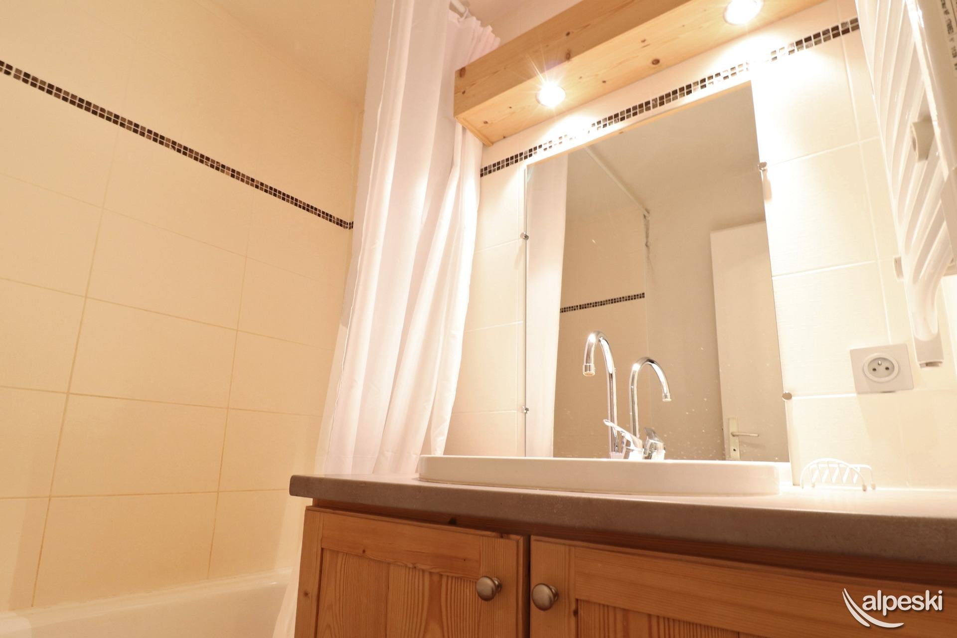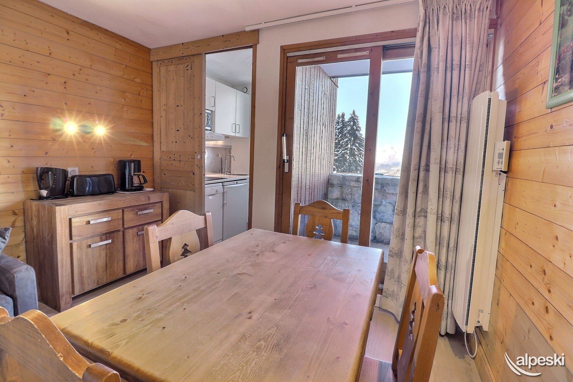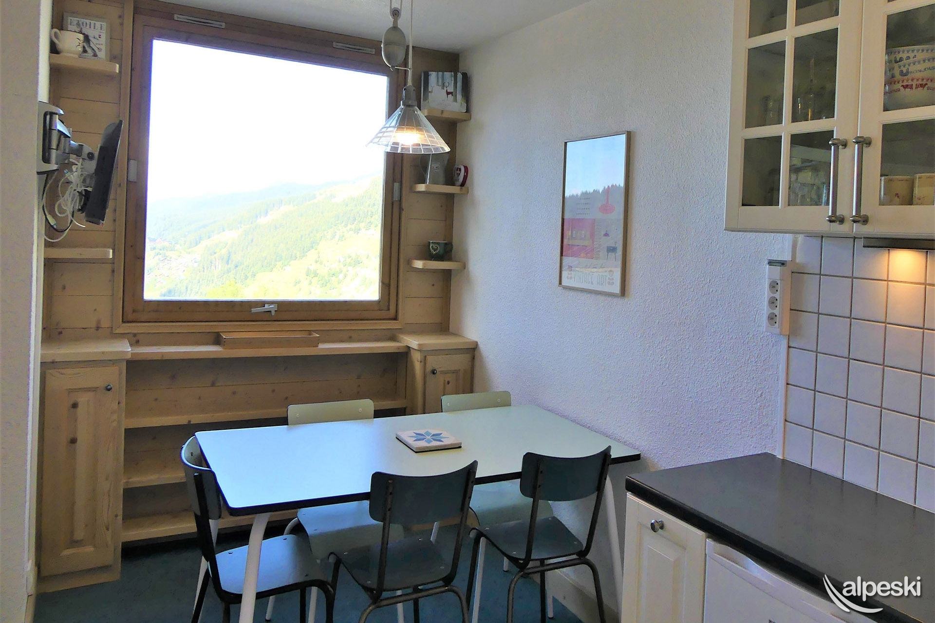 RESIDENCE CREUX DE L'OURS A30- TIPO D1 Clasificación 2* para 5 personas 2 habitaciones, 5 personas, 38m², Norte, Primer piso Útil: pasillo privado en la entrada del apartamento donde puede guardar sus esquís y zapatos Dormitorio: 1 cama individual en el entrepiso (90x190) y 1 cama doble (140x190) Sala de estar: 2 camas individuales (90x190) Cocina abierta: horno pequeño, microondas, refrigerador, lavavajillas, 2 placas de vitrocerámica, 1 cafetera Nespresso, cafetera de filtro, tostadora Moulinex, hervidor eléctrico Moulinex Baño - WC separado TV de pantalla plana incluida 1 silla de bebé y 1 cuna - juegos para niños Conexión Wi-Fi gratuita según la empresa administradora del edificio - conexión no garantizada NO FUMAR - MASCOTAS PROHIBIDAS