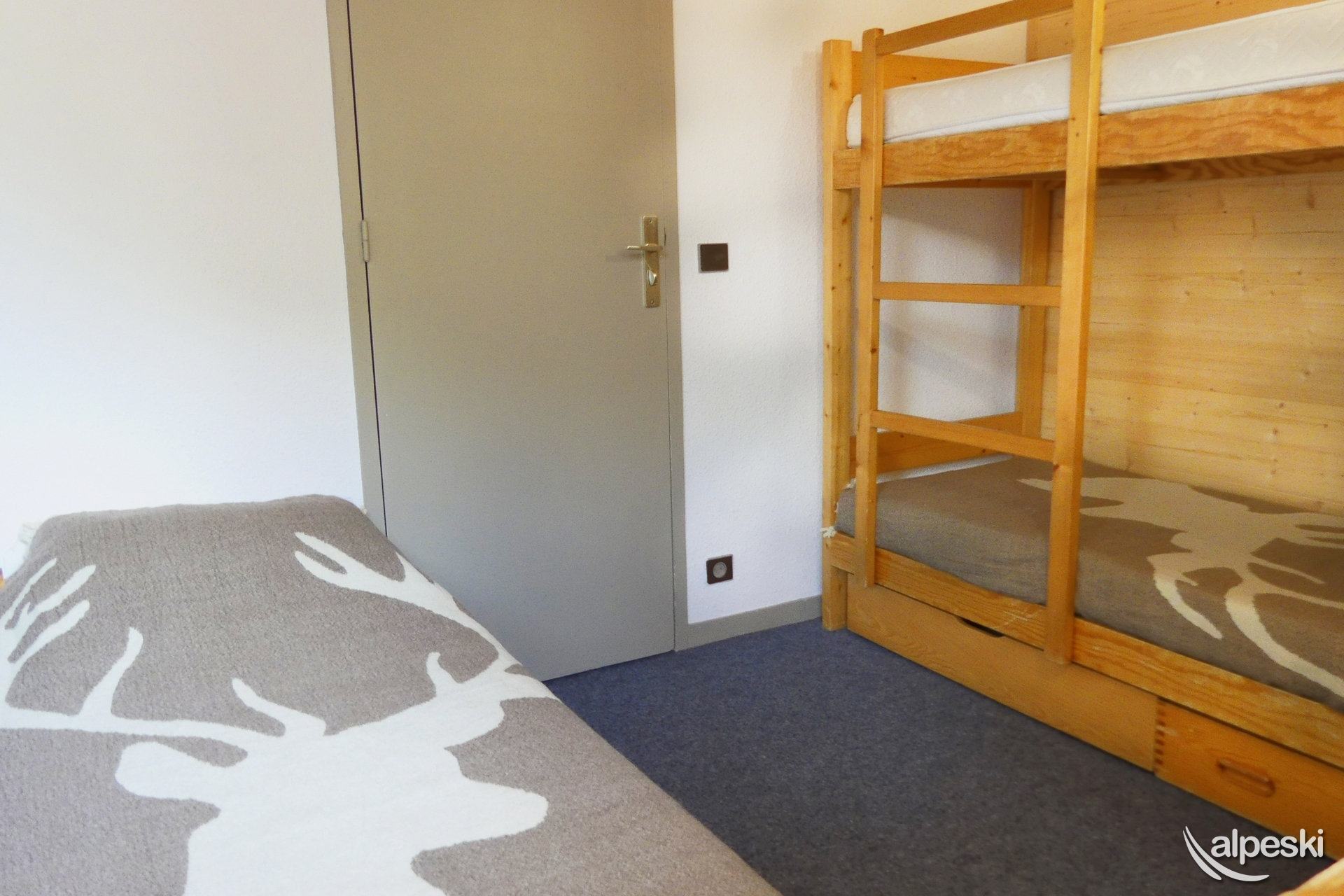RESIDENCE CREUX DE L'OURS A49 - TIPO F1 Clasificación 2* para 6 personas 3 habitaciones Dúplex, 5/6 personas, 41m², Norte, 4ª planta Salón: asiento de esquina convertible en cama doble (140x190) Dormitorio: 2 camas individuales (80x190) Rincón de cocina: horno, frigorífico, lavavajillas, 2 placas eléctricas, cafetera Dolce Gusto, cafetera de filtro con termo, tostadora, hervidor eléctrico Cuarto de baño - Aseos separados Planta superior: Entresuelo: 2 camas individuales (80x190) Dormitorio: literas (80x190) y 1 cama individual (80x190) Cuarto de ducha con WC TV de pantalla plana incluida NO FUMAR - MASCOTAS PROHIBIDAS Conexión Wi-Fi gratuita según la empresa administradora del edificio - conexión no garantizada