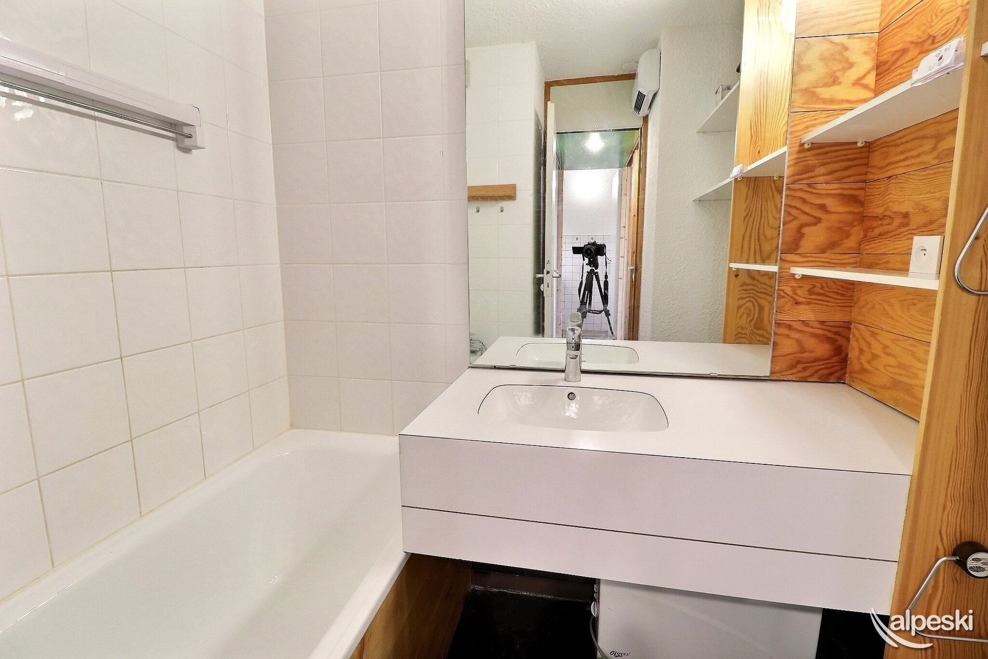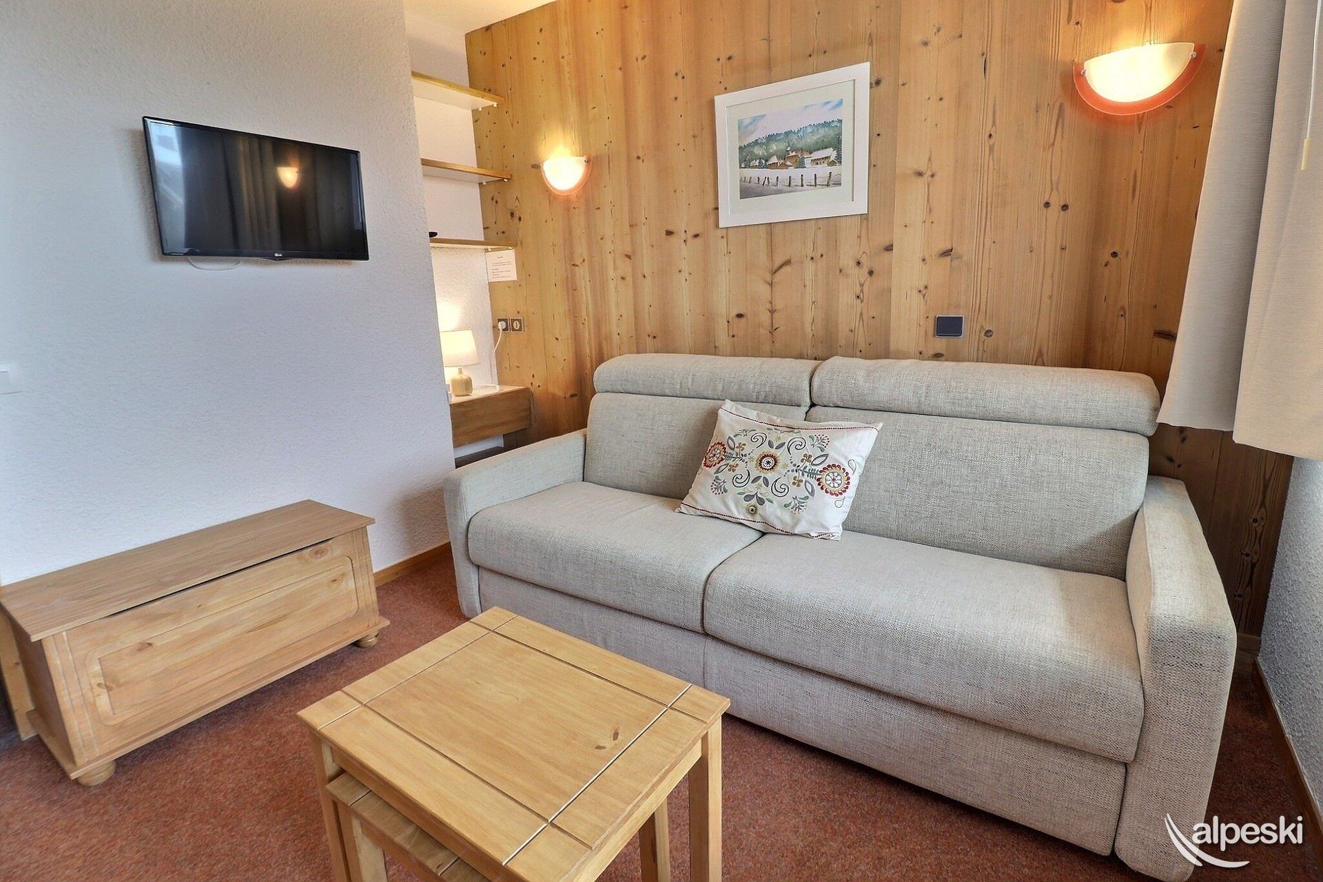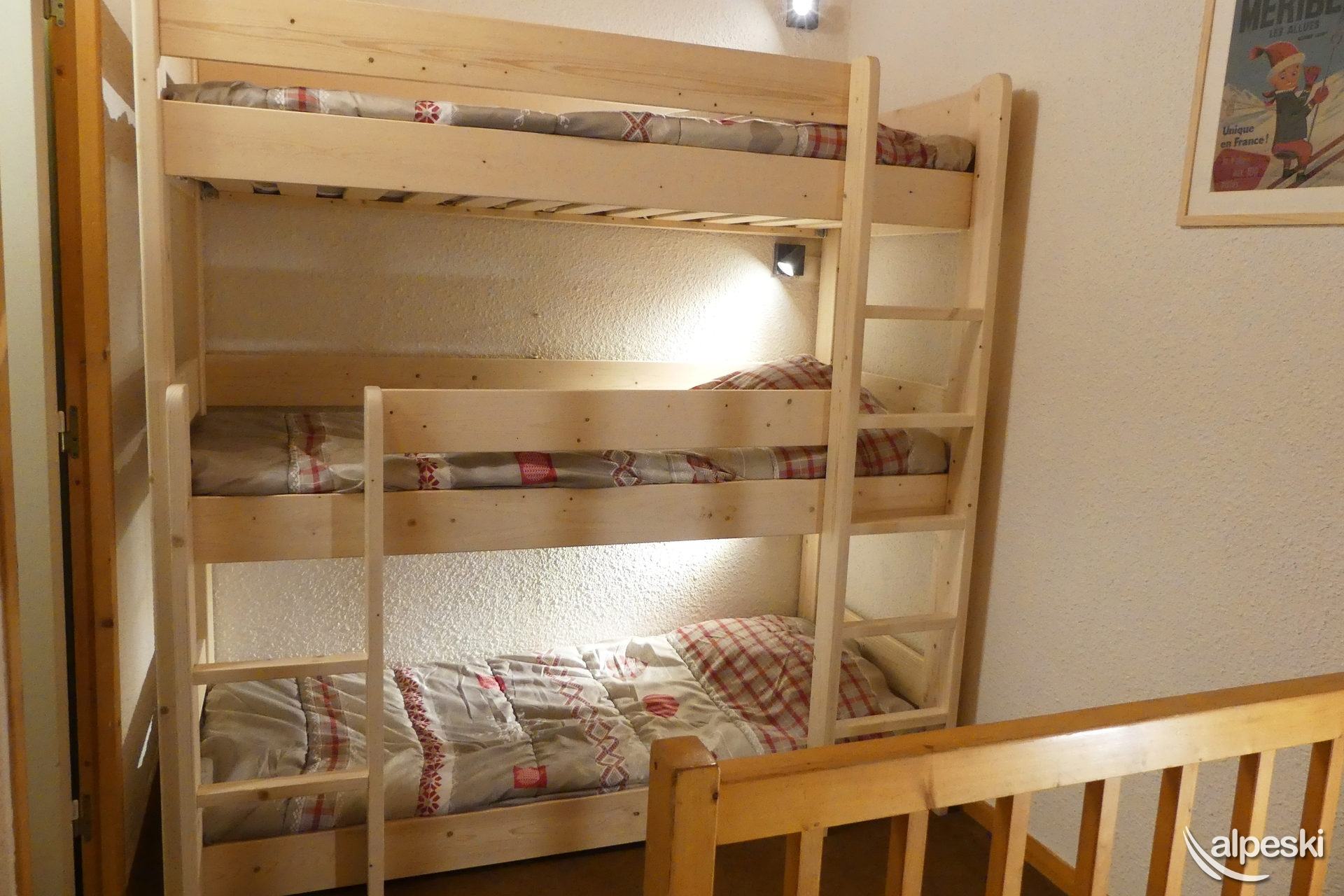 RESIDENCIA LE CANDIDE N°18 - Tipo E1 1* clasificación para 8 personas Dúplex de 3 habitaciones, 7/8 personas, 43m², Norte, 3er piso, nivel B Sala de estar: 2 bancos-cama individuales (80x190) Comedor separado de la sala de estar por una partición corredera Rincón de cocina: horno con microondas, refrigerador, lavavajillas, 2 placas eléctricas, cafetera de filtro, tostadora Bosh, hervidor eléctrico Bosh Baño - Aseos separados Piso Entresuelo abierto: 3 literas (80x190) Dormitorio-cabina bajo techo: 1 cama doble (140x190) Dormitorio: 2 camas individuales (85x190) Cuarto de ducha con WC TV de pantalla plana incluida NO FUMAR - SE ADMITEN MASCOTAS DISEÑO DE INTERIORES MEDIO