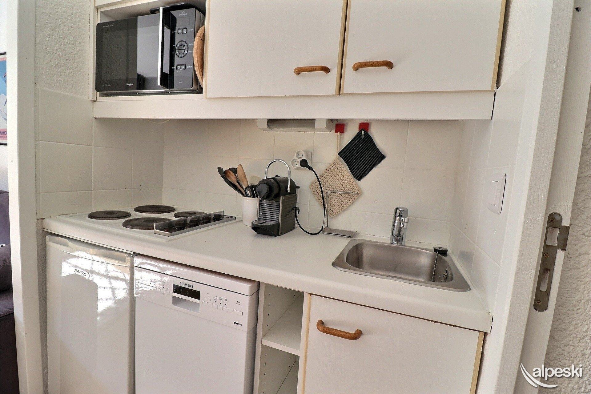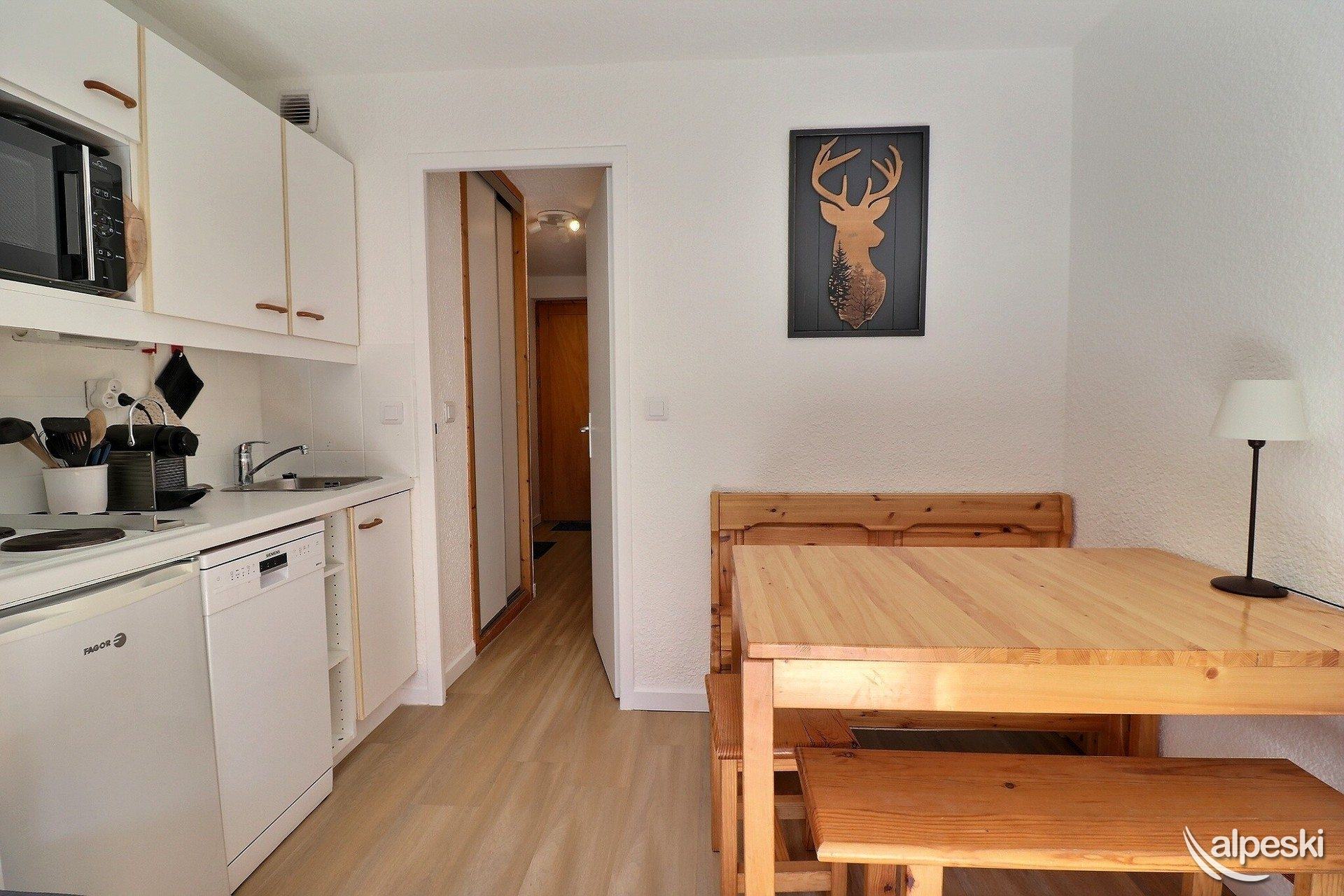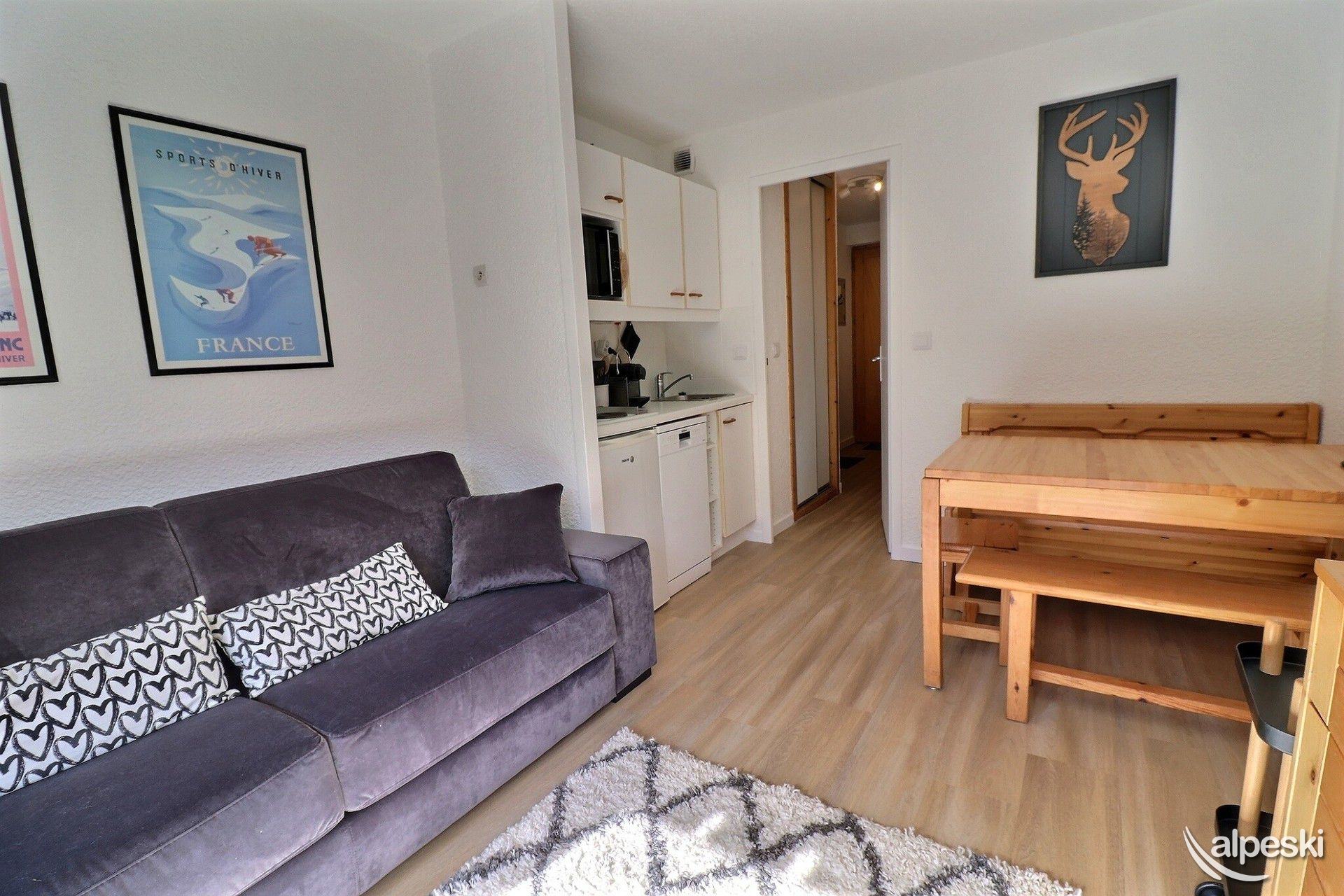 RESIDENCIA OLYMPIE IN°6 - TIPO C1 Clasificación 1* para 4 personas Estudio con rincón dormitorio 3/4 Personas, 22m², Balcón Oeste, 1er Piso Rincón dormitorio (con ventana): literas (80x190) Sala de estar: 1 sofá cama "rapido" (160x200) Cocina americana: 4 placas eléctricas, nevera, lavavajillas, microondas con grill, cafetera Nespresso, cafetera de filtro, tostadora, hervidor eléctrico Baño con WC TV de pantalla plana incluida - altavoz bluetooth NO FUMAR - NO SE ADMITEN MASCOTAS Excelentes vistas, acceso a un balcón amueblado con mesa y sillas