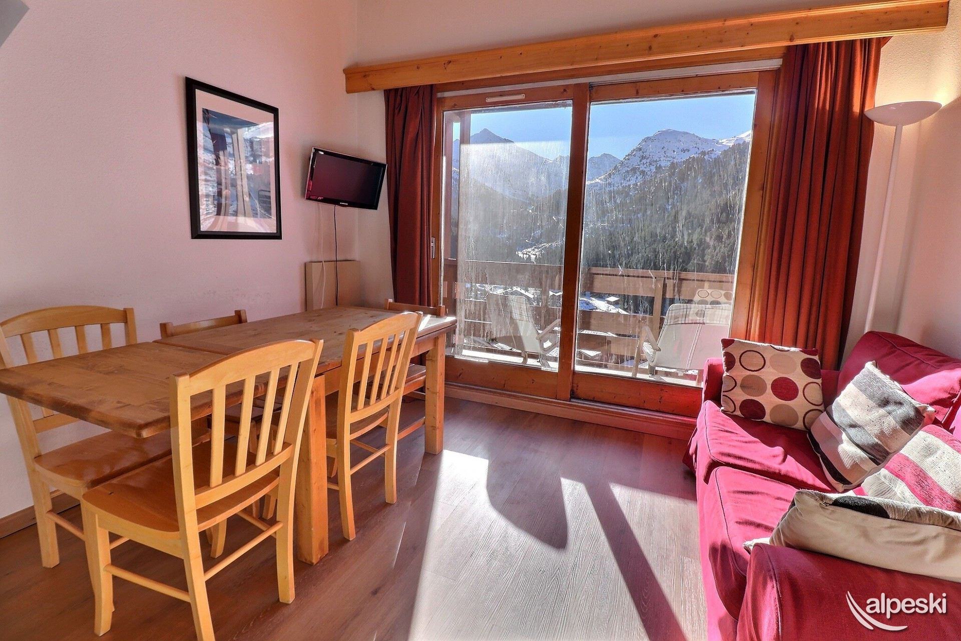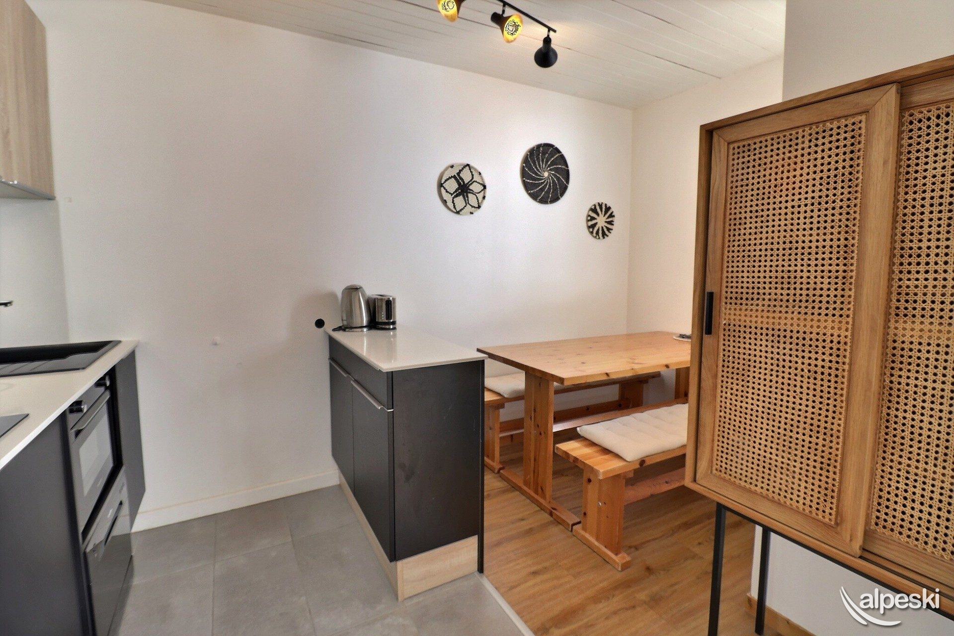 RESIDENCIA PLATTIERES N.° 31 - TIPO D2 Renovación total invierno 2025 2026 Clasificación en curso 2 habitaciones con camarote, 4 personas, 35 m², balcón sur, 2.ª planta. Salón: 1 sofá (sin sillones) y zona de comedor. Dormitorio: 1 cama doble (140x190). Camarote (con ventana): literas (80x190). Cocina: horno/microondas/grill, lavavajillas, 4 placas eléctricas, frigorífico, campana extractora, cafetera de filtro, tostadora, hervidor eléctrico. Baño: WC independiente. Wi-Fi gratuito disponible en la residencia. La calidad y velocidad de la conexión no están garantizadas. Incluye TV de pantalla plana. Magníficas vistas al Mont Vallon y acceso a un balcón con mesa y sillas. NO FUMADORES - SE ADMITEN MASCOTAS.