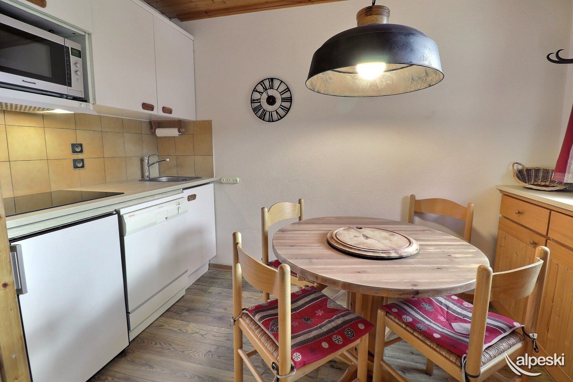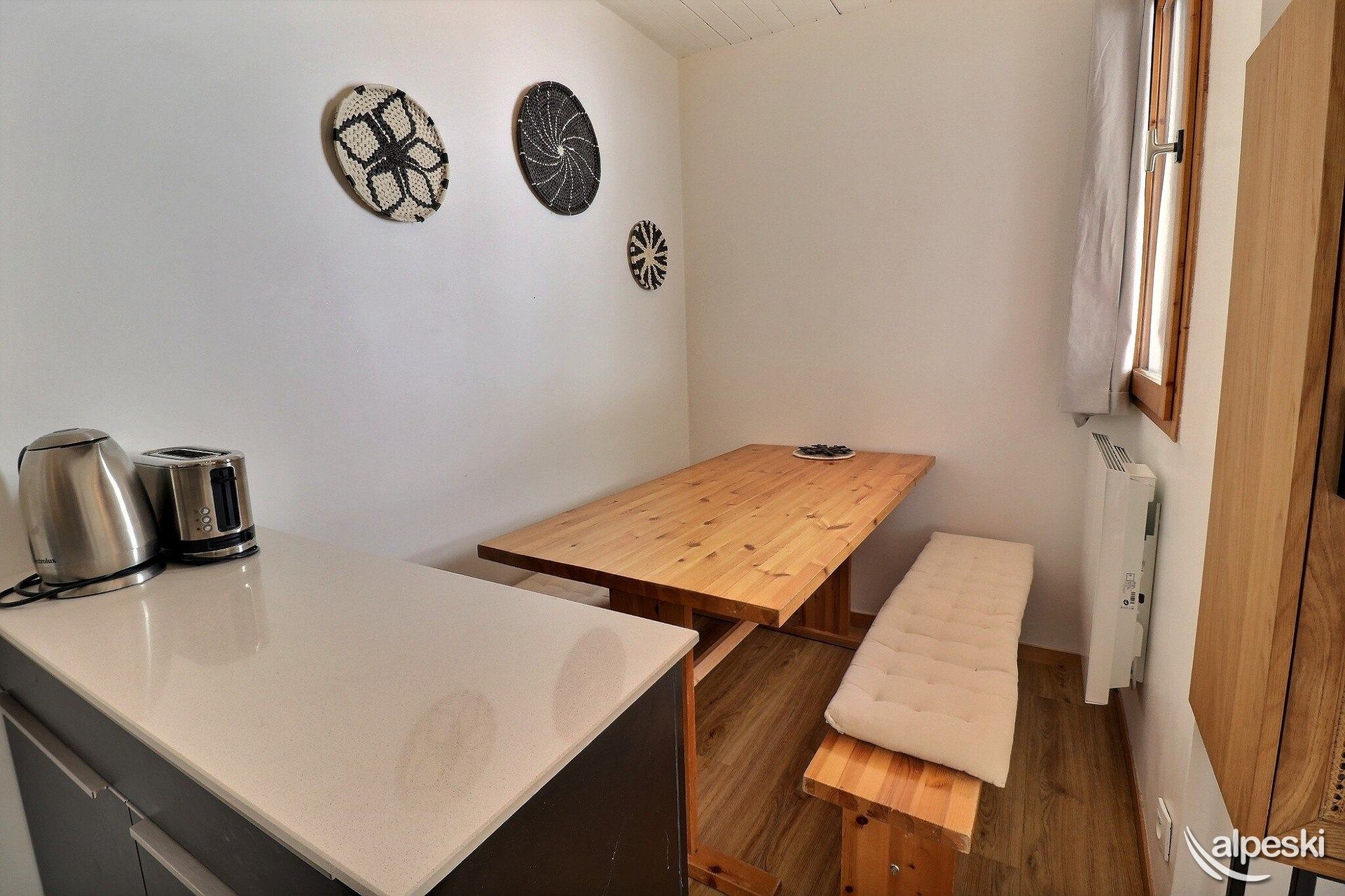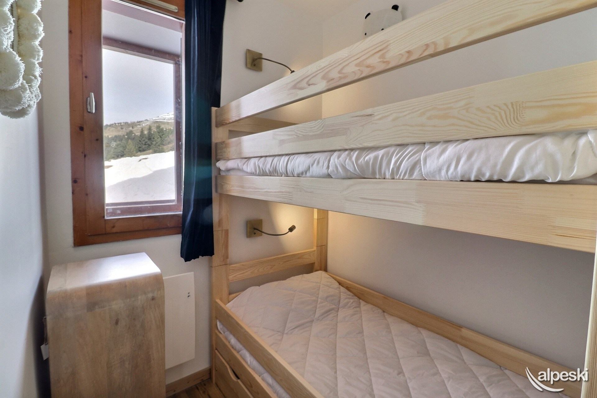 RESIDENCIA PLATTIERES N.° 5 - TIPO D1 2* para 4 personas. 2 habitaciones con camarote, 4 personas, 35 m², balcón sur, 2.ª planta. Salón: comedor y zona de estar. Dormitorio: 1 cama doble (160 x 190). Camarote (con ventana): 1 cama individual y 1 sofá cama con escalera fija (80 x 190; peso máximo de la cama superior: 70 kg). Cocina: horno, microondas y grill, lavavajillas, 3 placas vitrocerámicas, frigorífico, Nespresso, campana extractora, tostadora, hervidor eléctrico. Baño: WC independiente. TV de pantalla plana incluida. Magníficas vistas al Mont Vallon y acceso a un balcón con mesa y sillas. Wi-Fi gratuito en la residencia. No se garantiza la calidad ni la velocidad de la conexión. NO FUMAR. NO SE ADMITEN MASCOTAS durante la estancia, pero las mascotas se alojan con los propietarios. Posibilidad de alquilar una plaza de aparcamiento cubierta adicional frente a la residencia.