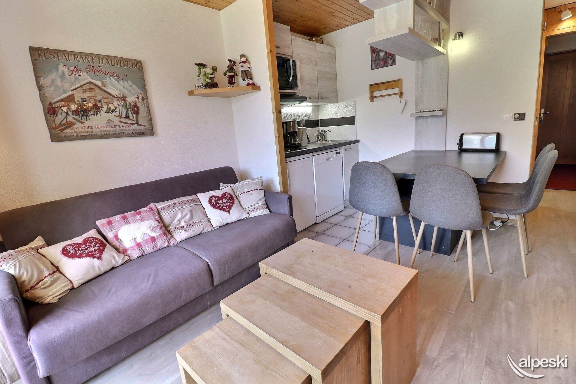 RESIDENCIA PLATTIERES N°32 - TIPO C2 Clasificación 2* para 4 personas 2 habitaciones, 4 personas, 25m², Balcón sur, 2do piso Sala de estar: 1 sofá cama doble (140x190) Cabina dormitorio: 1 cama doble (140x190) con TV de pantalla plana Cocina: horno/microondas/grill combinado, lavavajillas, 2 placas de inducción calientes, refrigerador, campana extractora, cafetera de filtro, tostadora, hervidor eléctrico Baño - WC separado TV de pantalla plana incluida en la sala de estar y la cabina Conexión Wi-Fi gratuita según la empresa administradora del edificio - conexión no garantizada Excelente vista a la montaña MONT VALLON, acceso a un balcón amueblado con mesa y sillas NO FUMAR - ANIMALES PROHIBIDOS