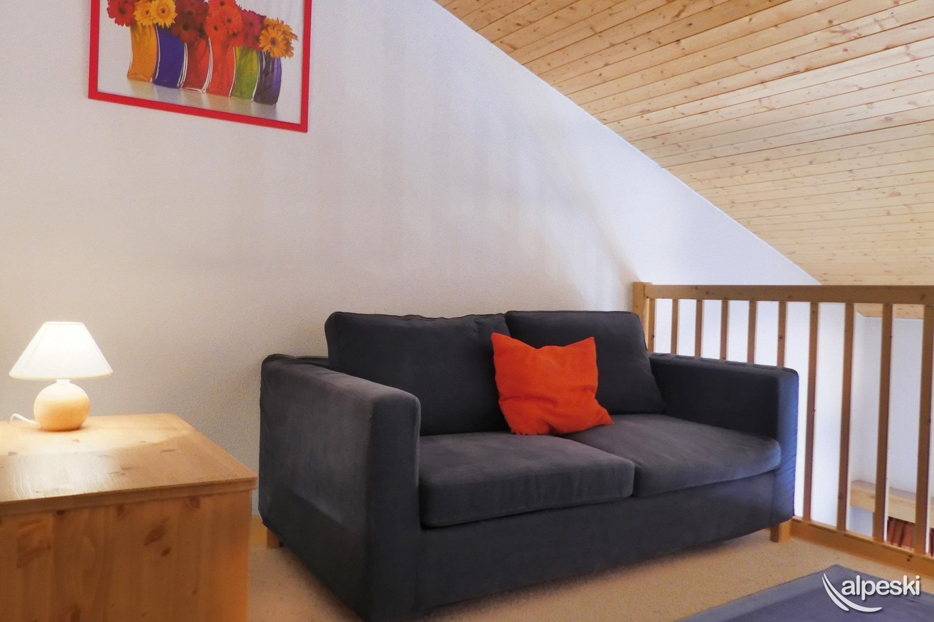 RESIDENCIA LES PLATTIERES N.° 16 - TIPO E1 - Clasificación 2* para 5 personas. 2 habitaciones con cabina y altillo (buhardilla), 5/6 personas, 36 m², balcón sur, 5.ª planta. NIVEL 1: Salón: sofá y sillones. Cocina americana: horno, frigorífico, lavavajillas, 4 placas vitrocerámicas, campana extractora, cafetera de filtro, tostadora, hervidor eléctrico. Cabina (con ventana): literas (90x190). Baño: WC independiente. NIVEL 2: Altillo abierto a la sala de estar: 1 sofá cama doble (130x190). Habitación abuhardillada (tragaluz fijo): 1 cama doble (140x190). Baño: Wi-Fi gratuito en la residencia. No se garantiza la calidad ni la velocidad de la conexión. Incluye TV de pantalla plana. NO FUMAR - NO SE ADMITEN MASCOTAS.