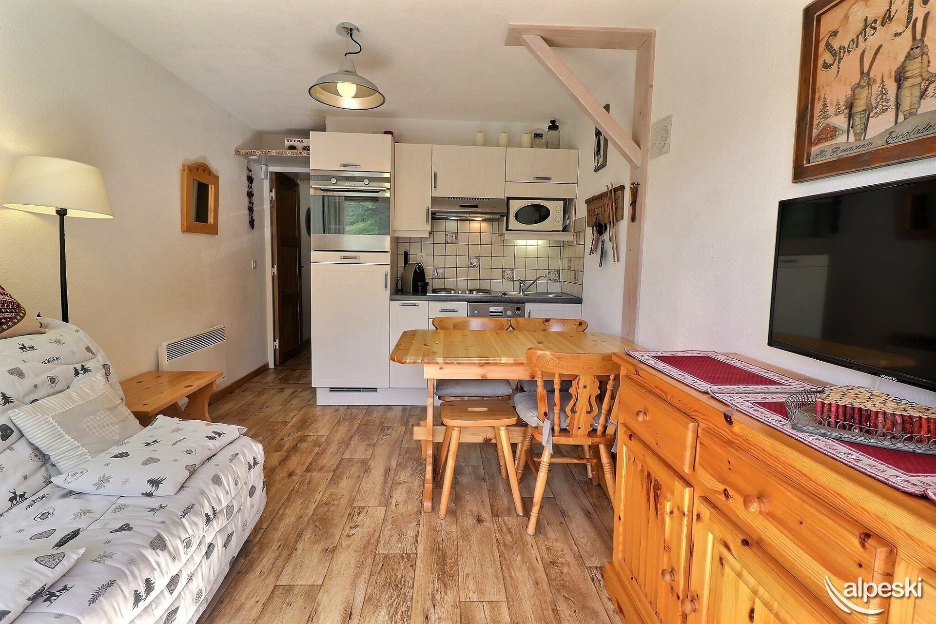 RESIDENCIA LE PRALIN N° 413 - Tipo D1 Clasificación 1* para 6 personas 2 habitaciones, 5/6 personas, 32 m², Balcón Sur, 1er piso, Sala de estar: 1 sofá cama (80x190) y 1 sofá cama (80x190) Rincón de cocina: horno, refrigerador, lavavajillas, 4 placas de vitrocerámica, cafetera de filtro, tostadora, hervidor eléctrico Dormitorio: 1 cama doble (140x190) Cabina (con ventana): literas (80x190) Baño - WC separado TV de pantalla plana incluida NO FUMAR - SE ADMITEN MASCOTAS