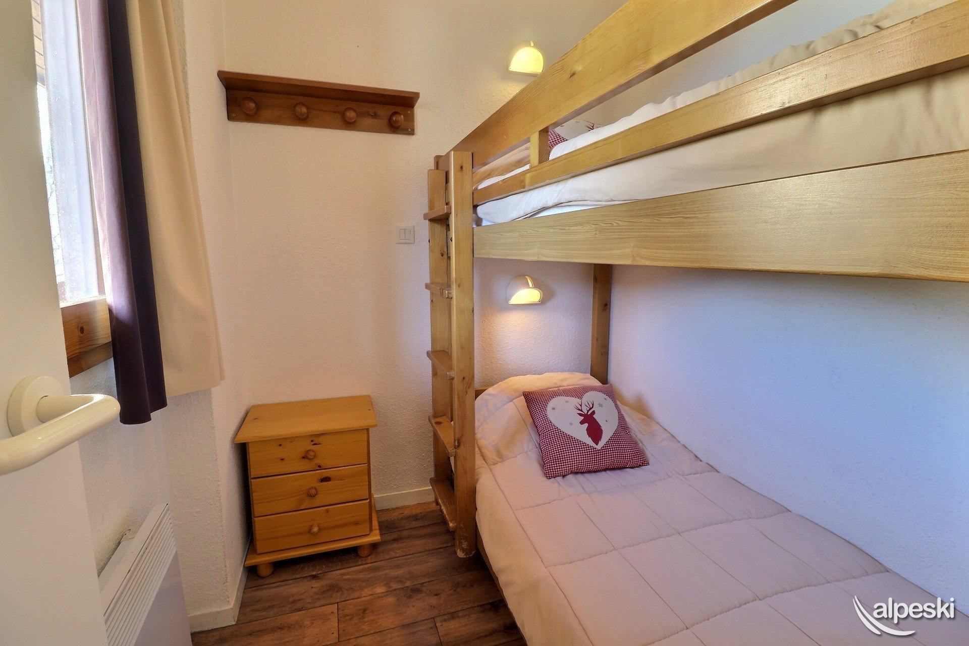 RESIDENCE LE PRALIN n°614 - Tipo E1 Clasificación 2* para 5 personas Duplex 2 habitaciones con camarote, 5/6 Personas, 30m², Balcón orientado al sur, 1er piso Sala de estar: 1 cama (80x190) y 1 cama nido Camarote con ventana: literas (801x190) Cocina: microondas con grill, frigorífico, lavavajillas, 4 placas de vitrocerámica, cafetera de filtro, tostadora, hervidor eléctrico Baño - WC independiente Planta alta (acceso por escalera empinada): Dormitorio (tragaluz fijo): 1 cama doble (140x190) Baño privado TV de pantalla plana incluida APARTAMENTO PARA NO FUMADORES - ANIMALES PROHIBIDOS RESIDENCIA SKI IN & SKI OUT