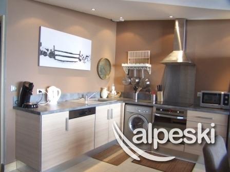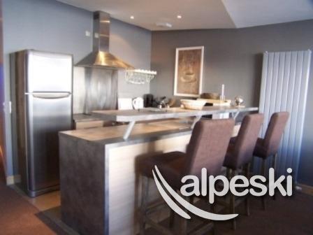 Cocina abierta a la sala de estar está totalmente equipada con 4 cocinas de inducción, horno, microondas, nevera / congelador, lavavajillas, lavadora / secadora, cafetera, tostadora.