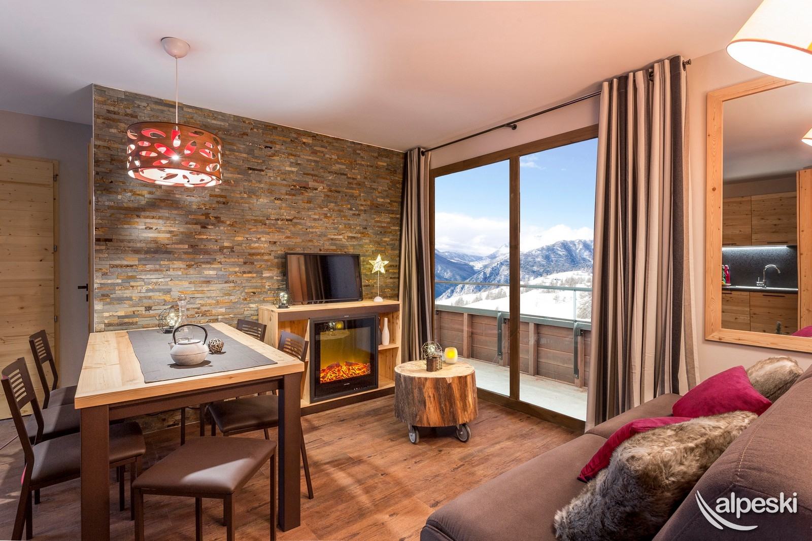 3 dormitorios, 6/8 pers. 4 57-58 Apartamento con sala de estar con chimenea decorativa y sofá cama (2
