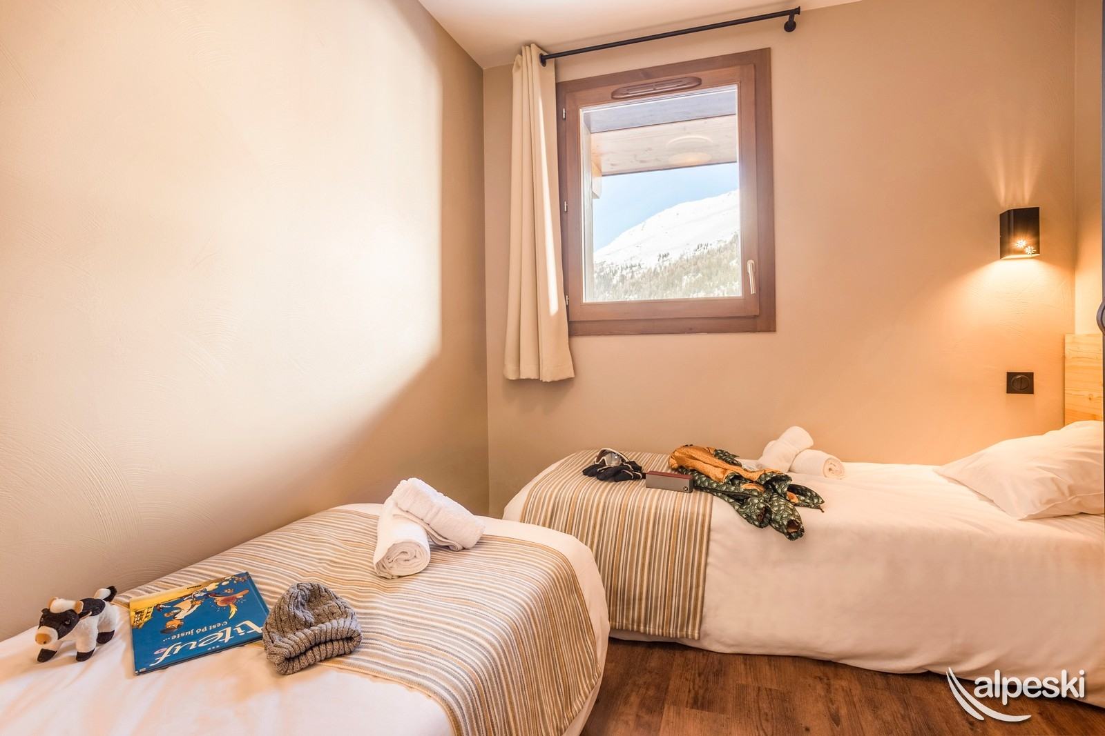 1 habitación con dos camas individuales que pueden ser gemelas, y otra