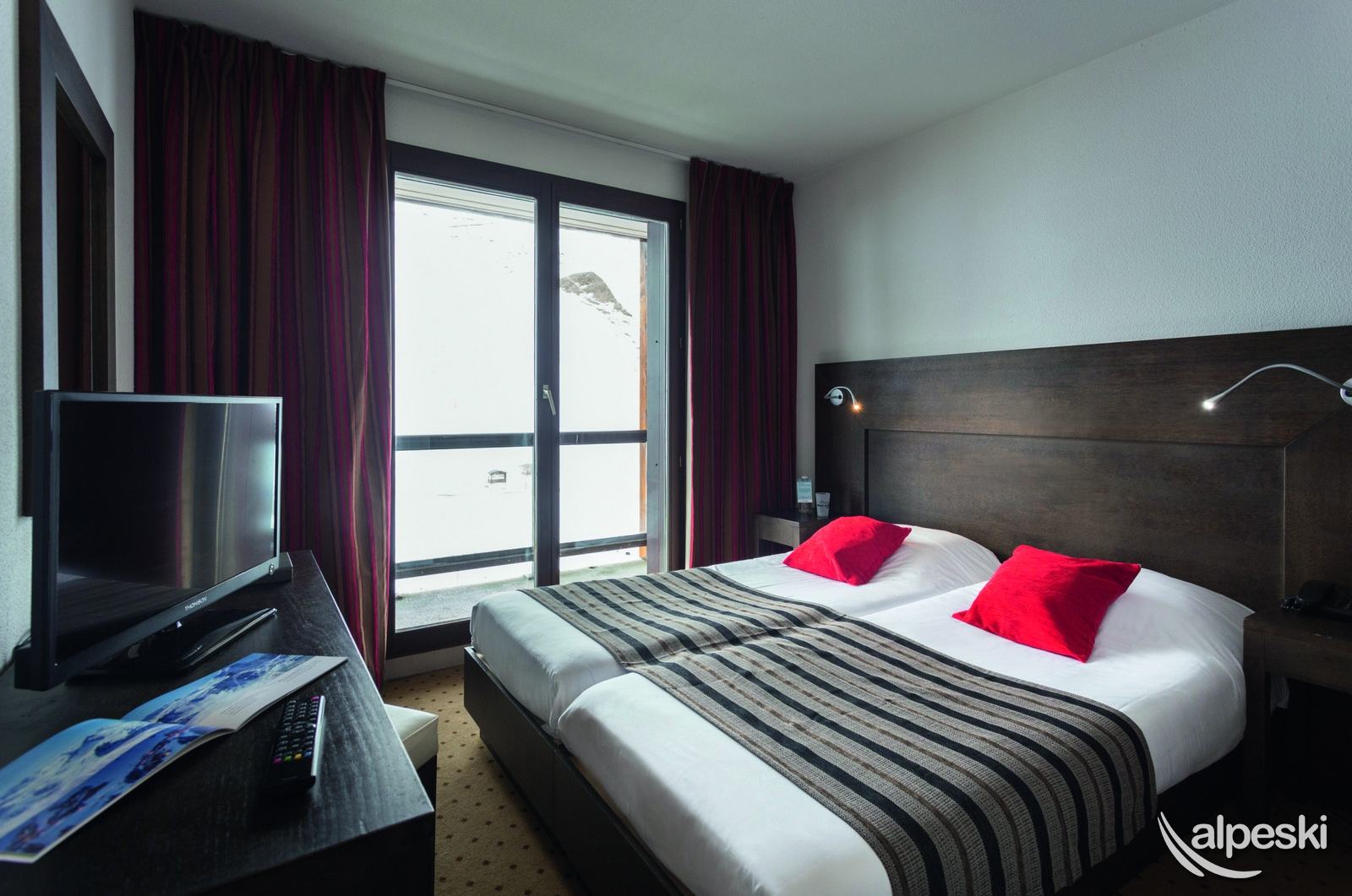 30 metros cuadrados. Con cama doble, calefacción, teléfono, televisión vía satélite y baño completo con WC separado. Con vistas a las pistas y la mayoría con balcón.