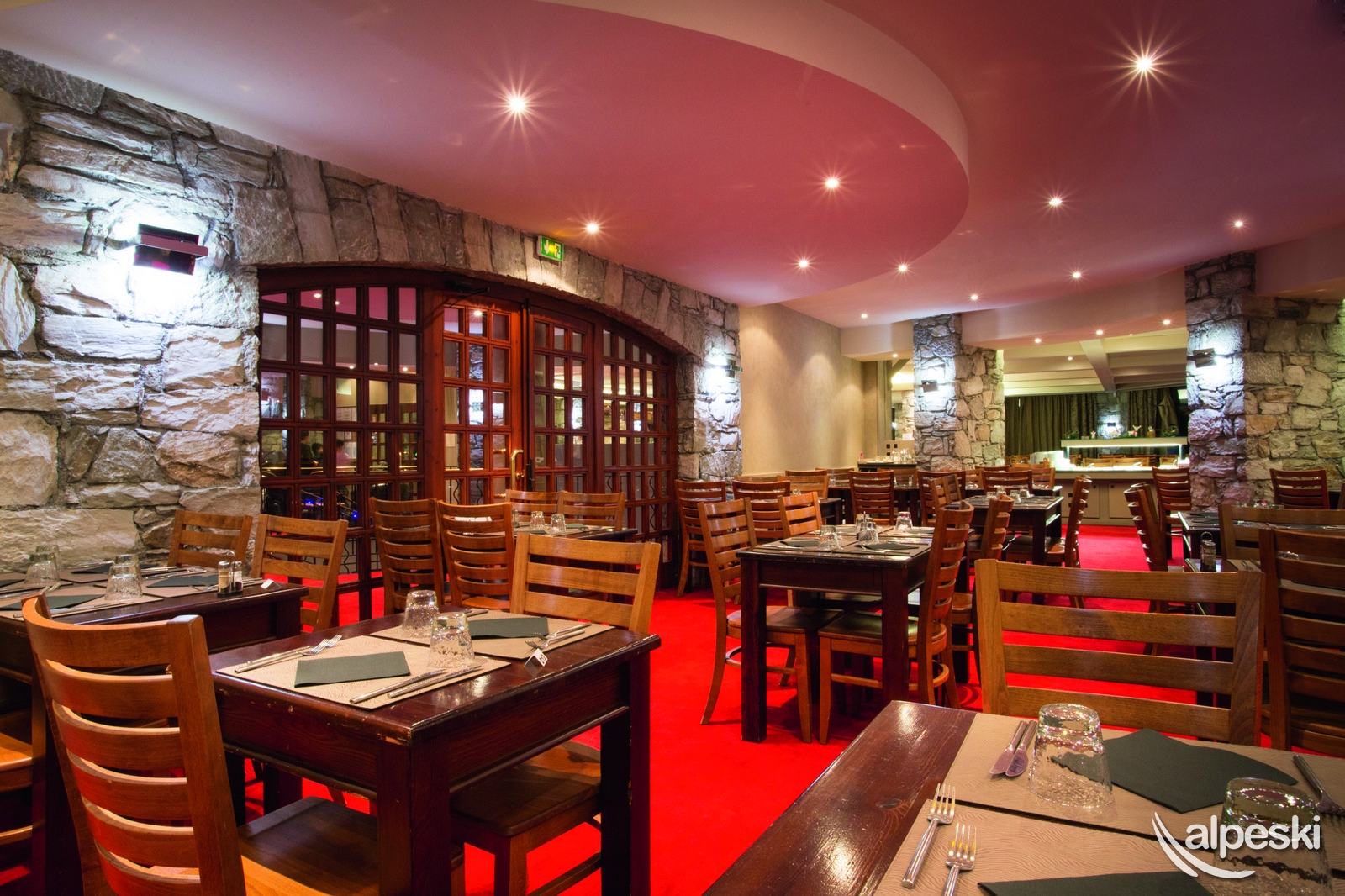 El establecimiento está especializado en familias con niños y ofrece, además de habitaciones cuádruples, varias fórmulas que incluyen incluso una guardería infantil (de 3 a 11 años) atendida por personal cualificado y por la Escuela Francesa de Esquí y servicio de pensión completa.