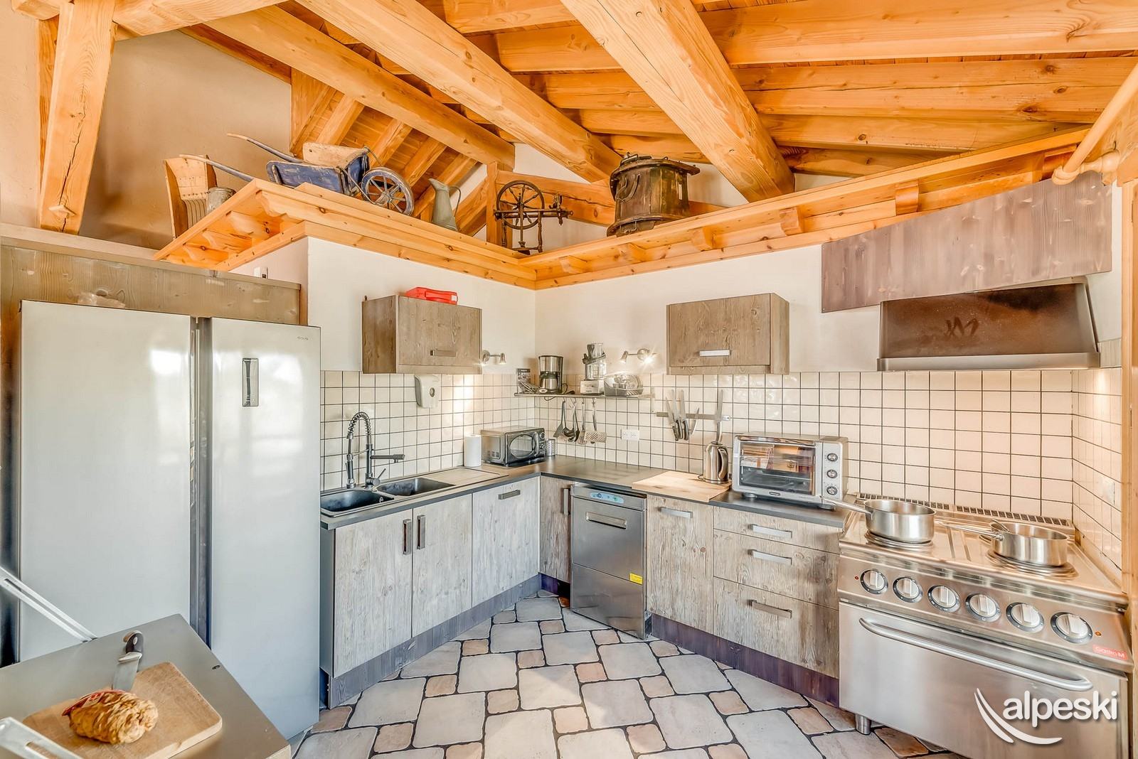 - Cocina abierta (ventana orientada al este con hermosa vista abierta) totalmente equipada con un juego de cocina con placas eléctricas y 1 horno grande, 1 microondas, 1 lavavajillas, 1 frigorífico "americano" grande con 1 parte de frigorífico y 1 congelador, 1 campana y todos los utensilios de cocina.