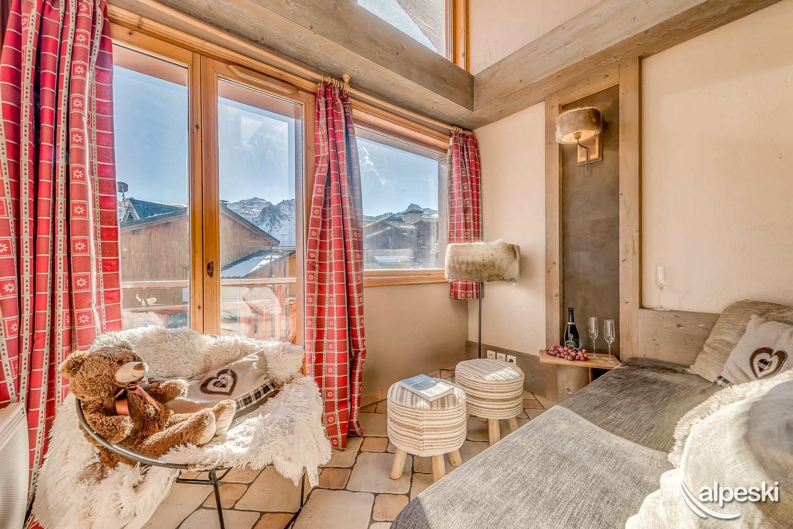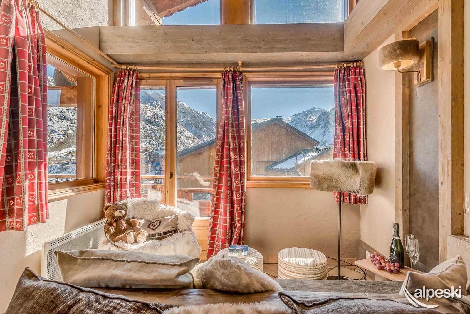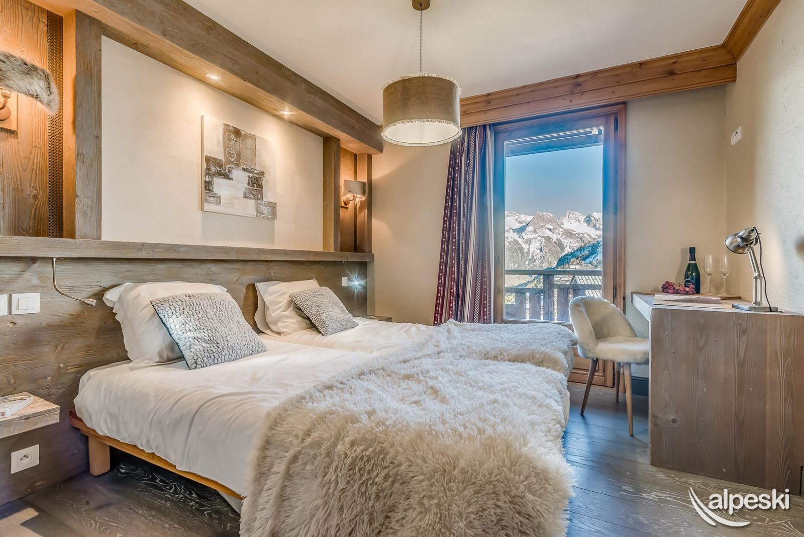 - 2 dormitorios cada uno con 2 camas individuales una al lado de la otra, 1 armario, 1 baño con bañera y lavabo, 1 calentador de toallas, 1 ventana francesa (orientación este) con acceso a la terraza del balcón y una vista impresionante de la Grande Sassière. 1 WC separado