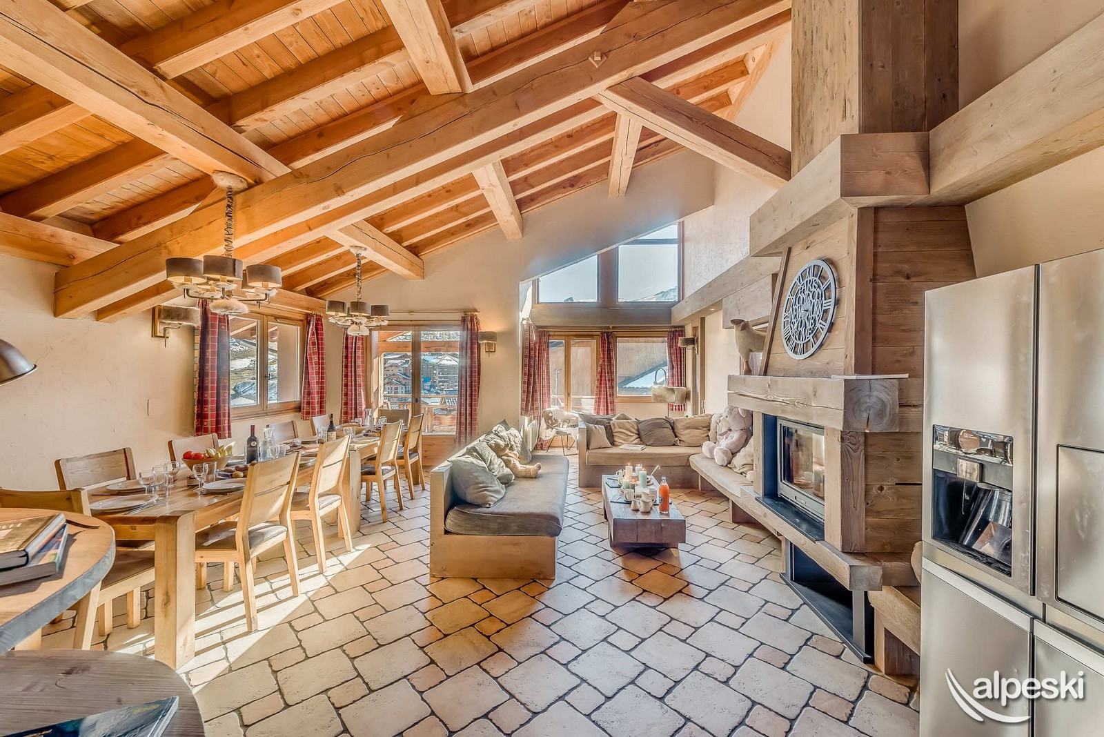 - Sala de estar (ventana, puertas francesas con acceso a la terraza del balcón, orientación sur y sureste) con 1 chimenea - 4 sofás (no convertibles) - 1 televisor de pantalla plana - Reproductor de DVD - 1 refrigerador grande "americano" con 1 refrigerador sección y 1 congelador. Magnífica vista despejada.