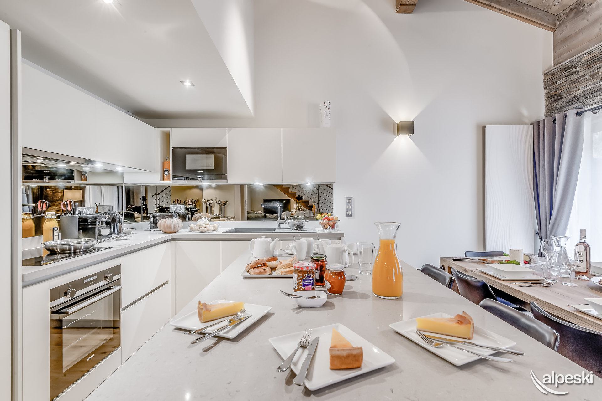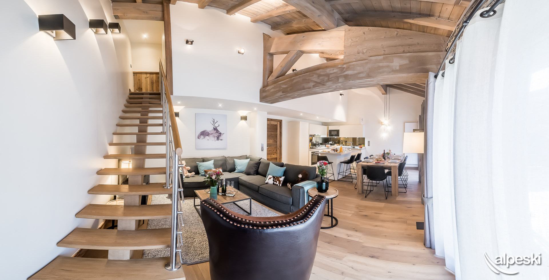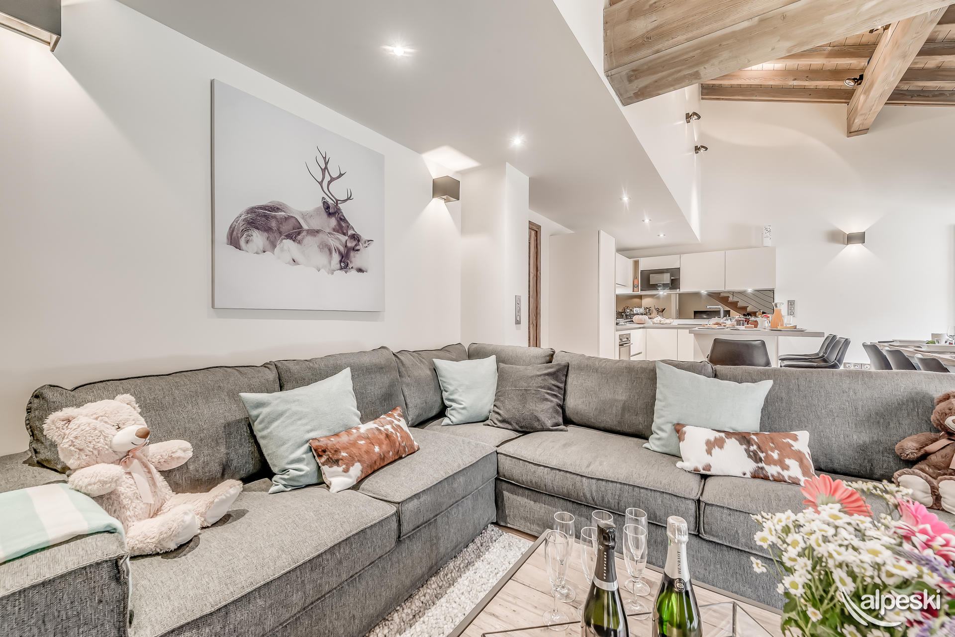 EAGLE LODGE - Apartamento en CHALET CASA 6 habitaciones Dúplex 9personas - 124,35m². El apartamento está situado en Tignes les Brévières, la zona de «Belvédère», a 500 m sobre el pueblo (tiendas, pistas y remontes). Balcones y terrazas SUR y SUROESTE con vistas a las pistas de esquí y DOME DE LA SACHE. El apartamento se distribuye en 2 niveles: Planta baja: - Entrada con armario y lavadora - Dormitorio 1: 2 camas individuales con TV, armario, pequeño escritorio y luces de lectura con cuarto de baño con ducha, secador de toallas, WC, lavabo y secador de pelo. - Dormitorio 2: 2 camas individuales con TV, armario y luces de lectura con baño con bañera, secador de toallas, WC, lavabo y secador de pelo. - Salón comedor con escalera de acceso a la primera planta con : Sofá rinconera, TV, Mesa de centro, sillón y mesa y sillas para 9 personas - Cocina totalmente equipada con : nevera con congelador, horno, 4 placas de inducción, campanas extractoras, microondas, lavavajillas, cafetera Nespresso, tostadora. - Terraza con jacuzzi, tumbona y banco. 1er piso: - Dormitorio 3: 2 camas individuales con TV, armario, luces de lectura, pequeño escritorio y velux. - Dormitorio 4: 1 cama individual con armario, luz de lectura y velux. - Aseo para dormitorios 3 y 4 con: ducha, secador de toallas y lavabo. - Dormitorio 5: 2 camas individuales con TV, armario, luces de lectura y velux con baño con ducha, WC, secador de toallas, fregadero y secador de pelo. - 1 WC separado SERVICIOS incluidos en nuestros precios : - Wifi, ropa de cama y toallas, leña (20 leños), cuna y silla de bebé. - Limpieza final de estancia excepto cocina - JACUZZI - 1 plaza de aparcamiento interior (gratuito) - Guardaesquís privados con secador de botas de esquí. - No se aceptan mascotas/animales - Apartamento para no fumadores