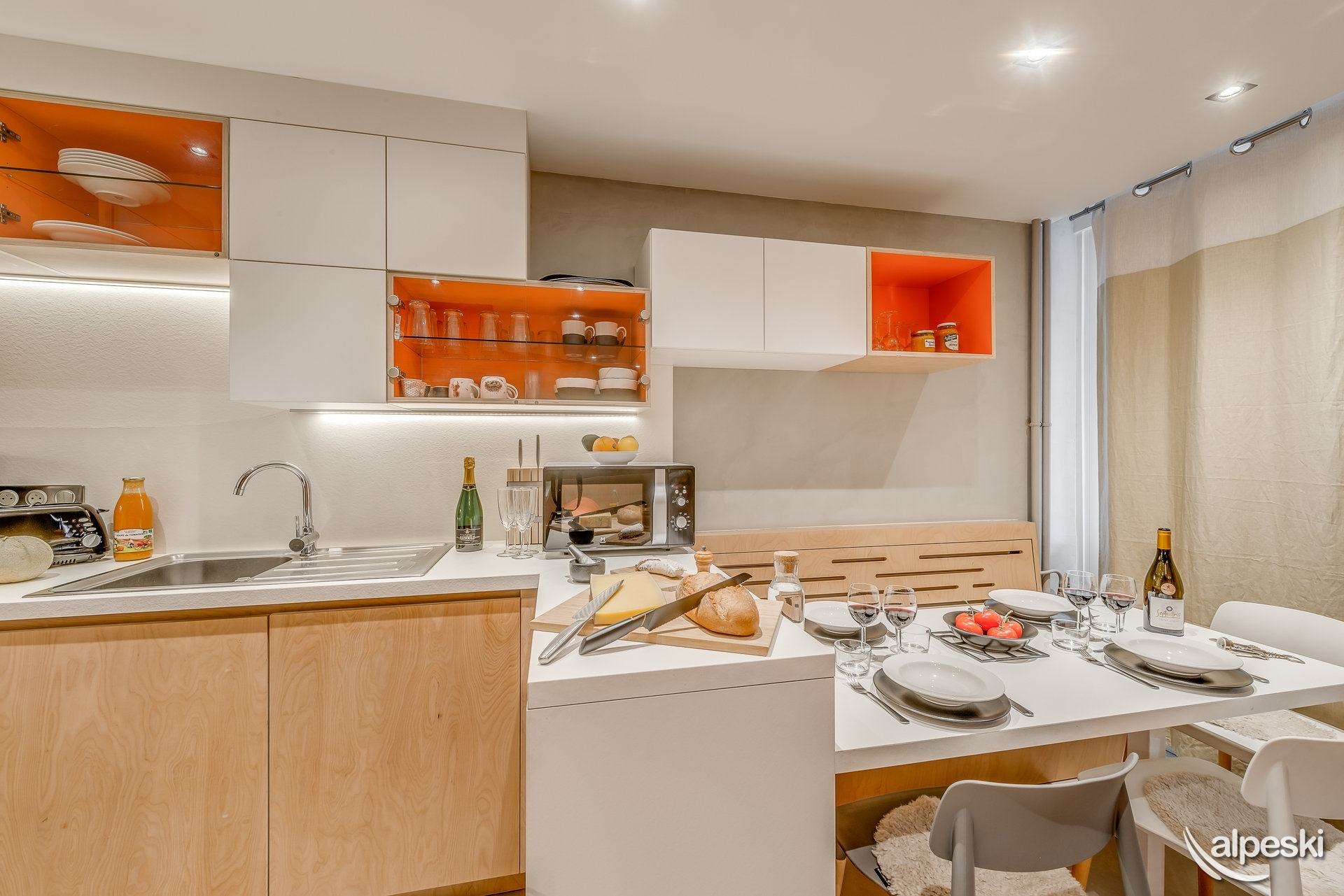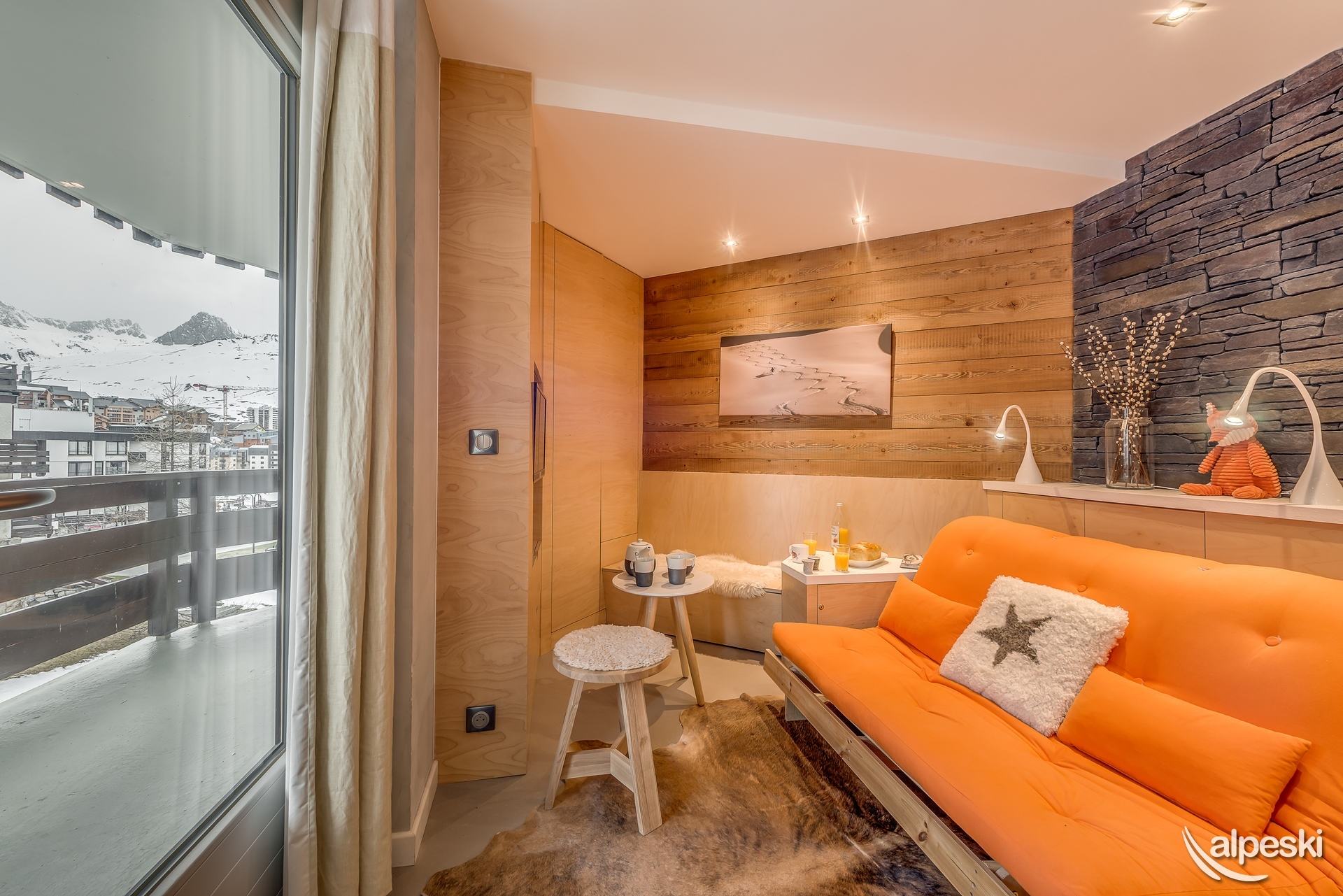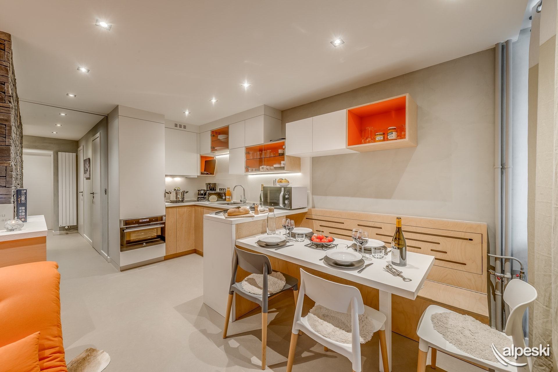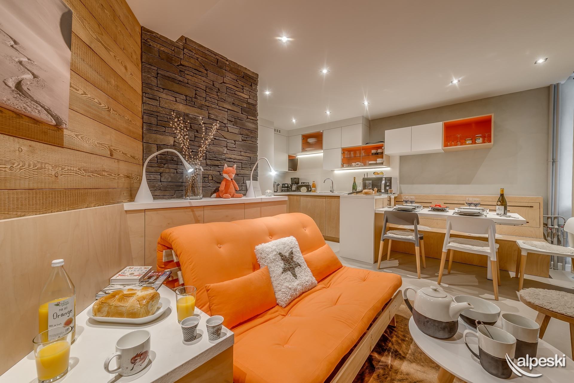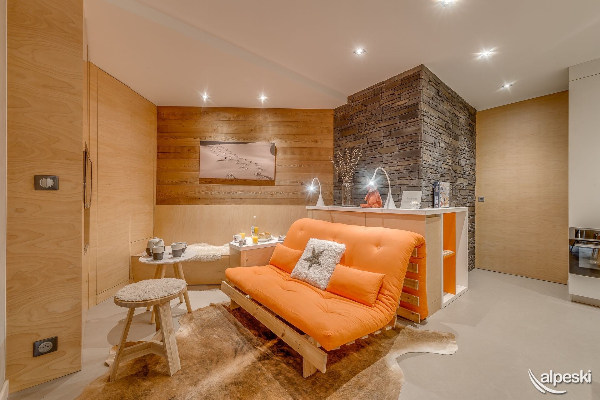 RESIDENCIA 2100B - Cabaña de 2 habitaciones para 4/5 personas - 43 m² totalmente renovada en 2016, es un apartamento cálido y acogedor con 2 dormitorios. Vista noreste, salón-cocina americana y comedor con balcón sur. Distribución: - 1 recibidor con banco, armarios para botas de esquí y ropa - dormitorio con cama doble (140 x 190), ventana francesa orientada al norte con vista al lago de Chevril - dormitorio de la cabaña: con literas (estilo cabaña de madera), armarios y un pequeño escritorio, ventana orientada al norte con vista al lago de Chevril - cuarto de ducha con lavabo, armario y secador de toallas - WC independiente - Salón - sala de estar - cocina y comedor: un sofá cama para 1 persona, armarios, banco y sillas, TV de pantalla plana - Cocina abierta al salón: con 3 placas de vitrocerámica, frigorífico, horno-microondas y lavavajillas. Totalmente equipada con vajilla, hervidor, cafetera tradicional y tostadora. Todas las camas tienen edredones SERVICIOS INCLUIDOS: - Ropa de cama y toallas incluidas - Limpieza final excepto cocina Los siguientes servicios no están incluidos pero se pueden proporcionar con un coste adicional y reservando con antelación: - Wifi (mini box 5GB por día) 39 euros - Aparcamiento público interior obligatorio: reservar directamente con el proveedor de servicios INDIGO - Cuna 20 euros - Silla de bebé 20 euros - No se aceptan mascotas/animales - Apartamento para no fumadores - Depósito de garantía: 1250€