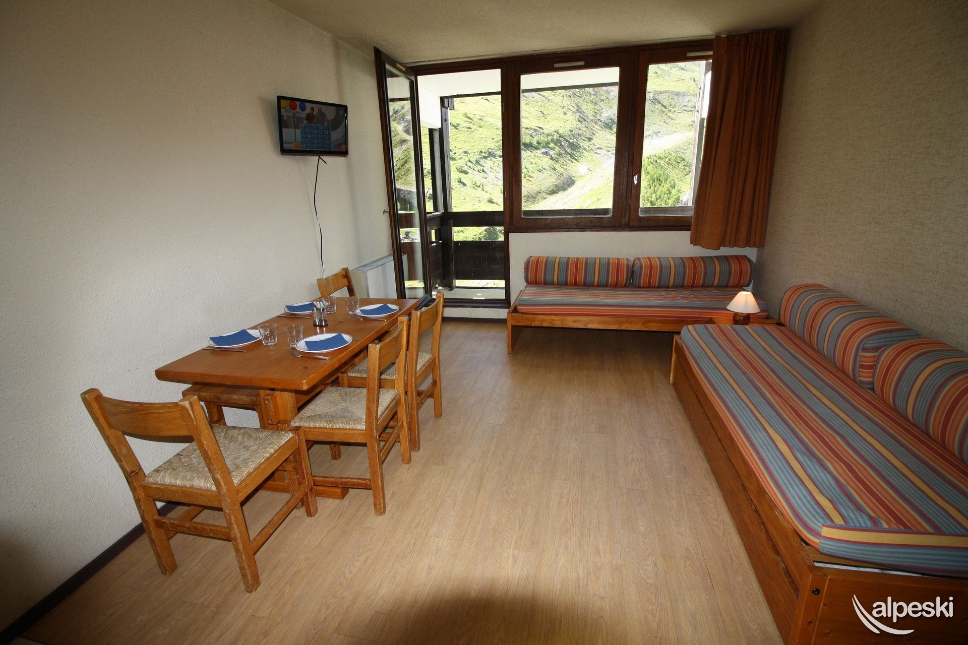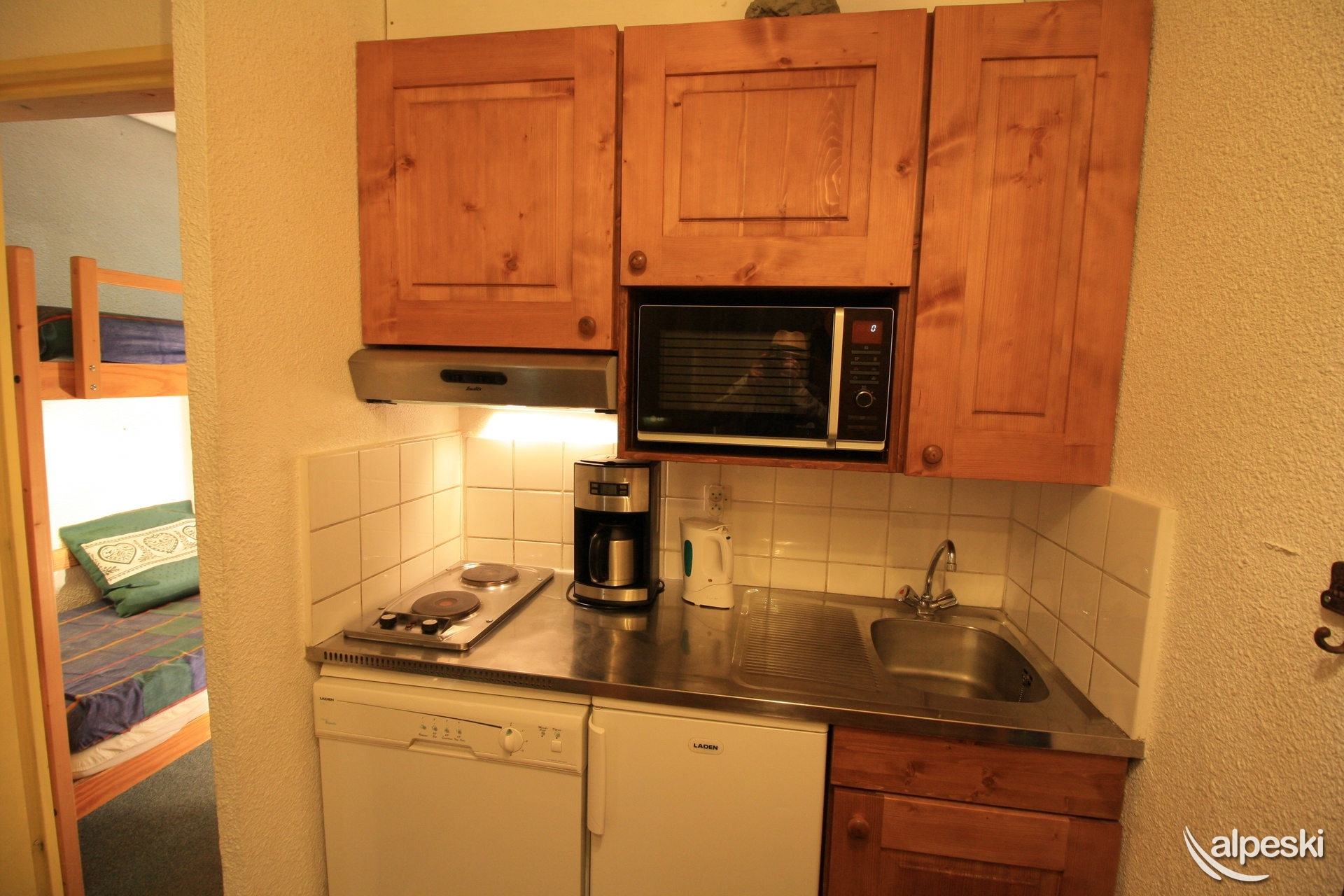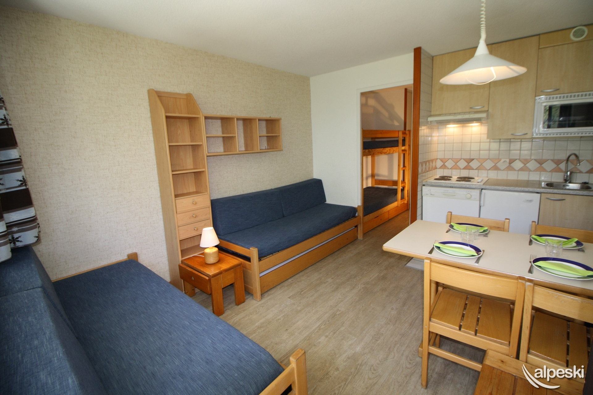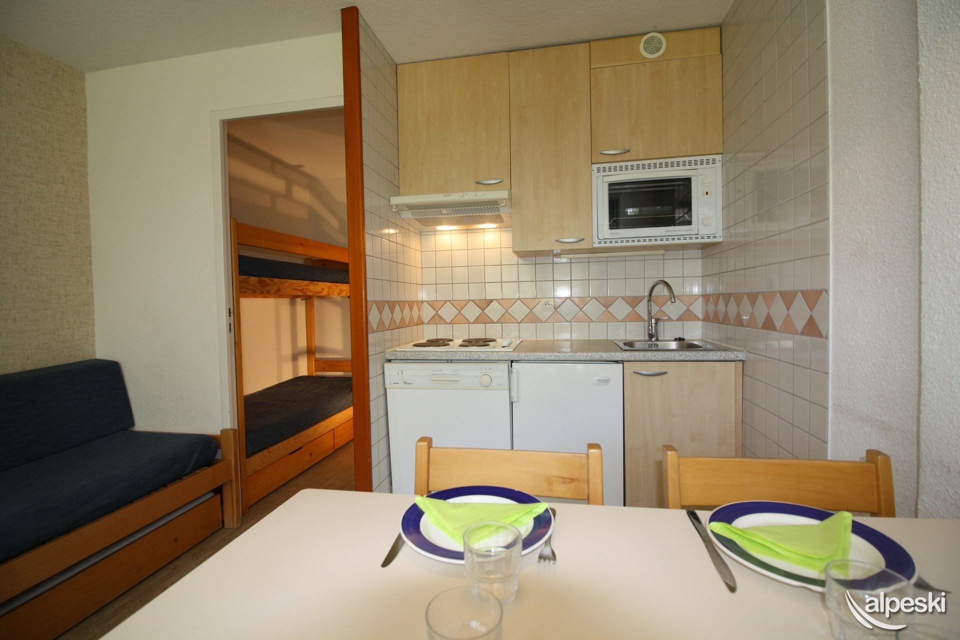 HOME CLUB - Estudio para 4 personas - 24 m². Balcón orientado al sur. Distribución: - 2 literas en el pasillo. - 2 camas individuales en el salón. - 1 televisor. - 1 lector de DVD. - 1 radio. - Cocina americana con: * Placas de cocina. * Nevera. * Horno/microondas. * Lavavajillas. - Baño con bañera y lavabo. - WC independiente. Todas las camas incluyen mantas. Los siguientes servicios no están incluidos, pero se pueden proporcionar con un coste adicional y reservando con antelación: - Wifi (mini box 5 GB por día) 39,00 euros - Aparcamiento público interior obligatorio: reservar directamente con el proveedor de servicios INDIGO - Cuna 20,00 euros - Silla de bebé 20,00 euros - Limpieza final: 55 € - Ropa de cama y toallas cama individual precio por cama y semana ropa de cama y toallas: 30 euros - ropa de cama solamente es: 20 euros - Ropa de cama y toallas cama doble precio por cama y semana ropa de cama y toallas: 45 euros - ropa de cama solamente es: 25 euros - Mascotas: no se aceptan sin previo acuerdo de la agencia, se debe abonar un coste adicional de 50,00 €uros - Apartamento para no fumadores - Depósito de garantía: 400 €