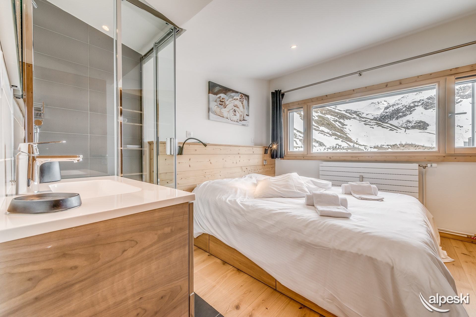 Moutieres B2-54 - 3 habitaciones 7 personas - PREMIUM 55m² - balcón sur - 6ª planta Distribución del apartamento: en el nivel 1: - entrada con armario y banco para quitarse los zapatos - 1 WC separado con lavadora-secadora - 1 baño con bañera, mampara de ducha, mueble de lavabo y toallero calefaccionado - cocina abierta al salón, equipada con: 4 placas vitrocerámicas, campana extractora, horno, frigorífico, lavavajillas, isla/mesa de comedor, todos los utensilios de cocina y vajilla. - salón: con sofá cama que se convierte en cama doble, TV, reproductor de DVD y zona de dormir detrás de una cortina con una cama individual. - Balcón orientado al sur en la 2.ª planta: - Zona de dormitorio con una cama individual bajo techo y una litera (para una persona) con armario - Dormitorio con una cama doble, un televisor, un pequeño escritorio y un armario - Baño con ducha, inodoro, tocador y toallero calefactado. Las camas incluyen edredones. SERVICIOS DEL HOTEL: - Wifi gratuito - Ropa de cama y toallas - Limpieza de final de estancia incluida, excepto la cocina. Los siguientes servicios no están incluidos, pero están disponibles con un coste adicional y deben reservarse con antelación: - Aparcamiento público cubierto obligatorio: Reservar directamente con INDIGO - Cama doble: 20,00 € - Silla doble: 20,00 €. Mascotas: No se admiten. Apartamento para no fumadores. Fianza: 1750 €.