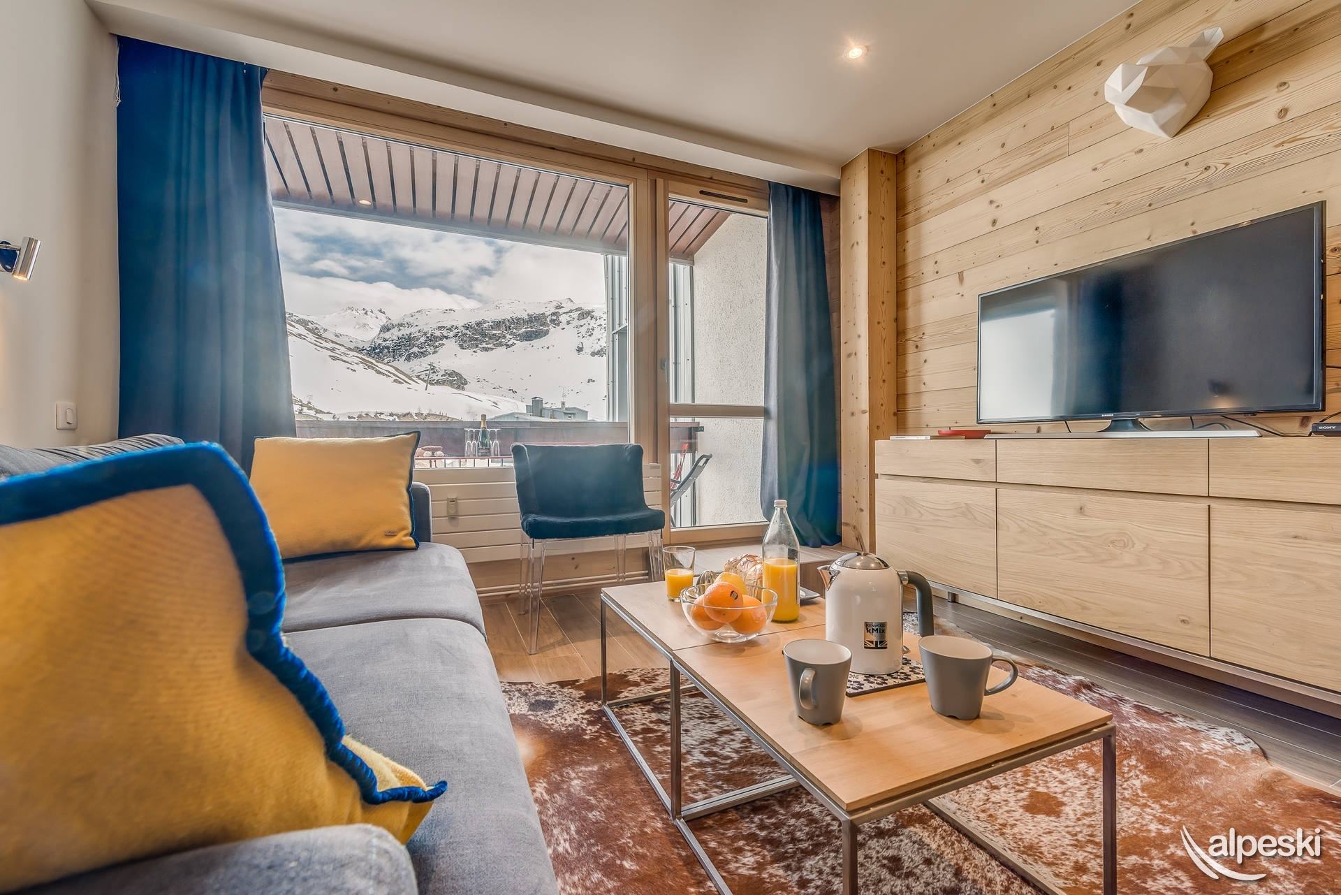 Residencia MOUTIERES en TIGNES VAL CLARET (2100 m), a 250 m del primer telesquí, con todos los comercios y servicios a su alrededor (tiendas de esquí, escuela de esquí francesa ESF, supermercado, panadería, bares y restaurantes). Residencia con ascensor. Guardaesquís privado.