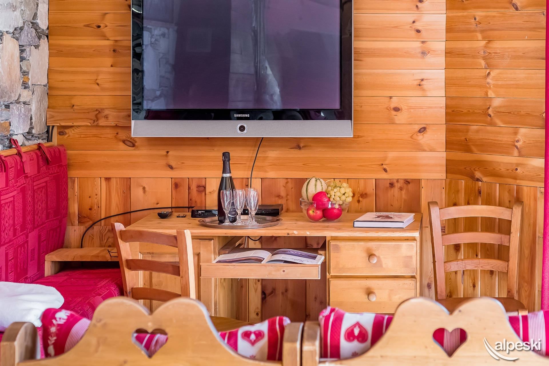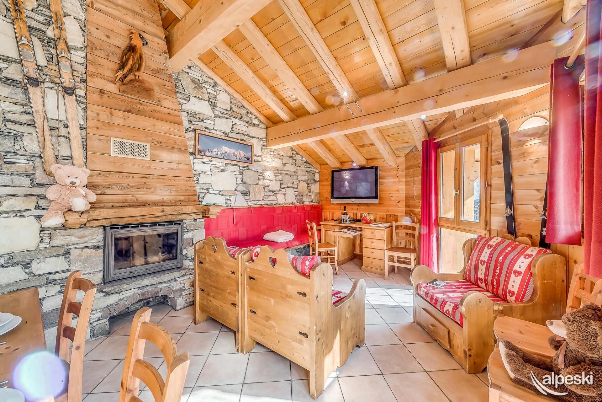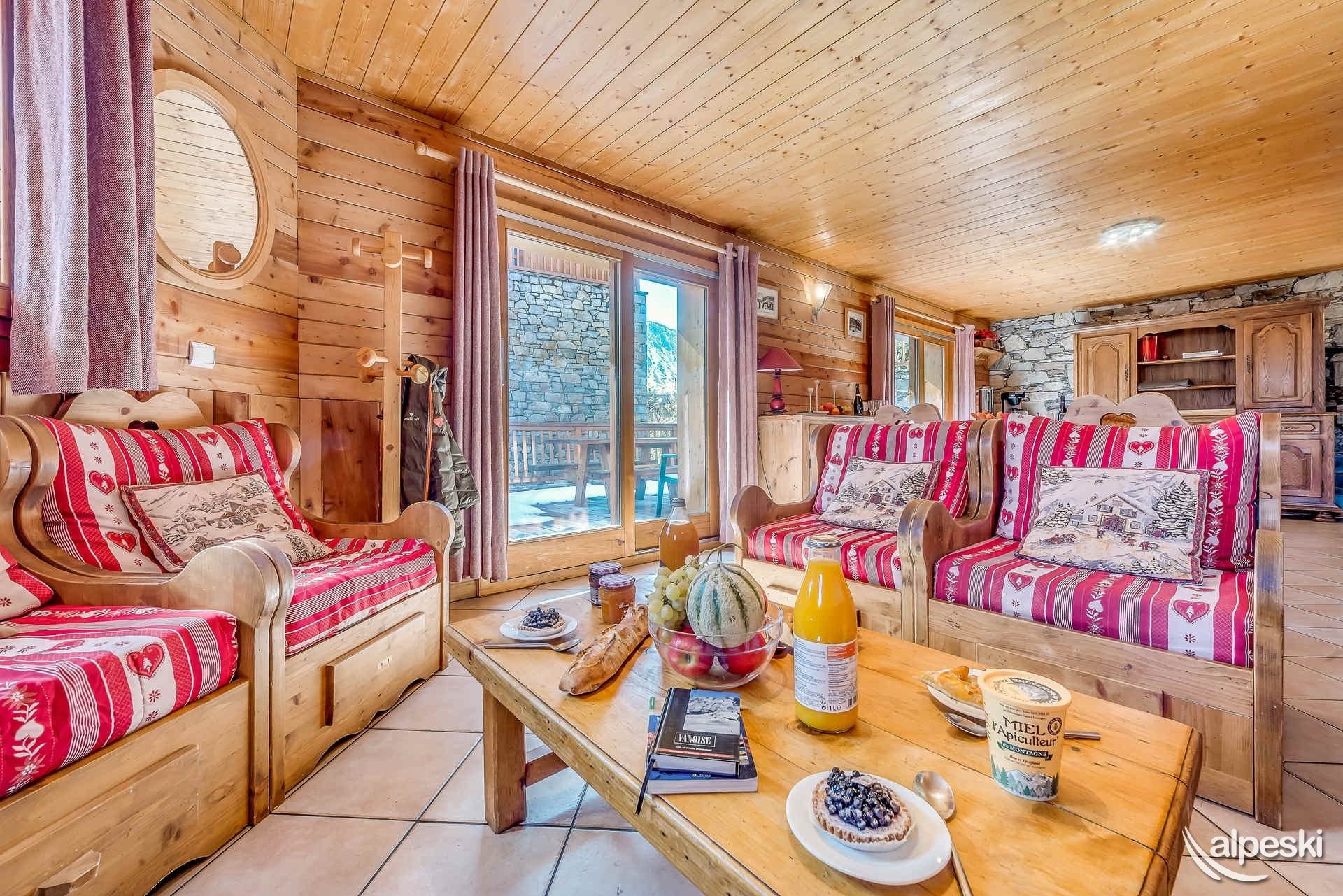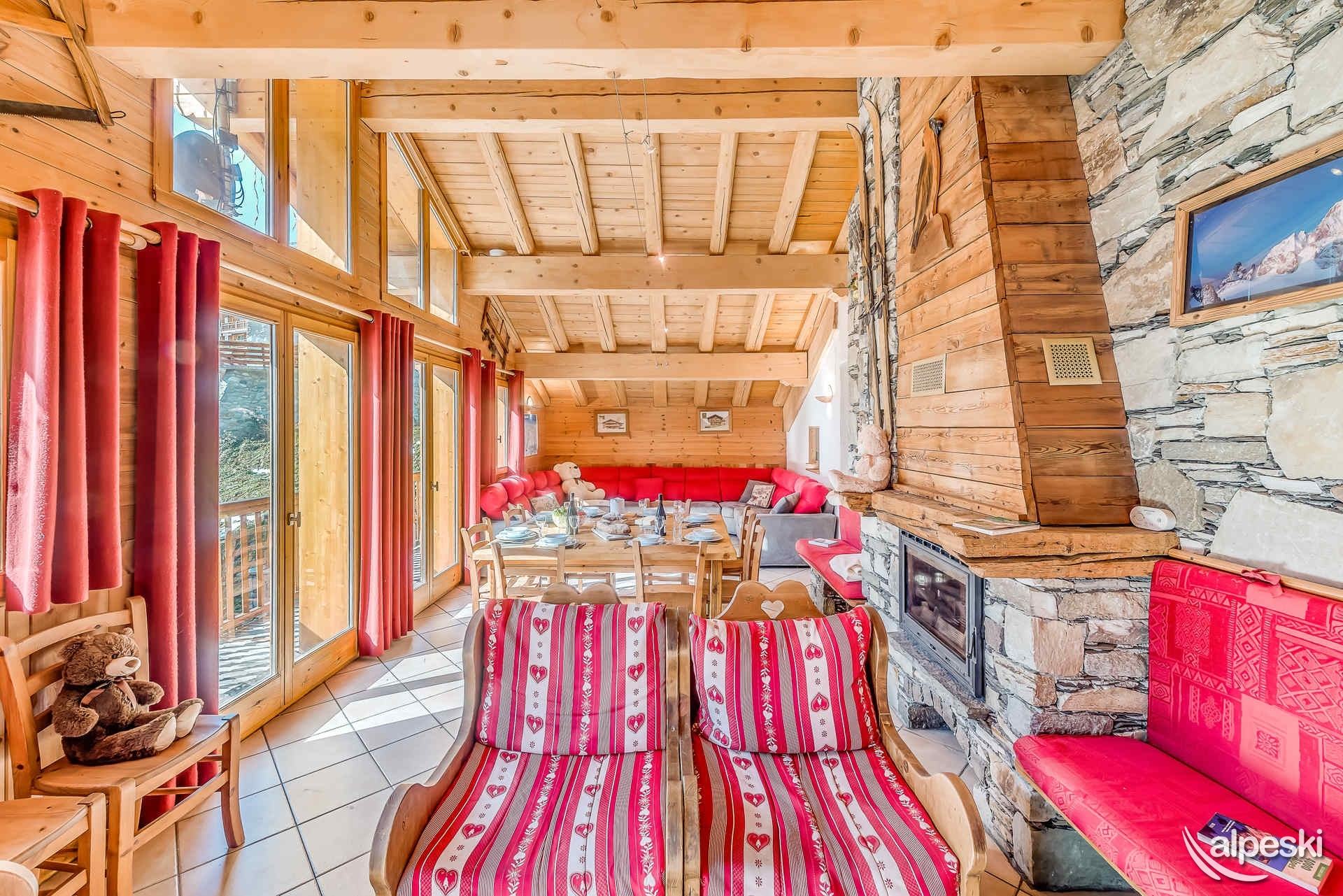 GYPAETE 1 - 7 habitaciones, 14 personas - 180 m². El apartamento GYPAETE 1 se encuentra en la planta baja y el primer piso del chalet. Distribución: - Entrada compartida con el apartamento GYPAETE 2, con guardaesquís y calientabotas. Planta baja: - Dormitorios 1 y 2, ambos con 2 camas individuales, mesitas de noche y un baño con ducha, lavabo, inodoro y secador de toallas. Planta alta: - Dormitorios 3 y 4, ambos con 2 camas individuales, mesitas de noche y un baño con ducha, lavabo, inodoro y secador de toallas. - Dormitorio 5 con 2 camas individuales, 1 litera, mesitas de noche. Baño con bañera, lavabo, inodoro y secador de toallas. - Dormitorio 6 con 2 camas individuales, mesitas de noche, balcón y un baño con ducha, lavabo, inodoro y secador de toallas. - Salón-comedor: 3 mesas para 14 personas, 5 sillones y 1 sofá en la zona de estar con 1 televisor y 1 mesa de centro, 1 estufa de leña y 1 frigorífico con congelador. - Cocina semiprofesional totalmente equipada con: lavavajillas profesional, 5 placas de gas, horno profesional, microondas, frigorífico profesional, 1 cafetera eléctrica grande y 1 cafetera semiprofesional. - Zona de estar exterior con jacuzzi, mesa y sillas. - Aseo independiente. SERVICIOS INCLUIDOS EN NUESTROS PRECIOS: - JACUZZI, wifi, ropa de cama y toallas, camas hechas, leña, cuna y silla. - Limpieza de final de estancia excepto cocina - Guardaesquís con secador de botas de esquí. Los siguientes servicios no están incluidos y se pueden proporcionar con un coste adicional y reserva previa: - Aparcamiento público interior obligatorio: Reservar directamente con el proveedor de servicios INDIGO - No se admiten mascotas - Apartamento para no fumadores - Depósito de garantía: 3500 €