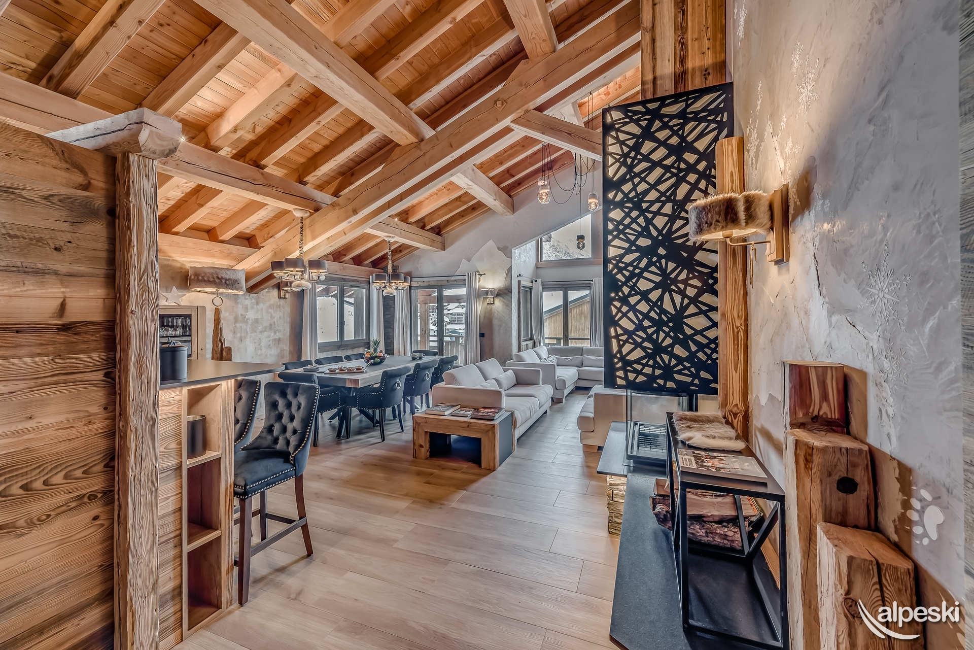 ALOJAMIENTOS ANNAPURNA***** - GANGA - 12 habitaciones - 16 personas - 450 m² / 4 plantas, con ascensor. Desde la planta baja hasta la 4.ª planta, ascienda hasta la luz de los picos del ANNAPURNA. PISO DE NIEVE: - 2 plazas de aparcamiento privadas (2,20 m de altura). Para plazas adicionales: - Aparcamiento público interior obligatorio: Reservar directamente con el proveedor de servicios INDIGO. - Una amplia entrada para darle la bienvenida. - Una sala de esquí a medida, elegantemente equipada con armario, espacio para guardar cascos y material deportivo, guardaesquís, armarios de secado para botas y bancos. - Una zona de relax con: * Sauna a medida de auténtico álamo temblón - Jacuzzi de 7 plazas - Ducha italiana - WC * Sala de juegos con mesa de billar "TOULET" transformable en mesa de póker, dardos y bar para relajarse. * Sala de vídeo para niños. NIVEL 1: * SUITE FOURRURE: dos camas individuales convertibles en cama de matrimonio, armario, escritorio, baño con bañera, mueble de lavabo, toallero calefactado, una puerta ventana o una ventana (orientación sur) con acceso a la terraza-balcón. Televisión de 43 pulgadas con una amplia gama de canales e internet wifi, un aseo independiente. * SUITE PIERRE: dos camas individuales convertibles en cama de matrimonio, armario, escritorio, baño con bañera, mueble de lavabo, toallero calefactado, una puerta ventana o una ventana (orientación sur) con acceso a la terraza-balcón. Televisión de 43 pulgadas con una amplia gama de canales e internet wifi, un aseo independiente. * SUITE LEATHER: dos camas individuales convertibles en cama de matrimonio, armario, escritorio, baño con bañera, mueble de lavabo, toallero calefactado, una puerta ventana o una ventana (orientación sur) con acceso a la terraza-balcón. Televisión de 43 pulgadas con una amplia gama de canales e internet wifi, un aseo independiente. * SUITE PRINCIPAL Forêt: cama doble, armario, escritorio, 1 sofá cama individual, baño con bañera, mueble de tocador, toallero eléctrico, televisor de 43 pulgadas con una amplia gama de canales e internet wifi, 1 aseo independiente. 1 ventana orientada al sur. NIVEL 2: SUITE CORDE: dos camas individuales convertibles en cama doble, armario, escritorio, baño con bañera, mueble de tocador, toallero eléctrico, 1 ventana francesa o 1 ventana (orientada al sur) con acceso a la terraza-balcón. Televisión de 43 pulgadas con una amplia gama de canales e internet wifi, 1 aseo independiente. SUITE CASCADE: dos camas individuales convertibles en cama doble, armario, escritorio, baño con bañera, mueble de tocador, toallero eléctrico, 1 ventana francesa o 1 ventana (orientada al sur) con acceso a la terraza-balcón. Televisión de 43 pulgadas con una amplia gama de canales e internet wifi, 1 aseo independiente. SUITE SNOW: Dos camas individuales convertibles en cama doble, armario, escritorio, baño con bañera, mueble de baño, toallero eléctrico, una ventana francesa o una ventana (orientada al sur) con acceso a la terraza-balcón. Televisión de 43 pulgadas con una amplia gama de canales e internet wifi, un aseo independiente. SUITE PRINCIPAL GOLD: Cama doble, armario, escritorio, un sofá cama individual, baño con bañera, mueble de baño, toallero eléctrico, televisión de 43 pulgadas con una amplia gama de canales e internet wifi, un aseo independiente. Una ventana orientada al sur. PLANTA 3: Bajo una magnífica azotea con hermosas vistas - Salón-comedor y cocina abierta: - Salón con una gran chimenea ultramoderna de doble cara - Conjunto de sofás - Televisor Philips de 77 pulgadas con antena parabólica - Sistema de sonido Devialet. - Elegante cocina abierta al salón, totalmente equipada con placa de inducción y 3 hornos, 1 microondas, 1 lavavajillas, 1 gran frigorífico americano con una parte de nevera y otra de congelador, 1 extractor de humos, 1 bodega y espacio de almacenamiento. - 1 bar de aperitivos con vinoteca. - Magnífico comedor con una magnífica lámpara de araña ornamental y una mesa para 16 comensales. - Vitrina (ventana, puertas francesas con acceso a los 2 balcones, orientación sur y oeste). - Aseo independiente. SERVICIOS DEL HOTEL ANNAPURNA LODGE ***** - INCLUIDOS EN NUESTROS PRECIOS: - Wifi. - 1 silla y 1 cuna. - Ropa de cama, toallas, zapatillas y albornoces. Camas hechas a la llegada. - Limpieza al final de la estancia, excepto la cocina. - TEMPORADA DE INVIERNO: limpieza durante la estancia los miércoles, cambio de sábanas y toallas, camas hechas. - TEMPORADA DE VERANO: el servicio de limpieza durante la estancia y el cambio de sábanas están disponibles bajo petición y con suplemento. - Animales: no se admiten animales - Piso no fumador - Depósito de garantía: 5000€