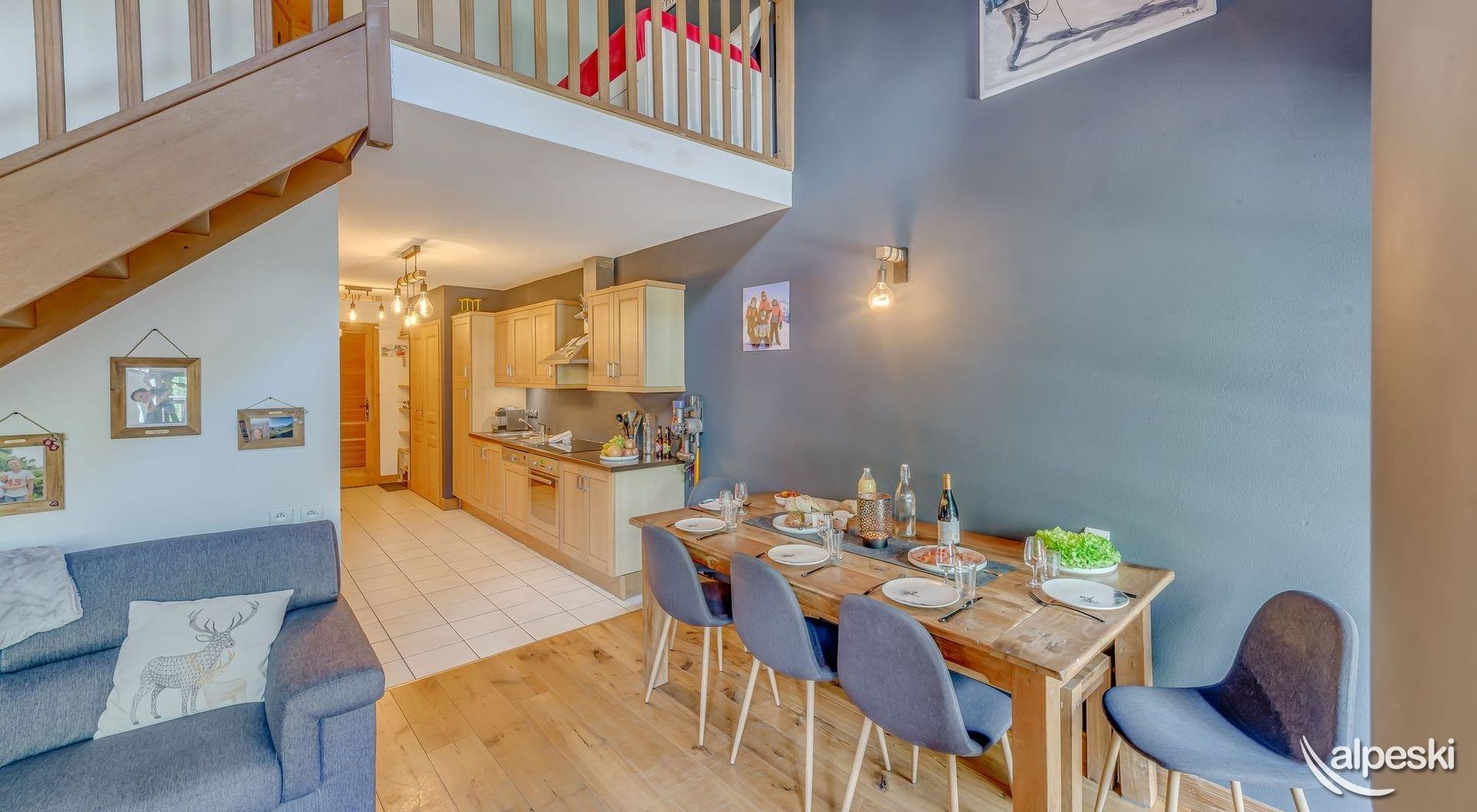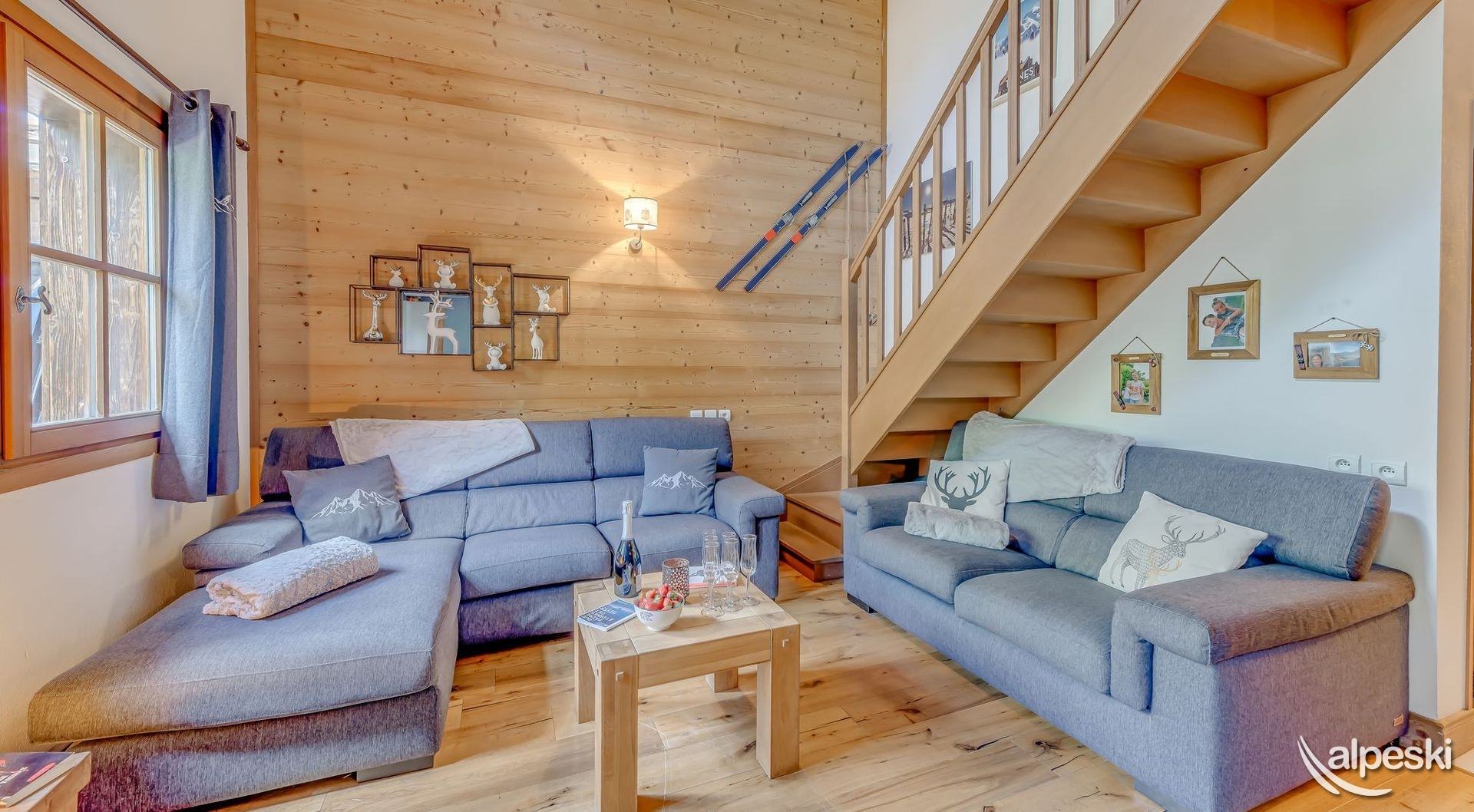 BLUE WOOD "Le Chalet WAUTHAY" - 75 m² - Apartamento tipo chalet. Apartamento dúplex de 4 habitaciones para 8 personas - 3 estrellas. El chalet se encuentra en la cima de Les Brévières, en la zona de BELVEDERE, con orientación sur y suroeste, y cuenta con balcones y terrazas con vistas a las pistas y al macizo del DOME de la SACHE. El chalet cuenta con 2 plantas de alojamiento. Nivel 1: - entrada con perchero y estantes de almacenamiento - Dormitorio 1: suite familiar con 1 cama doble y 2 literas (capacidad para 2 personas) - 1 baño con ducha, 1 lavabo, 1 WC - Sala de estar / salón / cocina / comedor - Gran terraza soleada con muebles de jardín, almacenamiento de leña, hermosas vistas a las pistas y montañas -La sala de estar consta de: Cocina abierta al salón / comedor, totalmente equipada: 1 nevera, 1 lavavajillas, 1 horno, 1 microondas, vitrocerámica, 1 hervidor, 1 cafetera Nespresso, 1 tostadora, toda la vajilla y utensilios de cocina. Comedor con mesa y sillas para 8 personas. Sala de estar con sofás y sillones, mesas de centro y estufa de leña. Planta 2: - Entrepiso con sofá y TV. - Dormitorio 2: 1 cama doble (160x200). - Dormitorio 3: 1 cama doble (160x200). - Baño con bañera/ducha, lavabo, WC, lavadora/secadora. SERVICIOS (incluidos en nuestros precios): - Wifi, ropa de cama y toallas, leña (20 leños), cuna y trona. - Limpieza final (excepto cocina). - 1 plaza de aparcamiento cubierta (gratuita). Para plazas de aparcamiento adicionales: aparcamiento público frente a Les Brévières: reservar directamente en la web de INDIGO. - Guardaesquís privado, secadero de botas de esquí. - Mascotas: no se admiten. - Apartamento para no fumadores. - Fianza: 2.000 €.